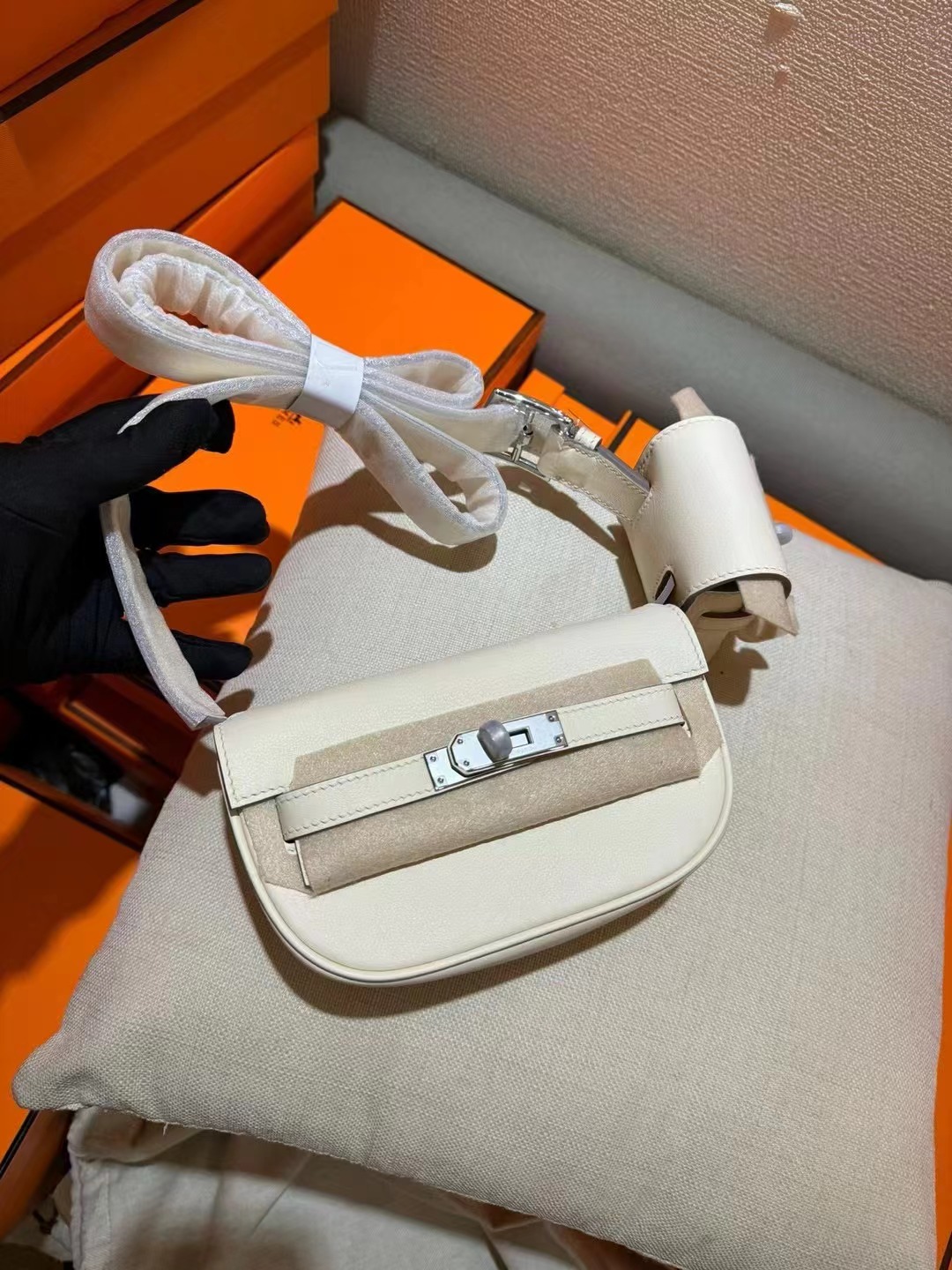 Kelly moove 餃子包🥟 17cm 原廠進口Swift皮【奶昔白】銀扣