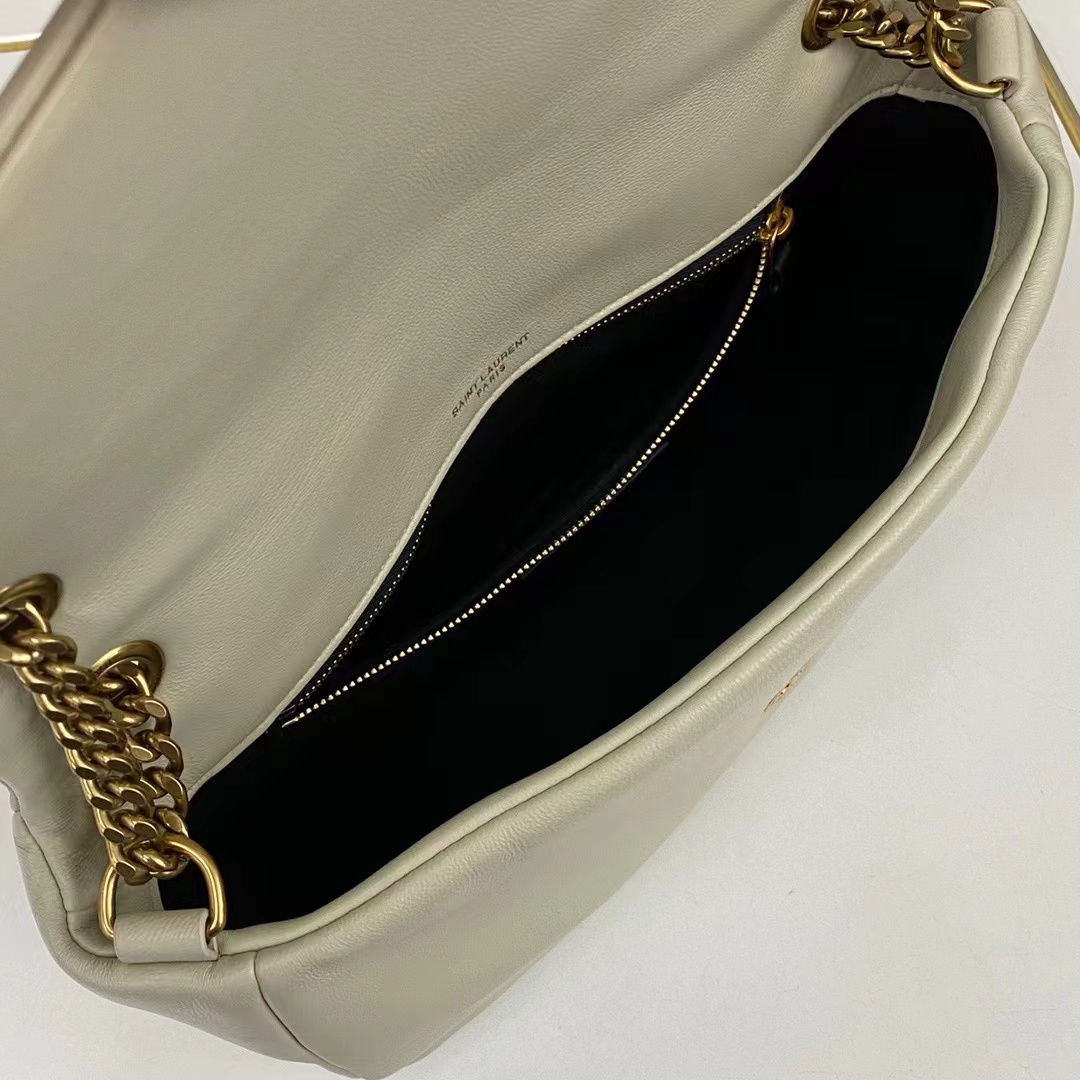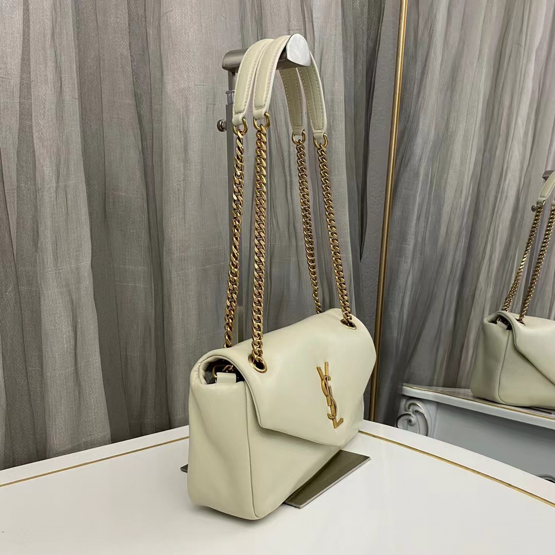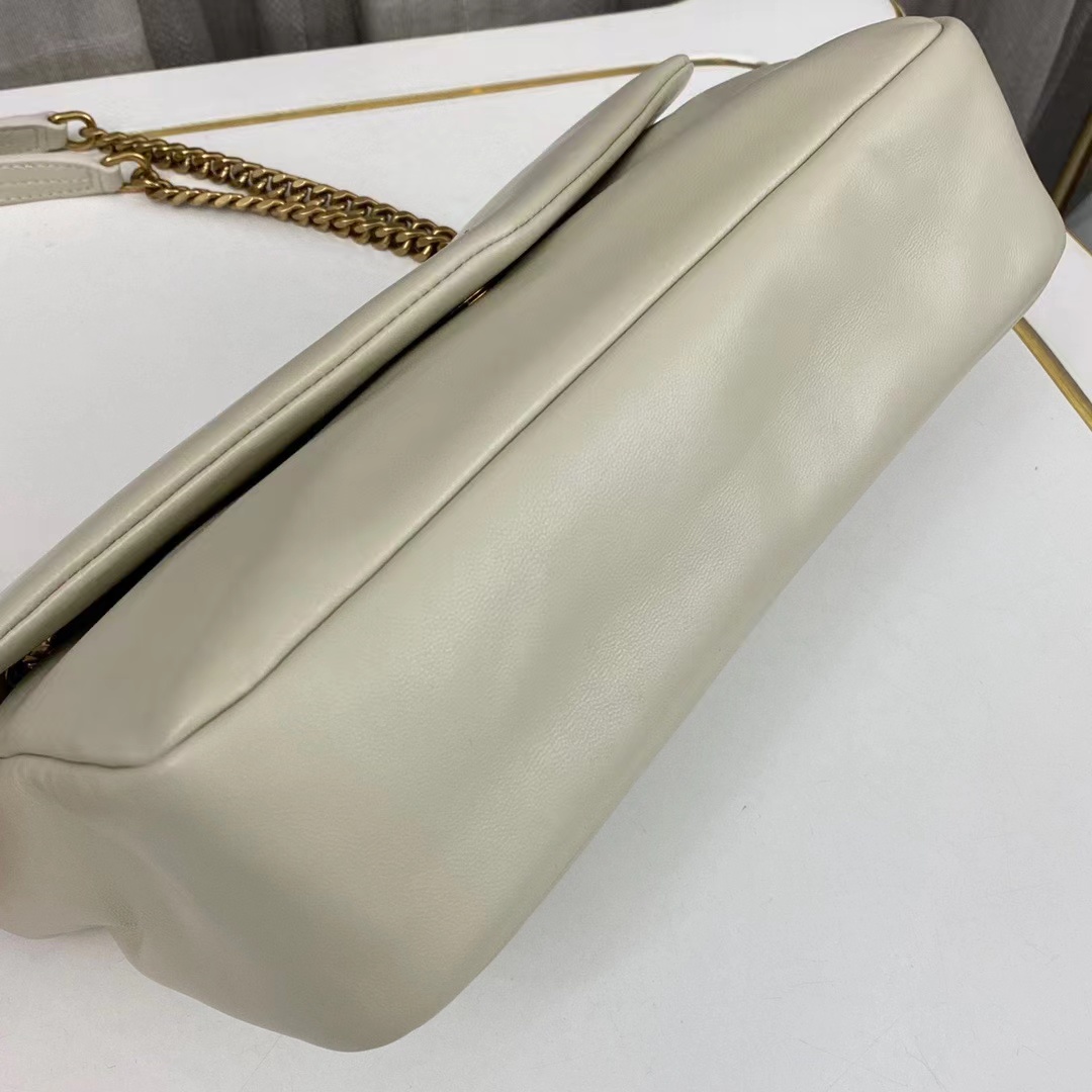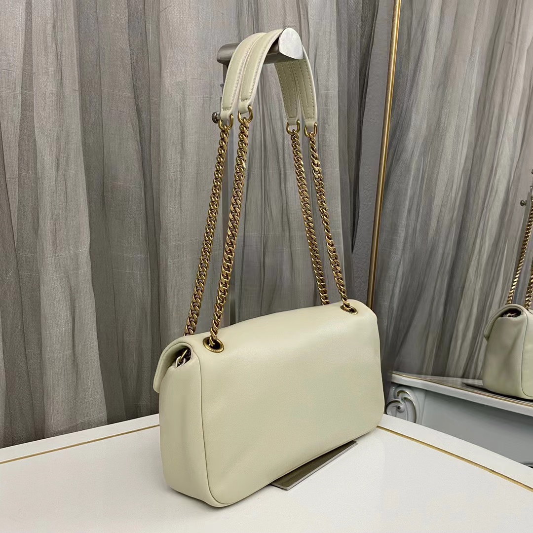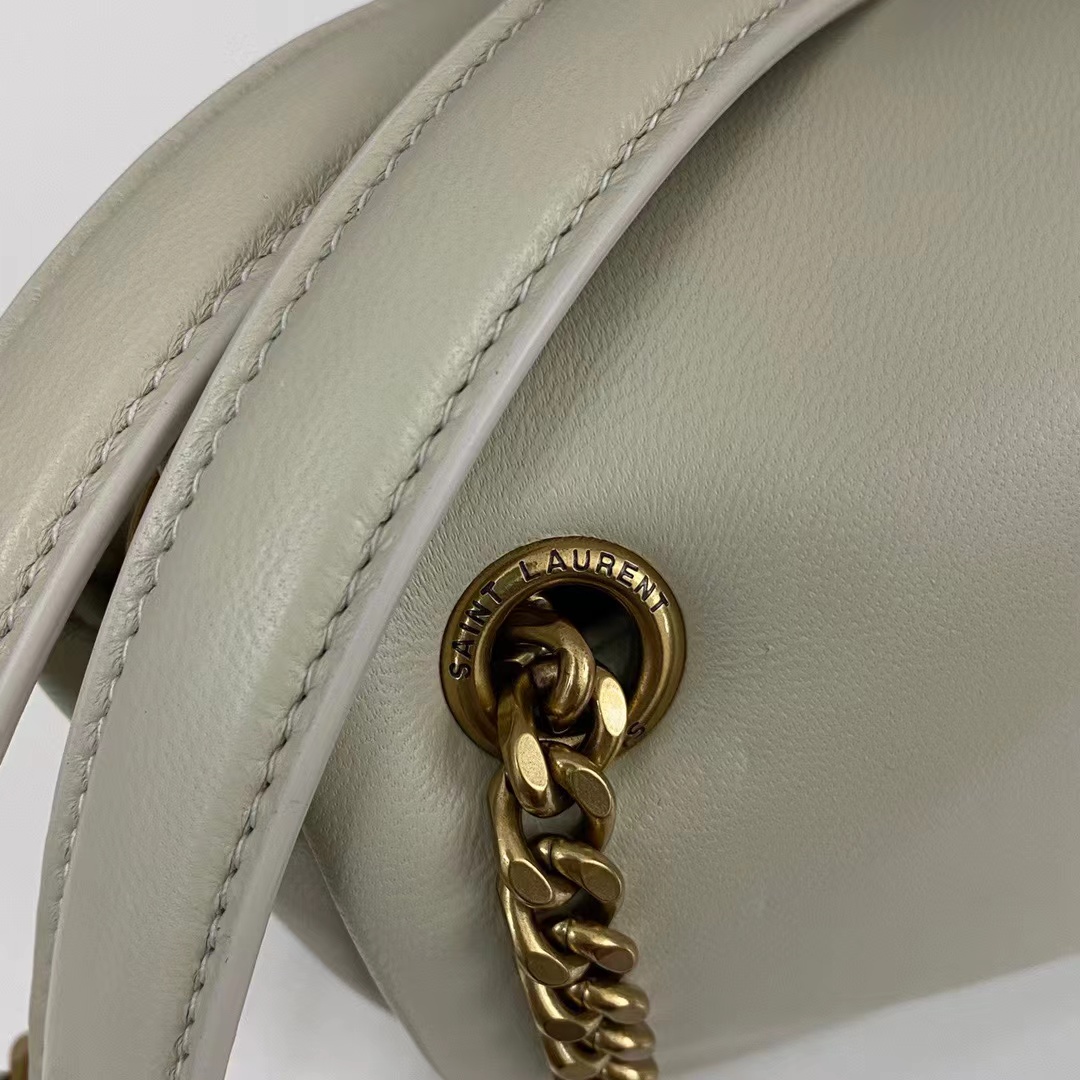 複古白羊皮手袋飾以經典YSL標志,搭配皮革和鏈條斜挎背帶,亦可以雙鏈肩背!