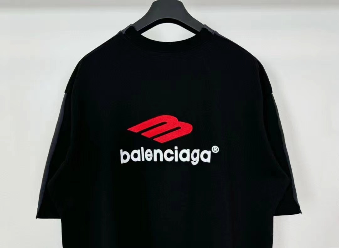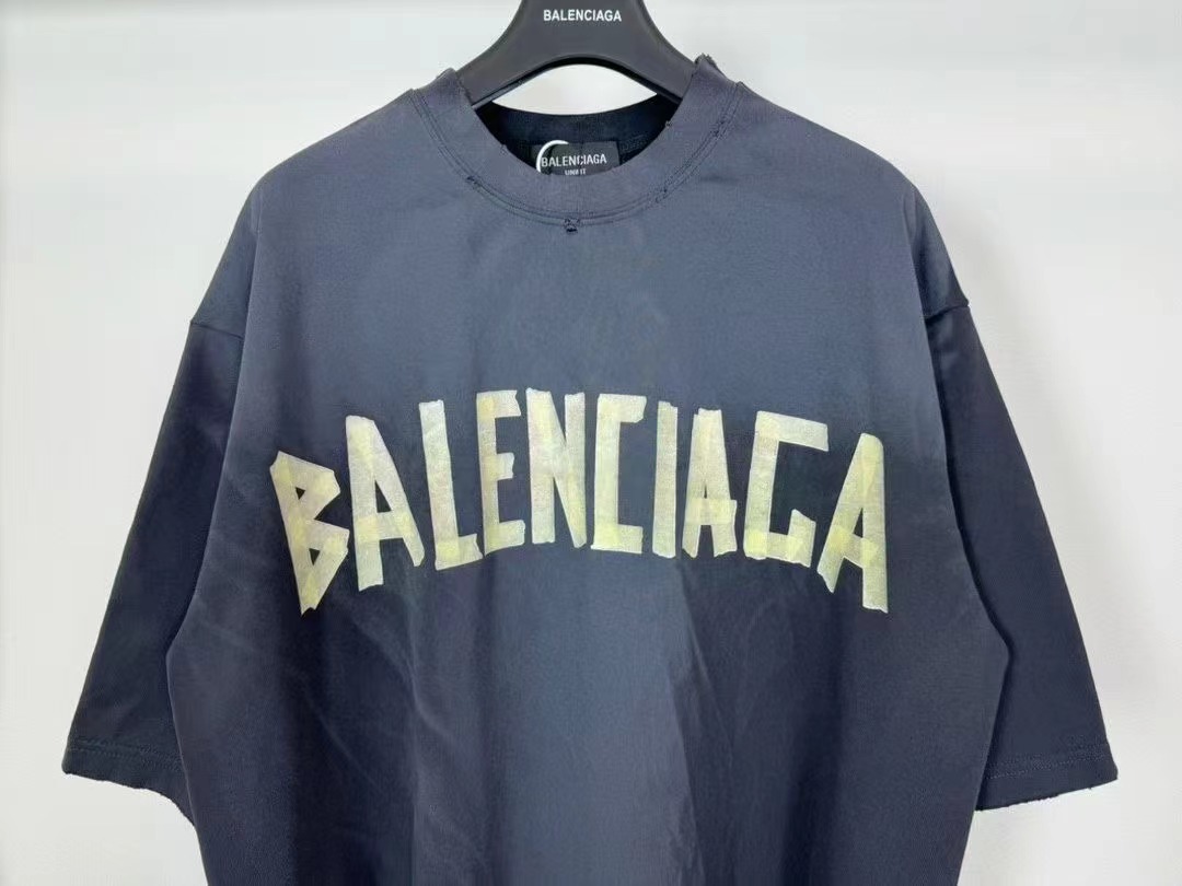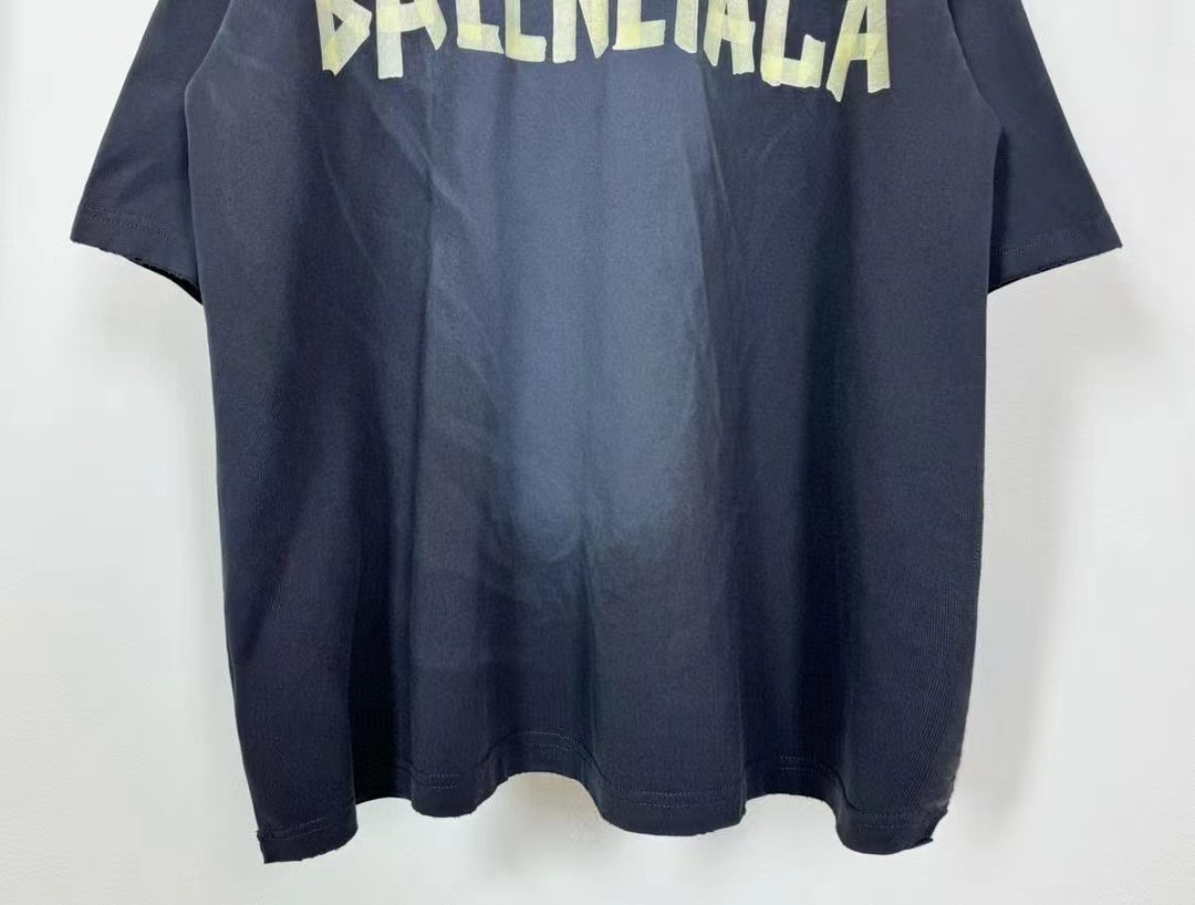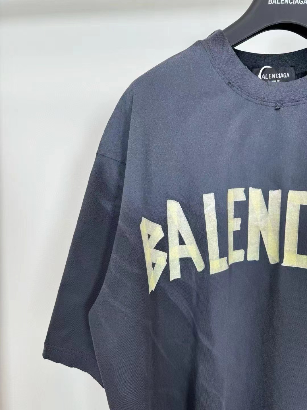 -BALENCI*GA 巴黎新款黃膠帶拼接3M刺繡logo重磅款漸變短袖T恤