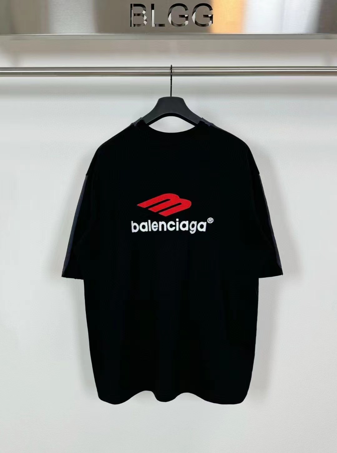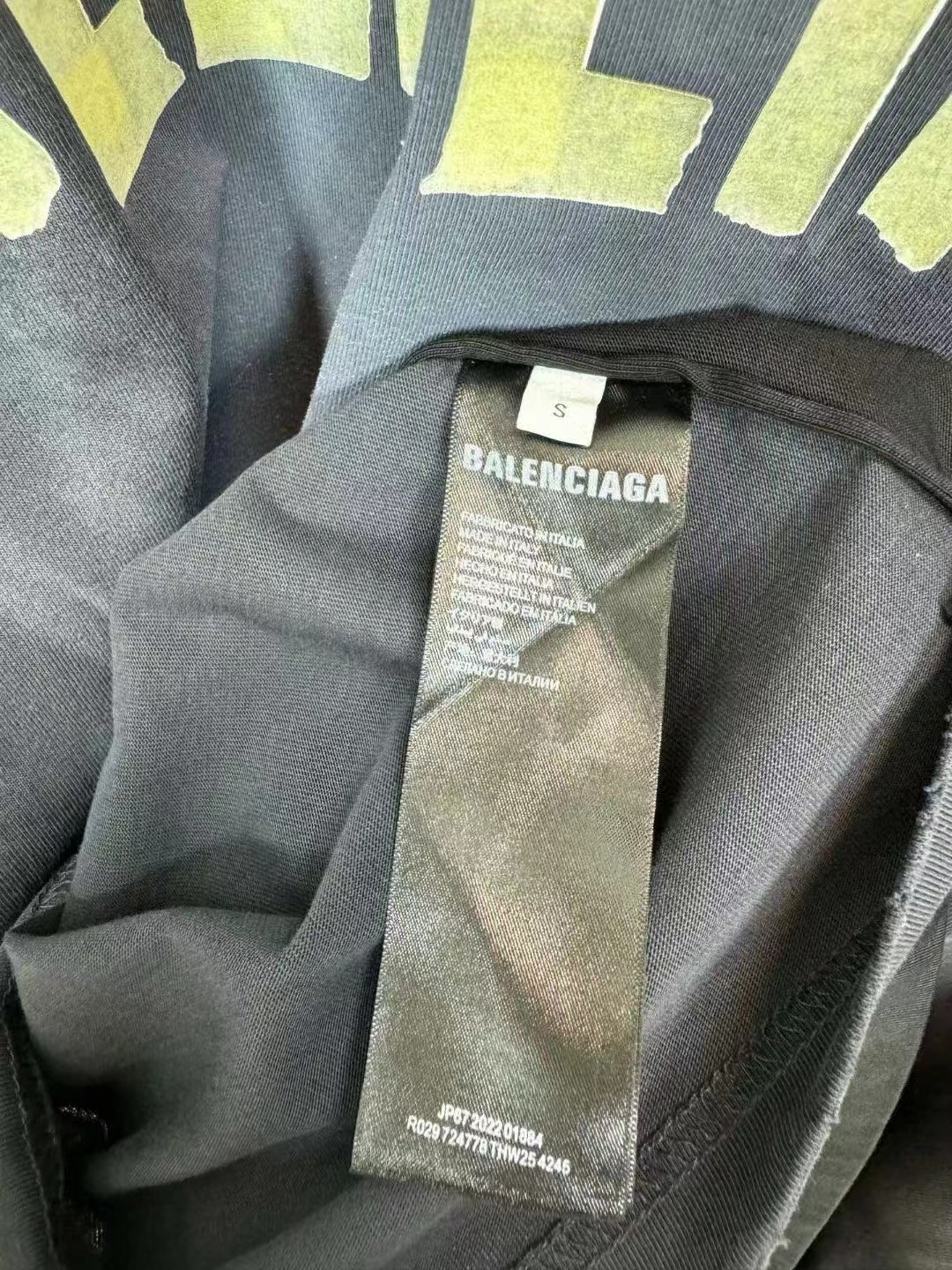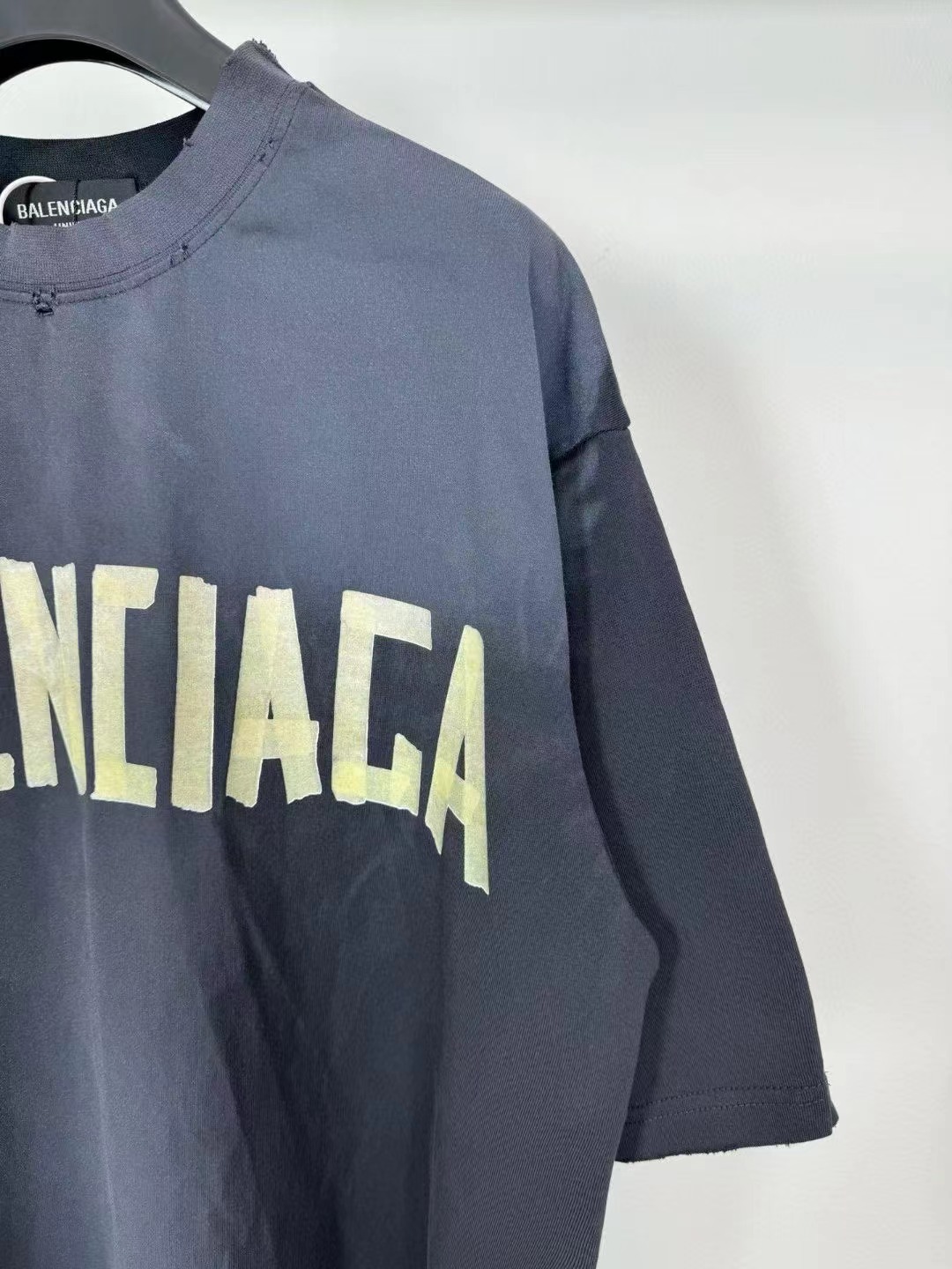 -BALENCI*GA 巴黎新款黃膠帶拼接3M刺繡logo重磅款漸變短袖T恤