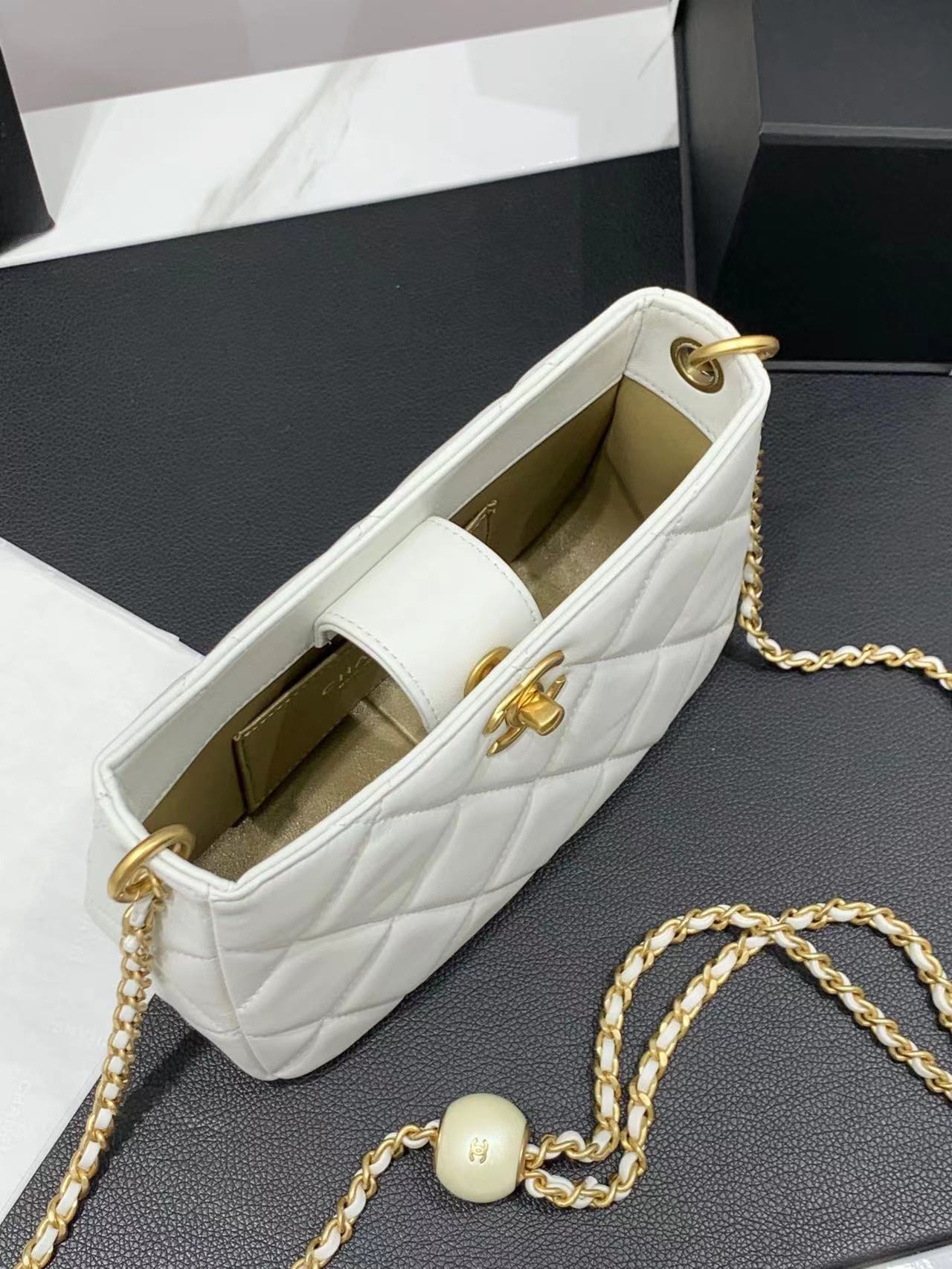 珍珠調節扣桶包~炒雞炒雞精美 鏈條點綴了大珍珠喲~與金色相互映襯更顯精美貴氣啦