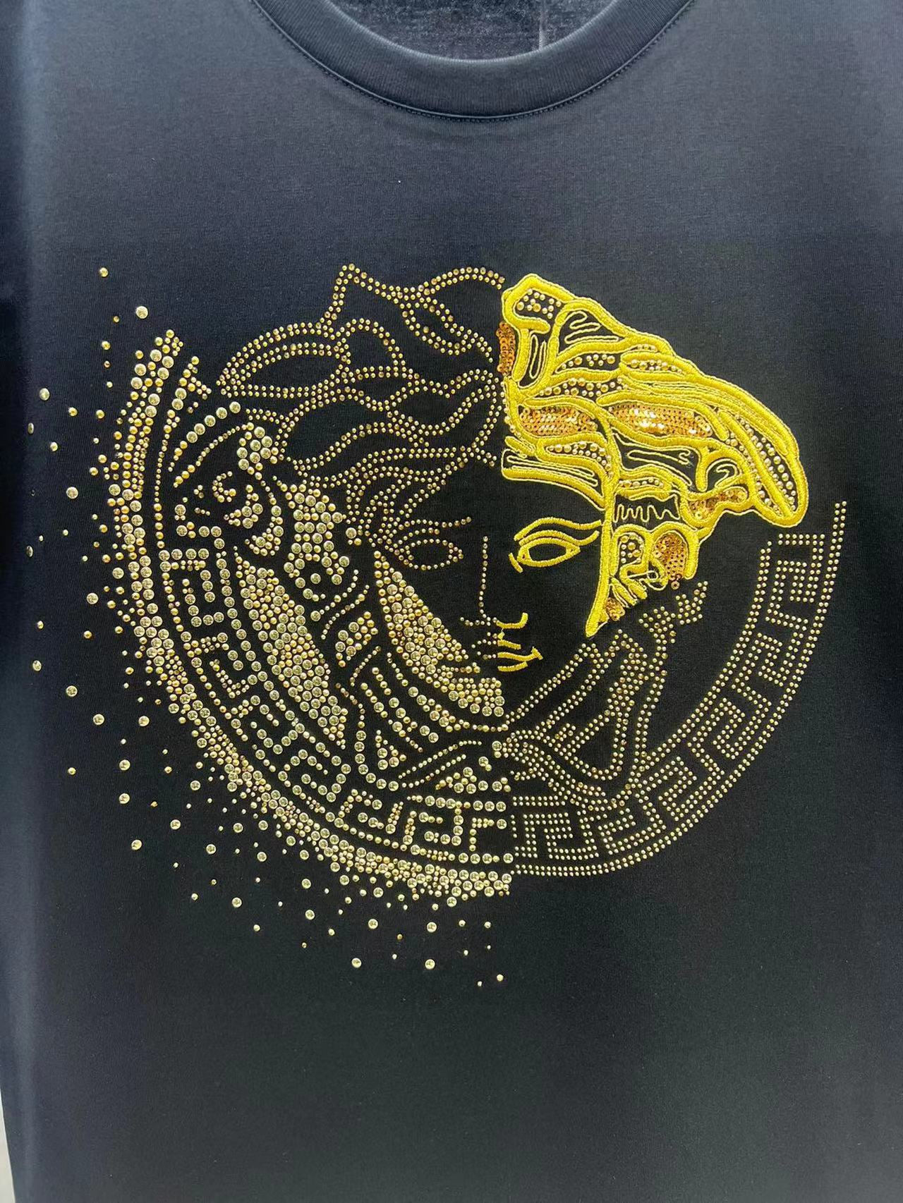 范思哲鉚釘水晶刺繡美杜莎圓領短袖T恤,真品經典著作熱賣款之一