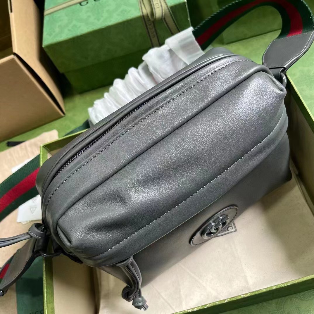 讓這款旅行配飾更顯低調。在這款綠色皮革肩背包上,