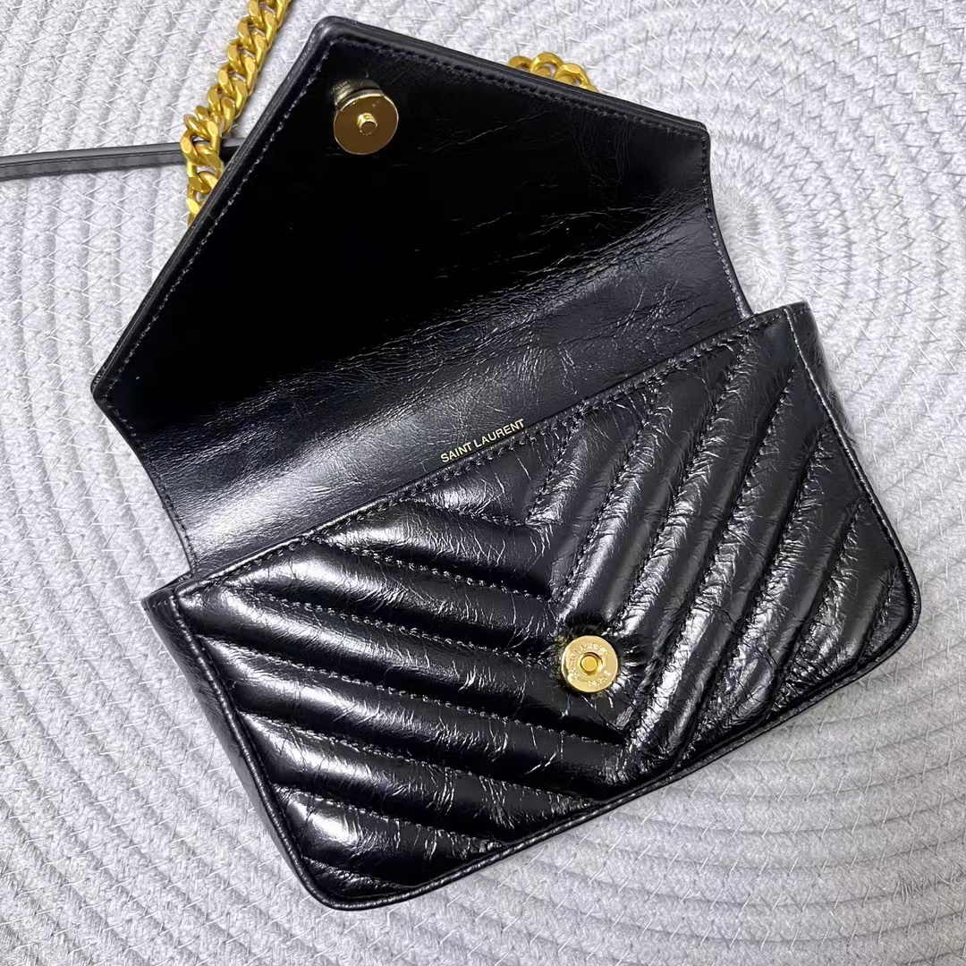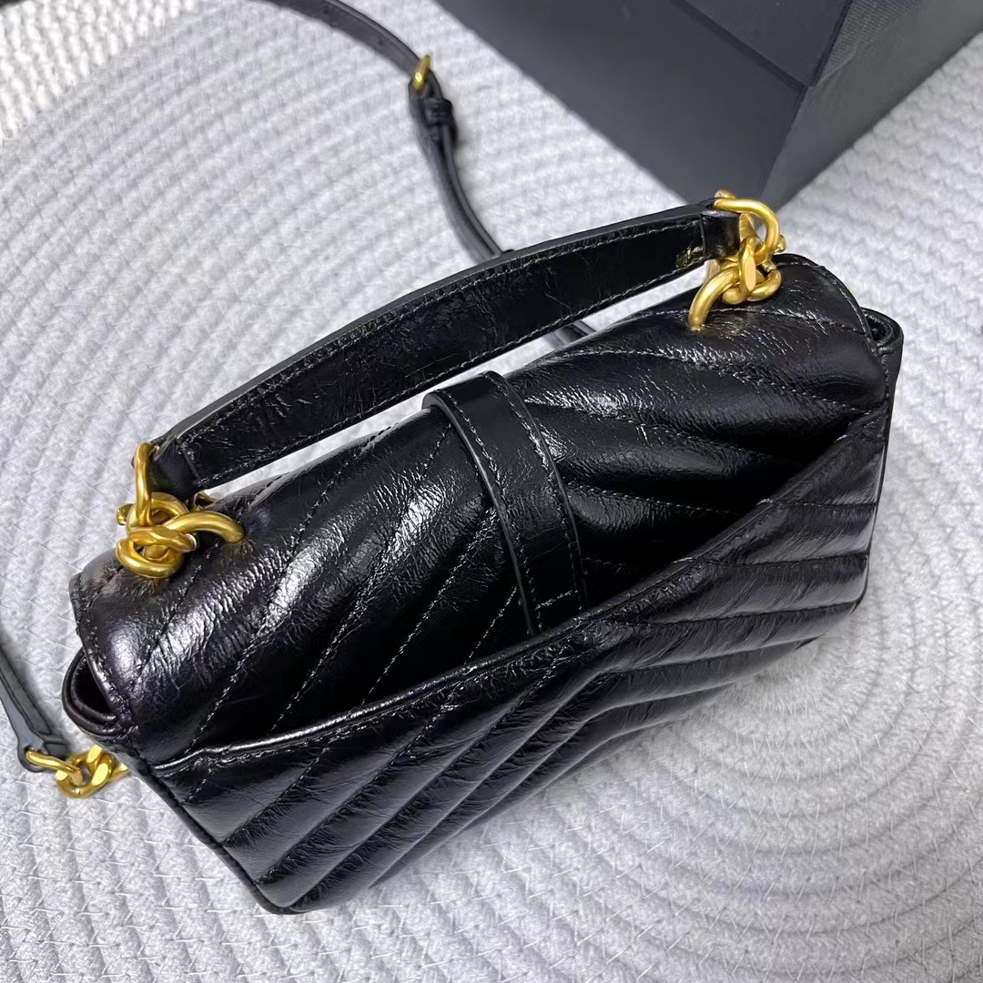 - 20240413 YSL全皮皺折翻蓋肩背手提包 海外原單 歐美代購 專櫃同步在售