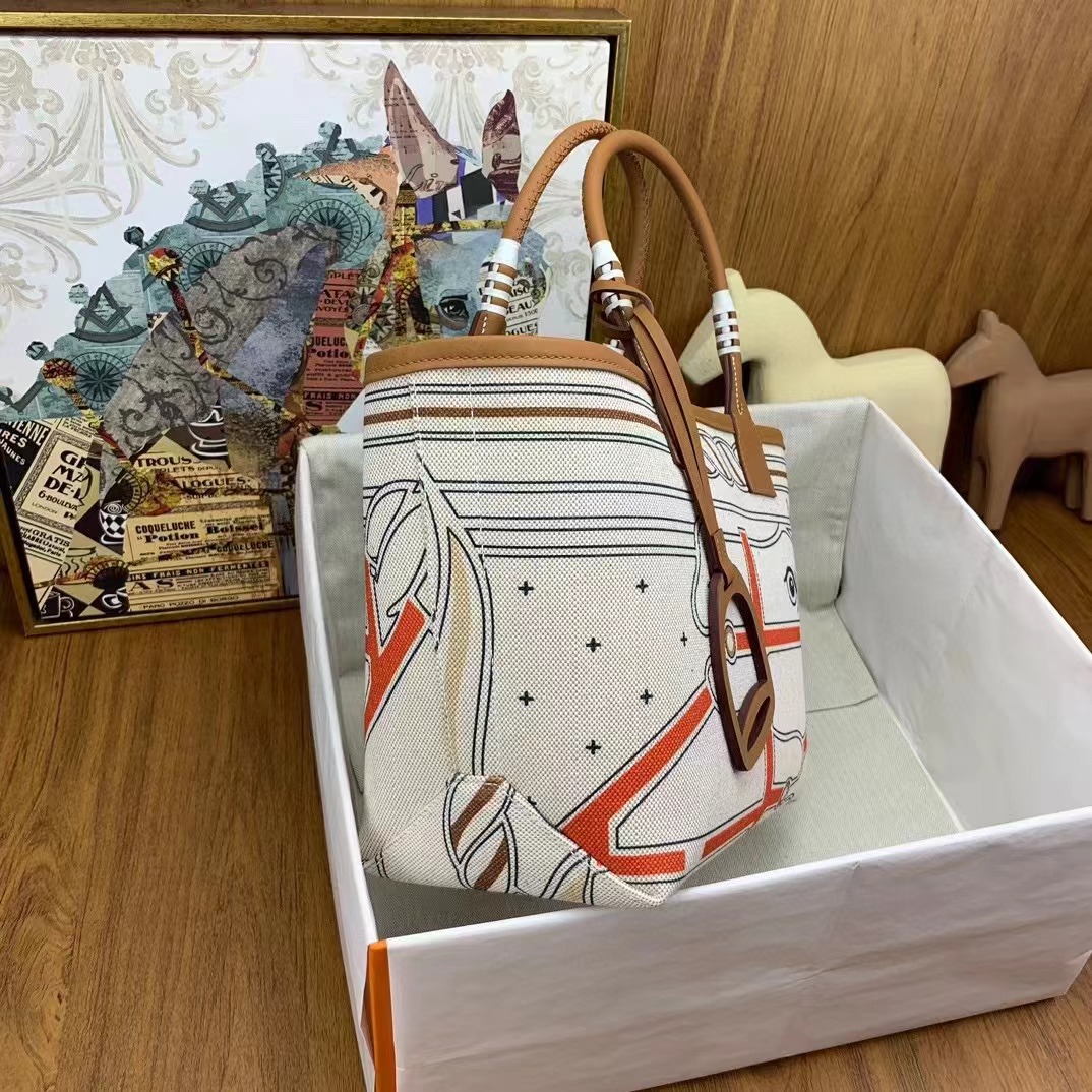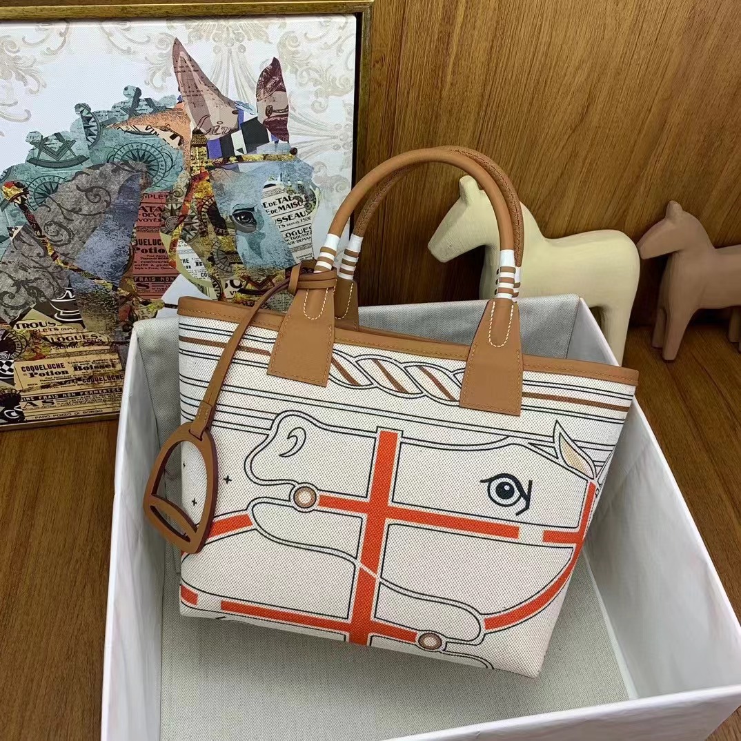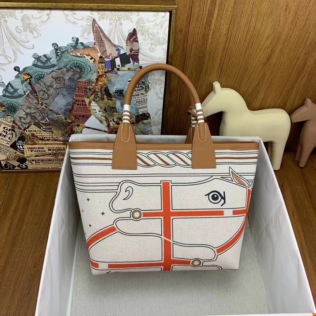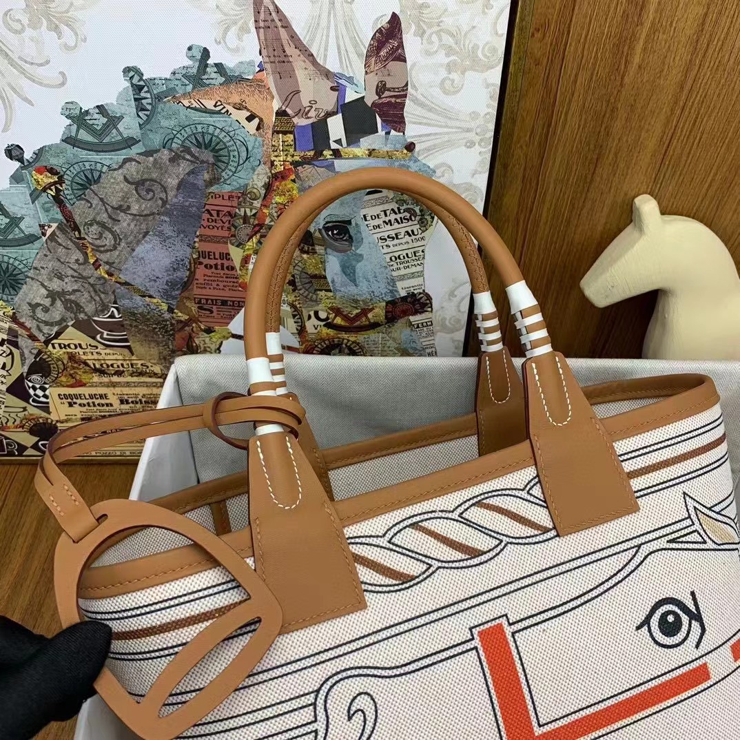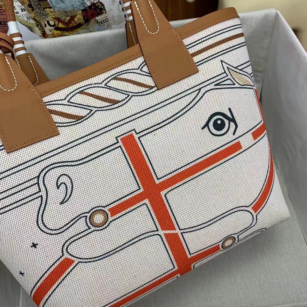 - 20240413 Hermès愛馬仕馬蹄鐵帆布手提包 海外原單 歐美代購 專櫃同步在售 共4款可選