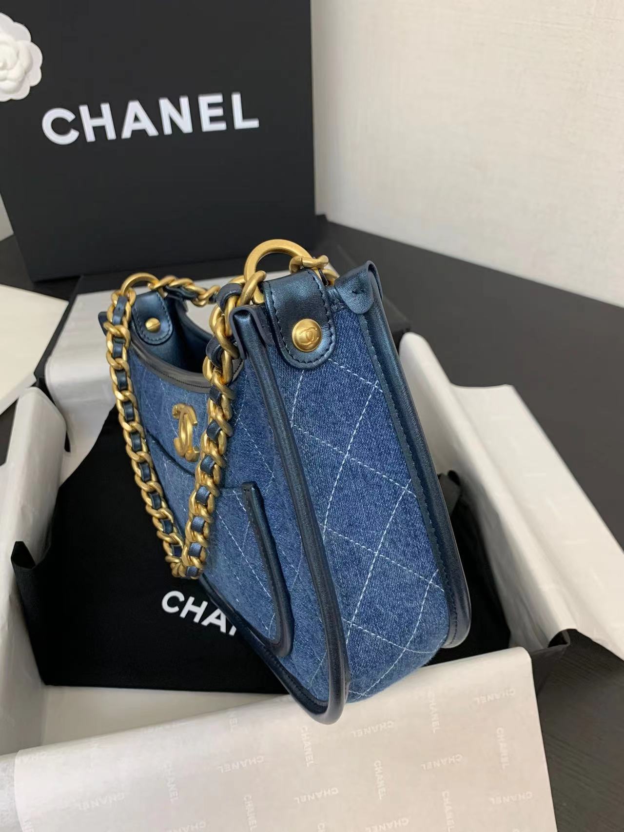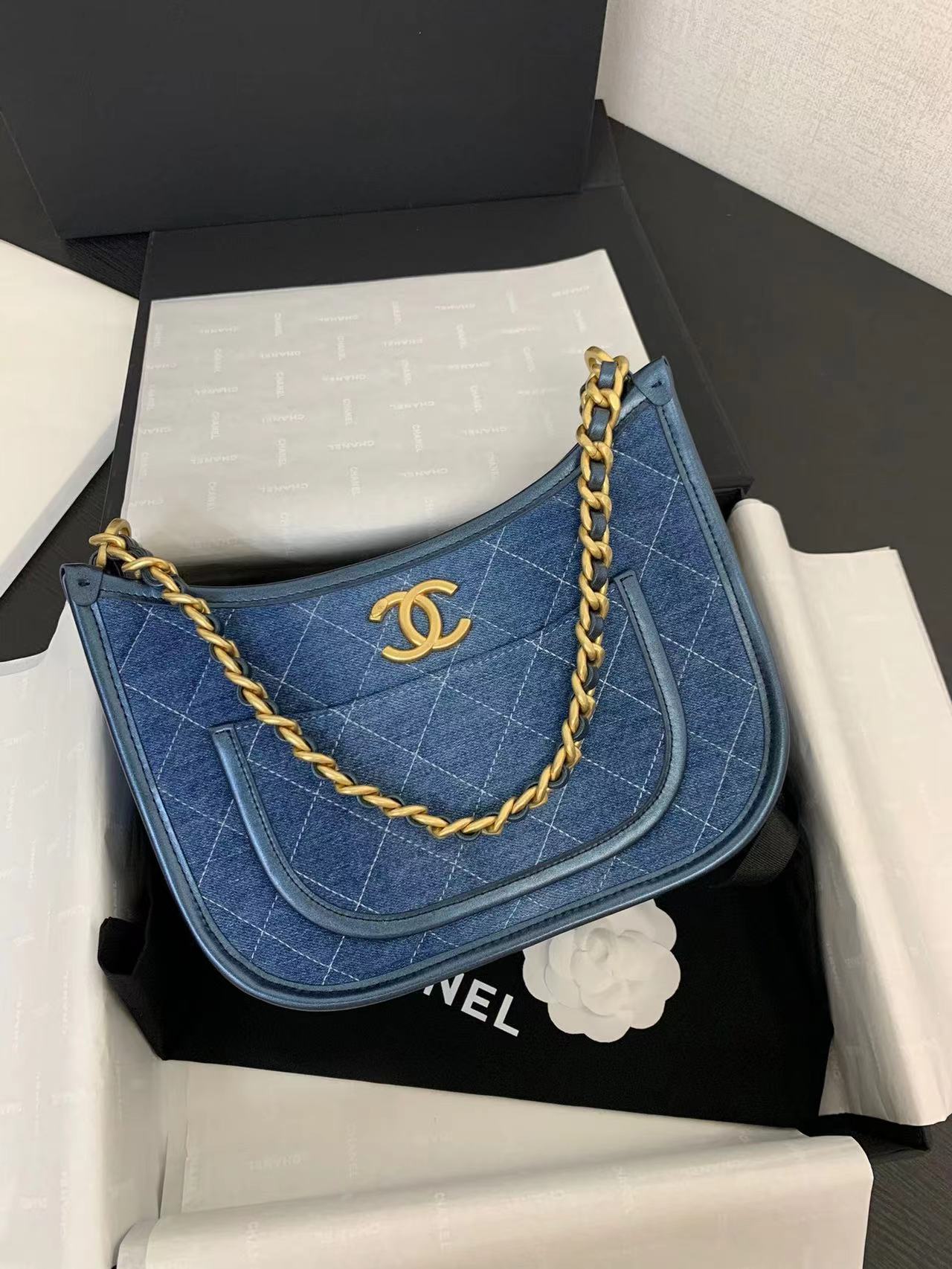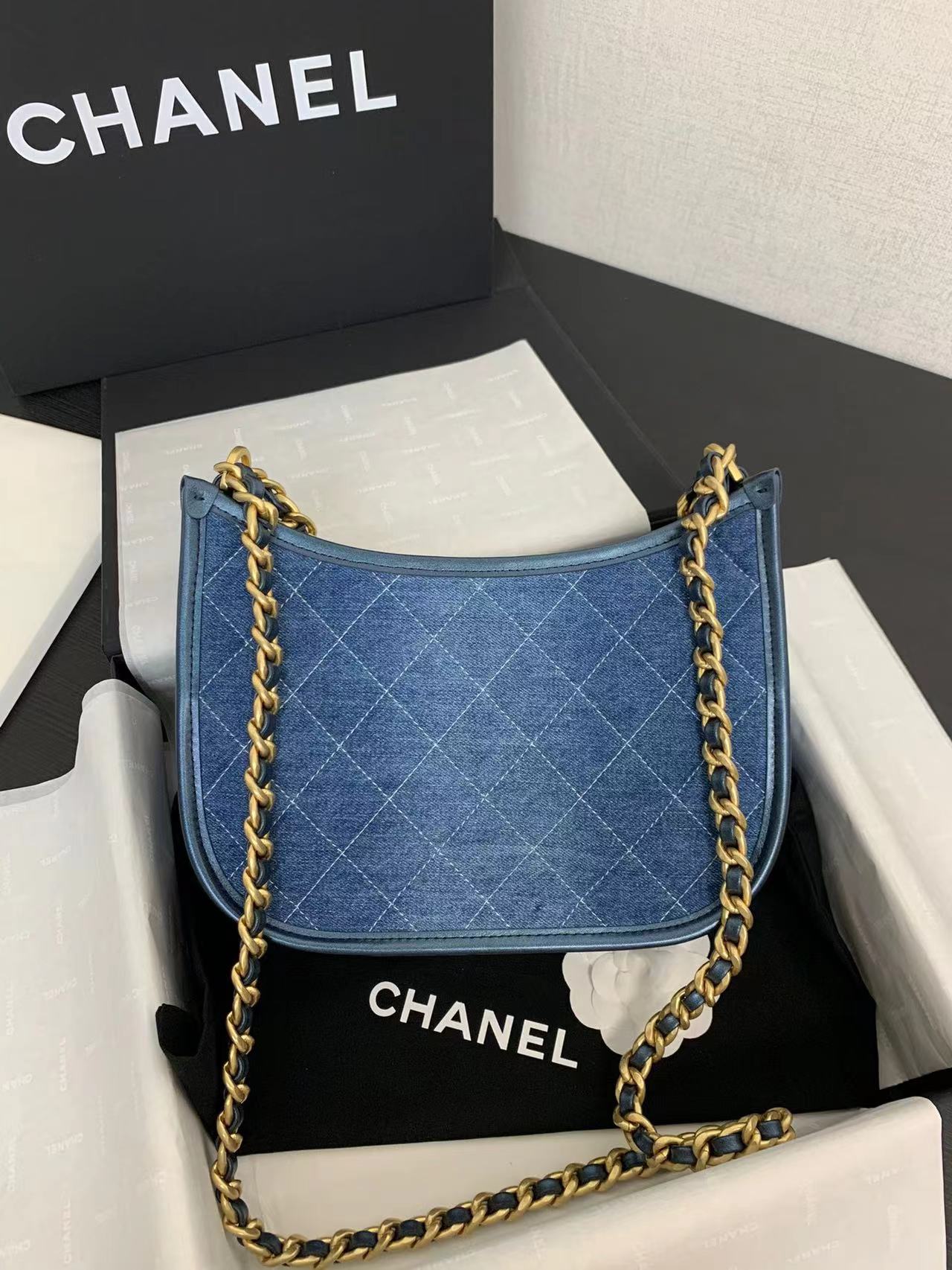 - 20240418 香奈兒牛仔帆布牛角肩背包 海外原單 歐美代購 專櫃同步在售
