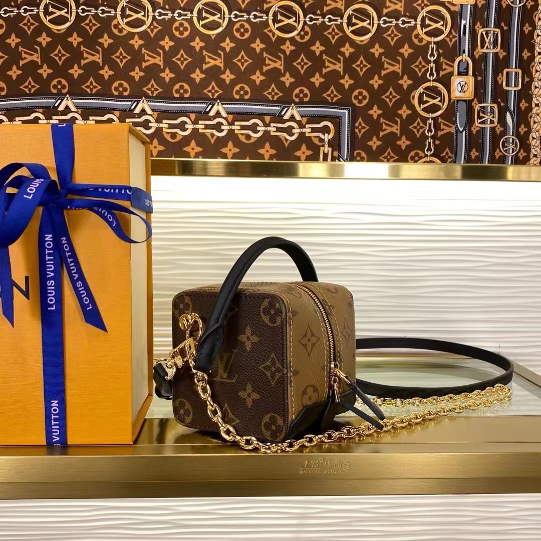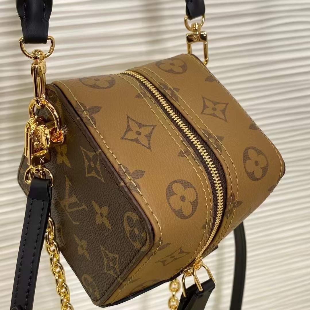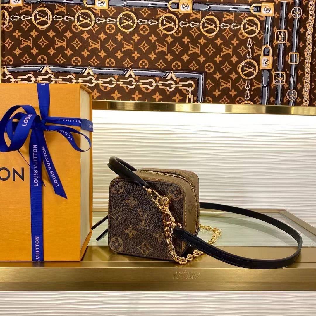 這款 Dice手袋以Monogram帆布製造,小巧的尺寸洋溢玩味氣息,