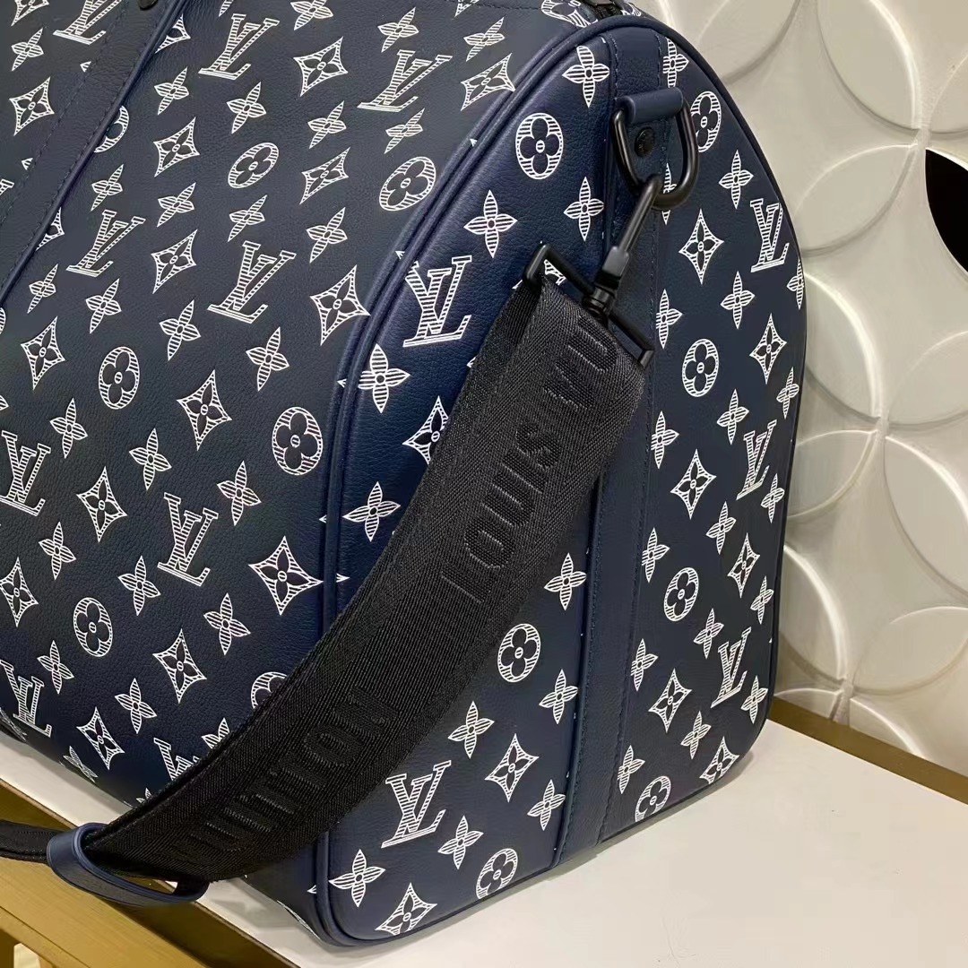 Monogram Shadow小牛皮給這款Keepall Bandoulière 50旅行包一種運動感。