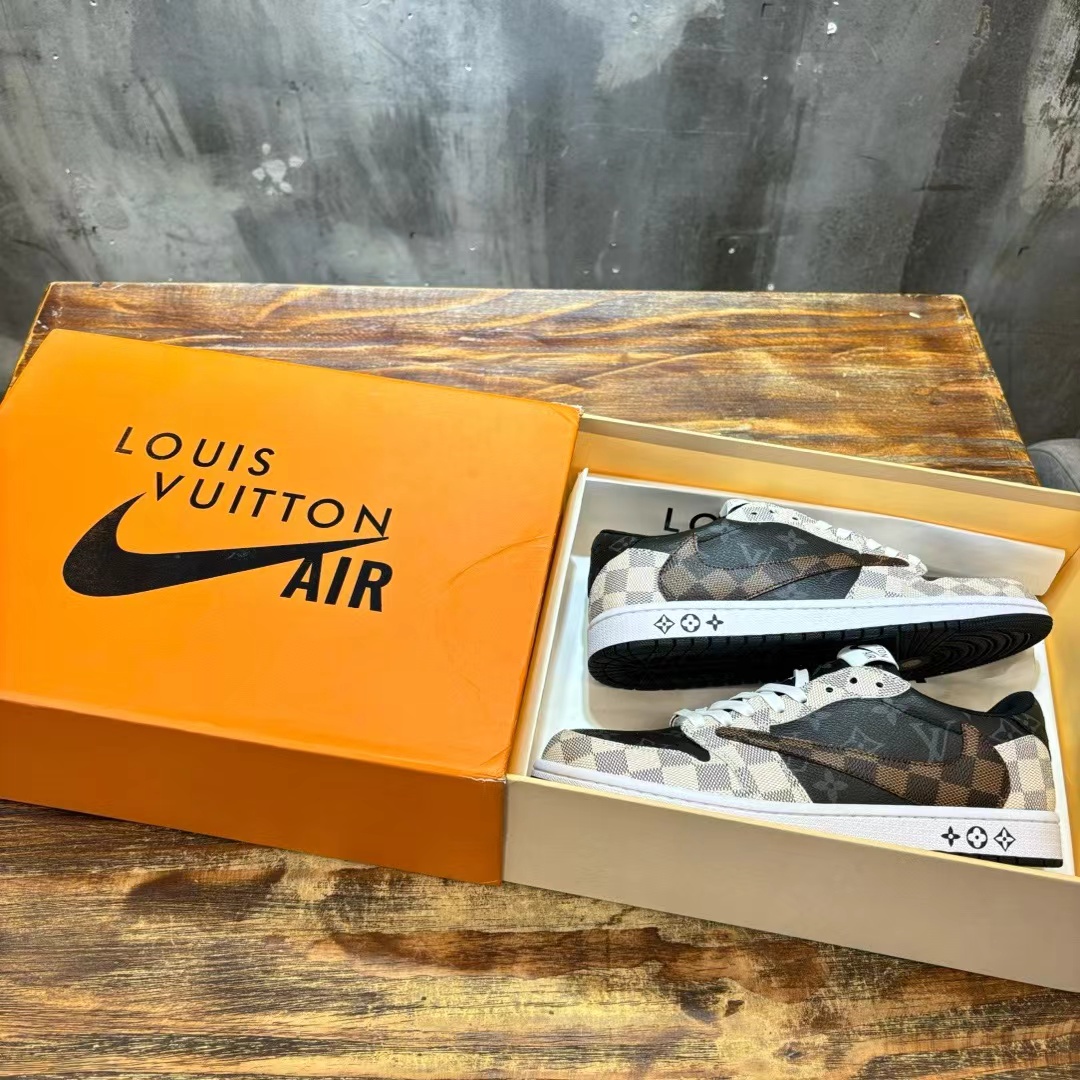 LV & AJ1 聯名款 最新倒勾 板鞋 牛皮面
