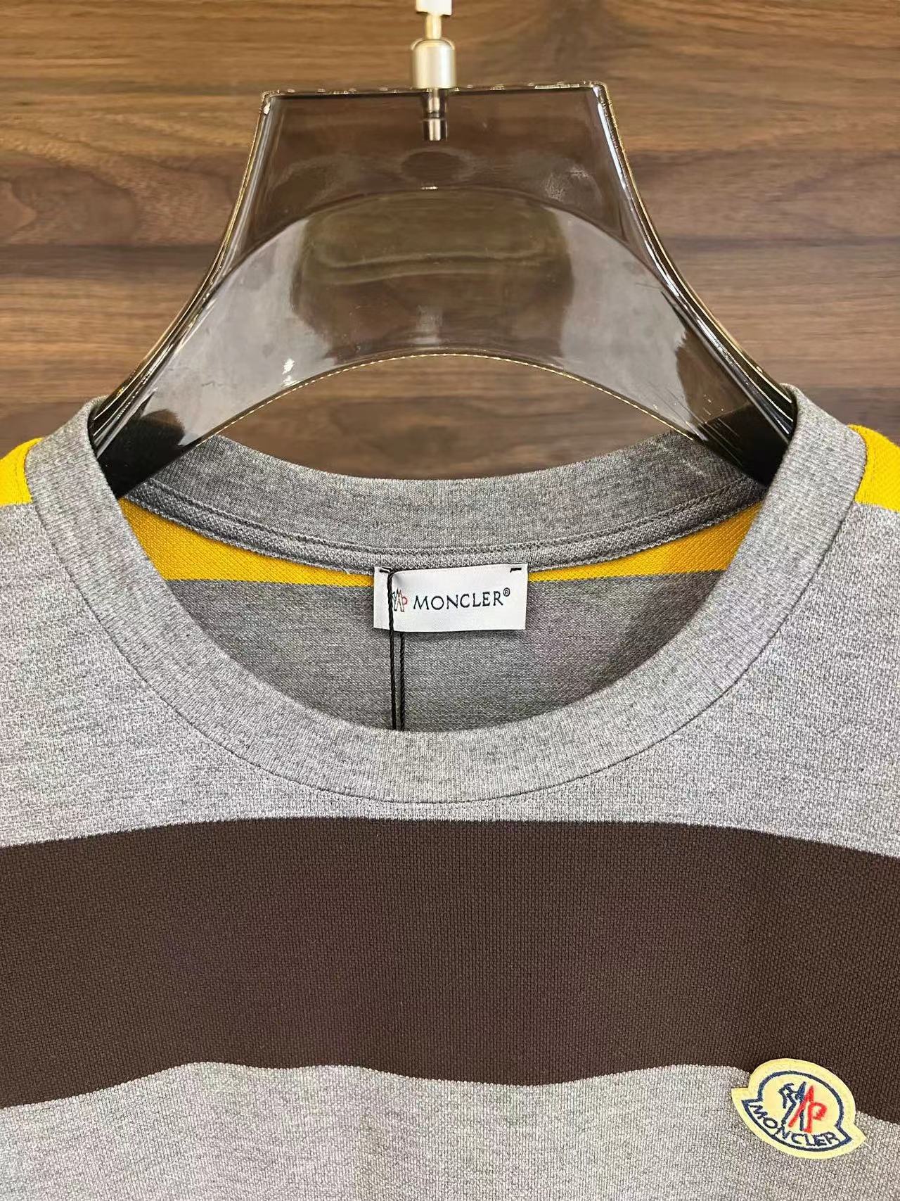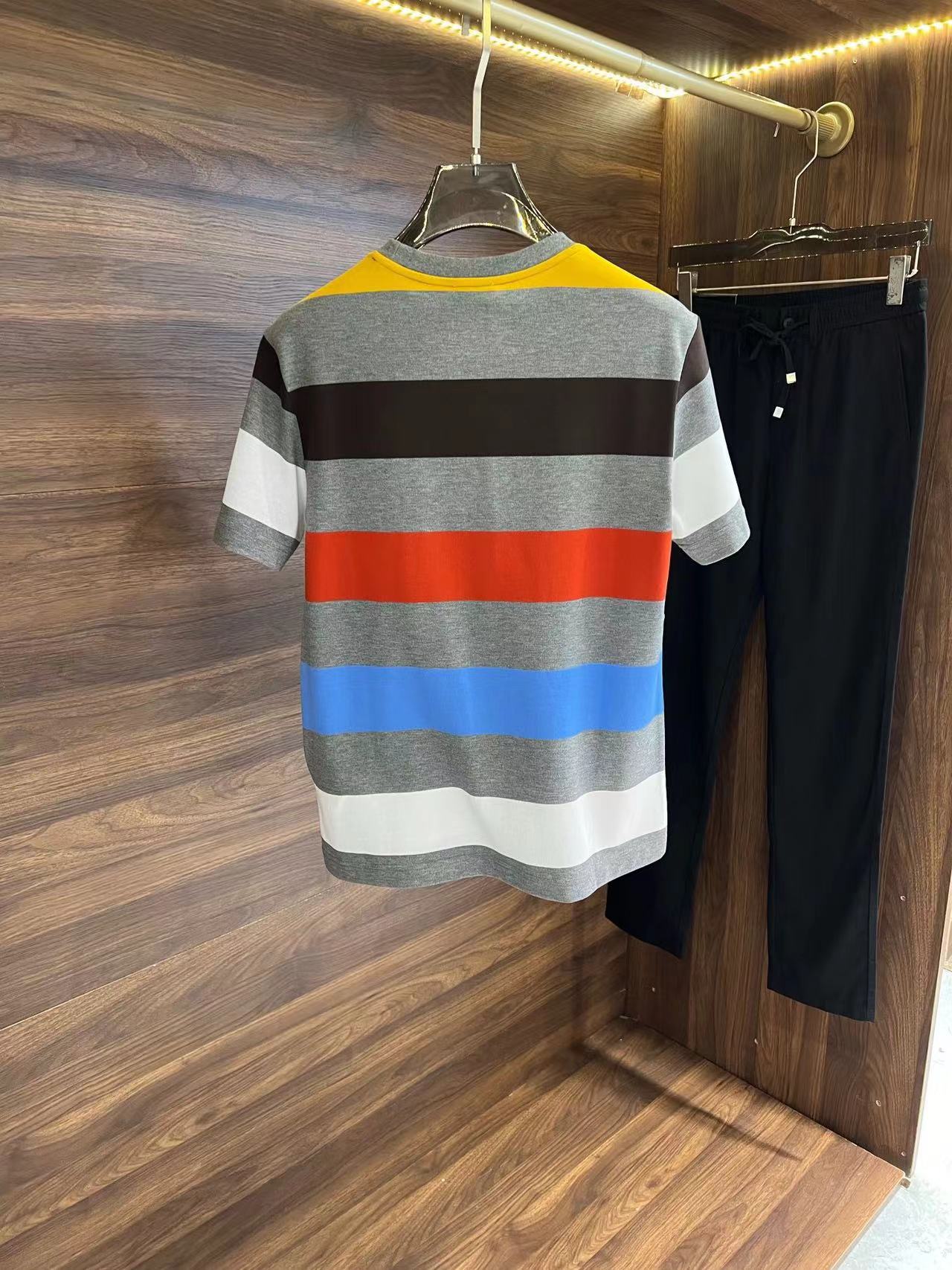 春夏專櫃新款寬條拼色圓領短袖T恤,
