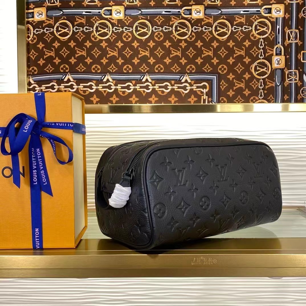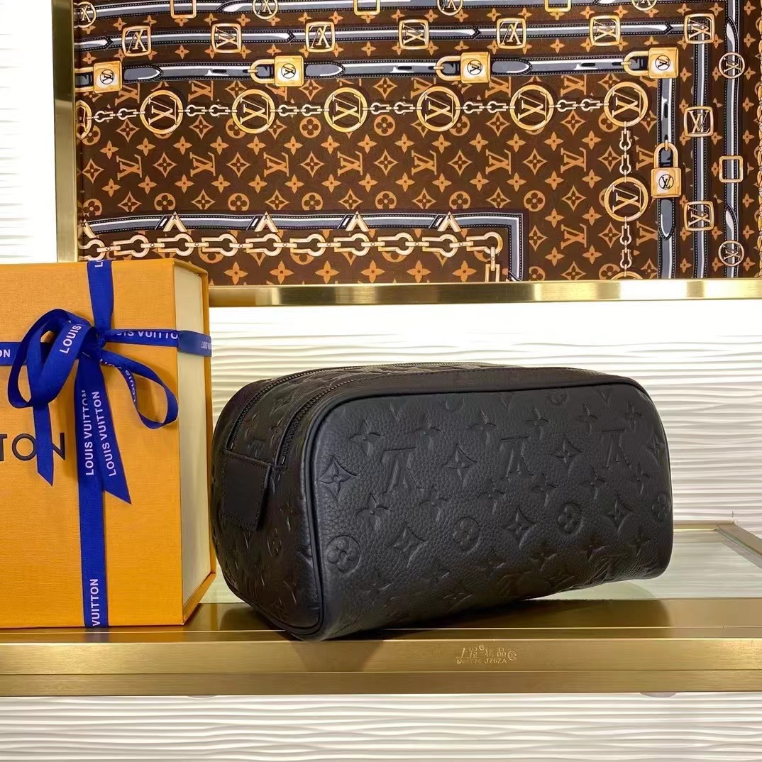 Dopp Kit梳洗包以細緻粒面Taurillon Monogram皮革製造,