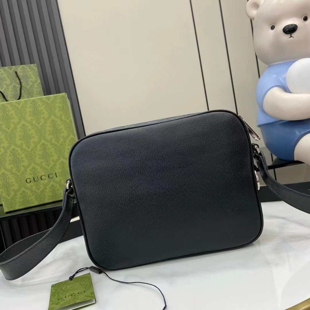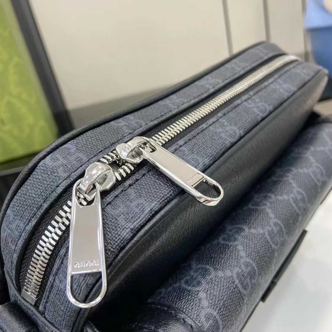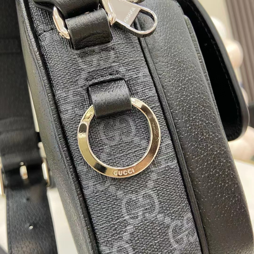 這款斜挎包以黑色皮革和GG Supreme帆布匠心打造,