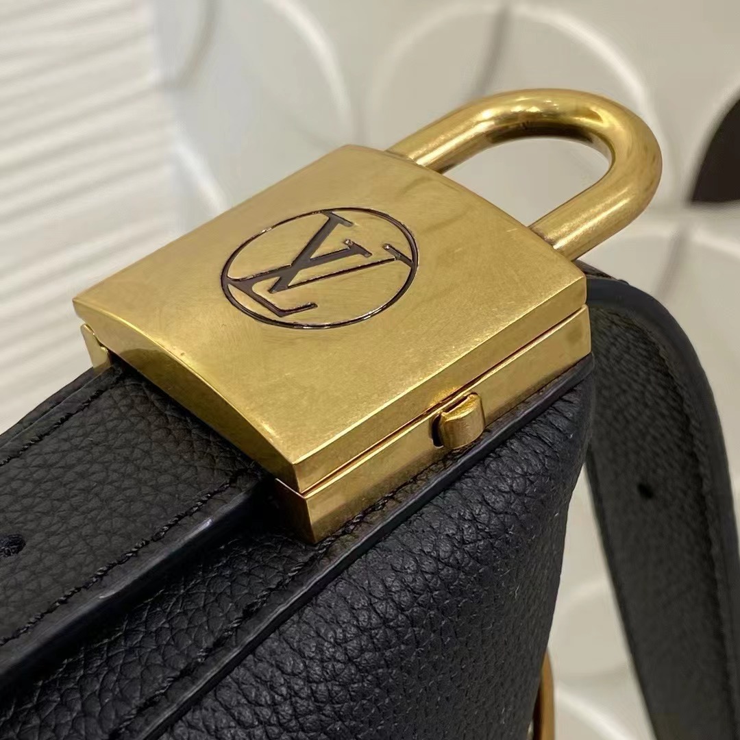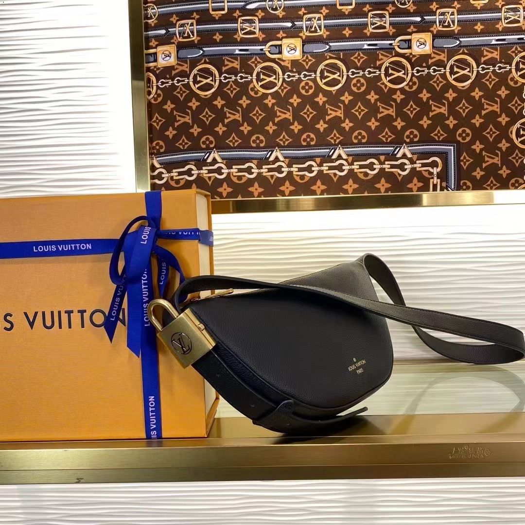 光滑的小牛皮和精致的細節。這些包括LV雕刻挂鎖和絨面革小牛皮襯里