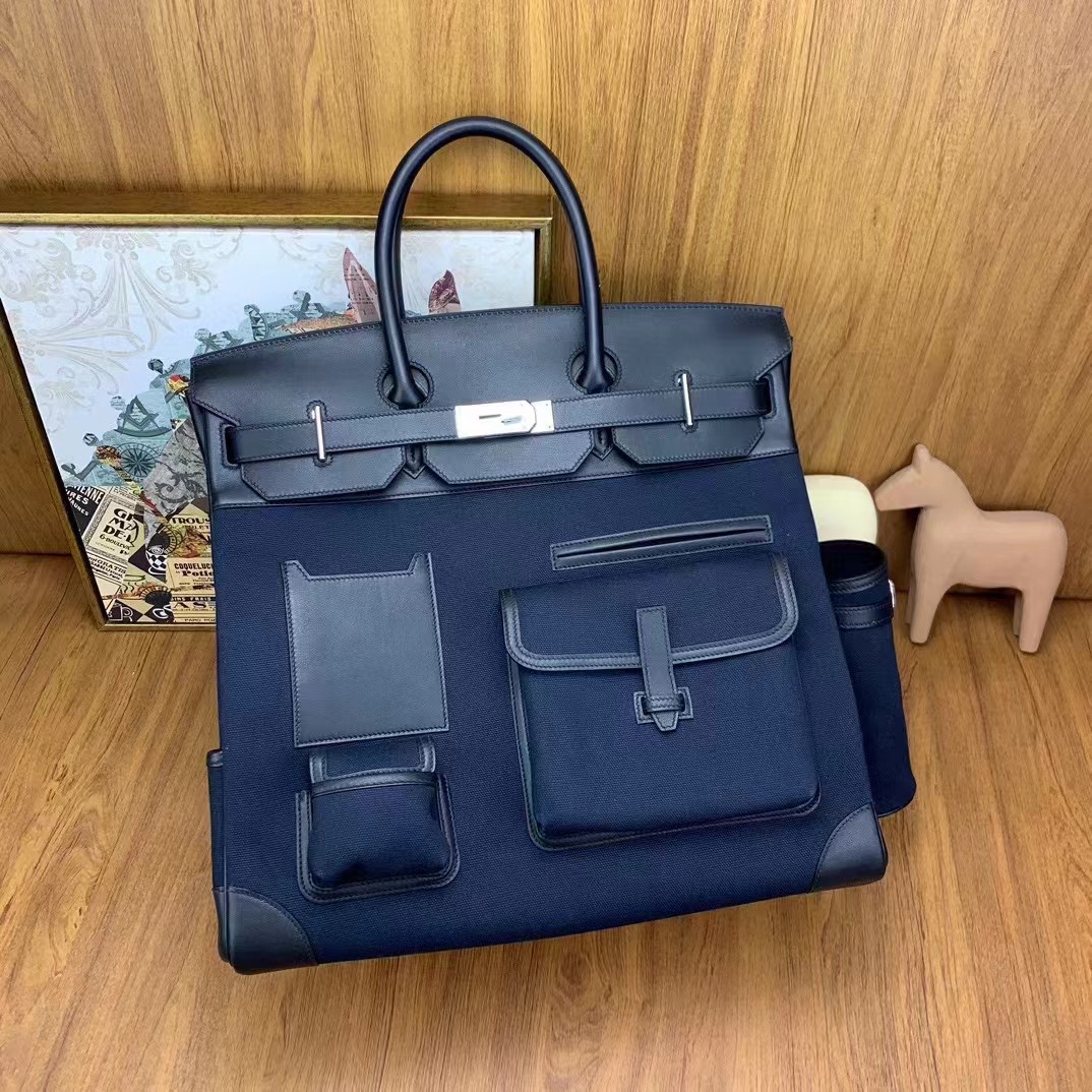 hac40 cargo 帆布拼swift皮 午夜藍拼黑色