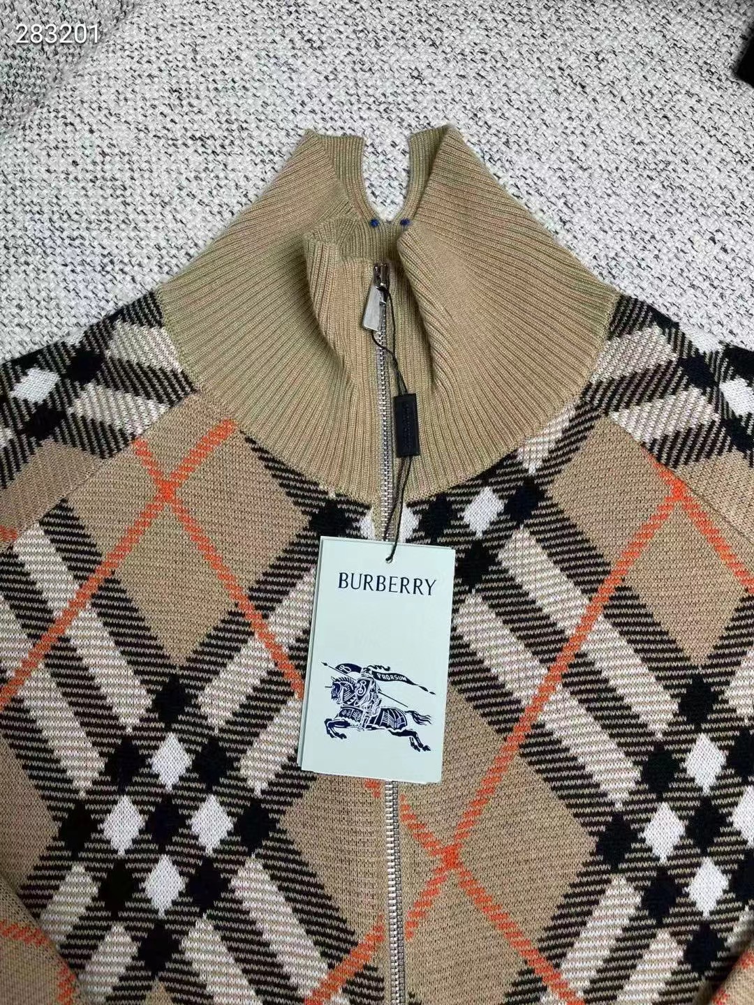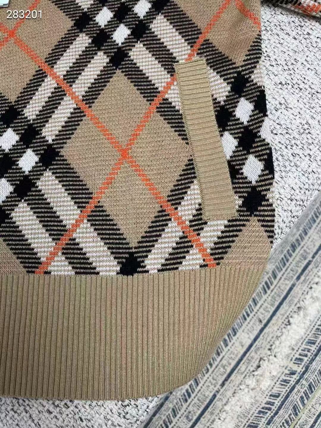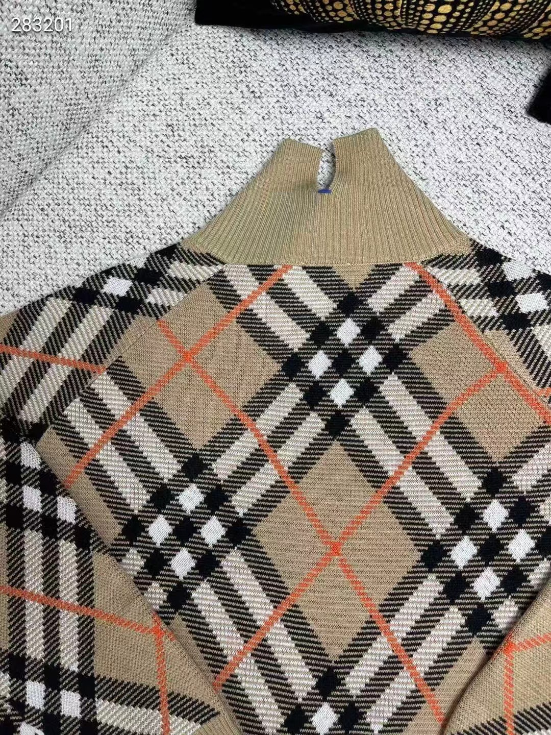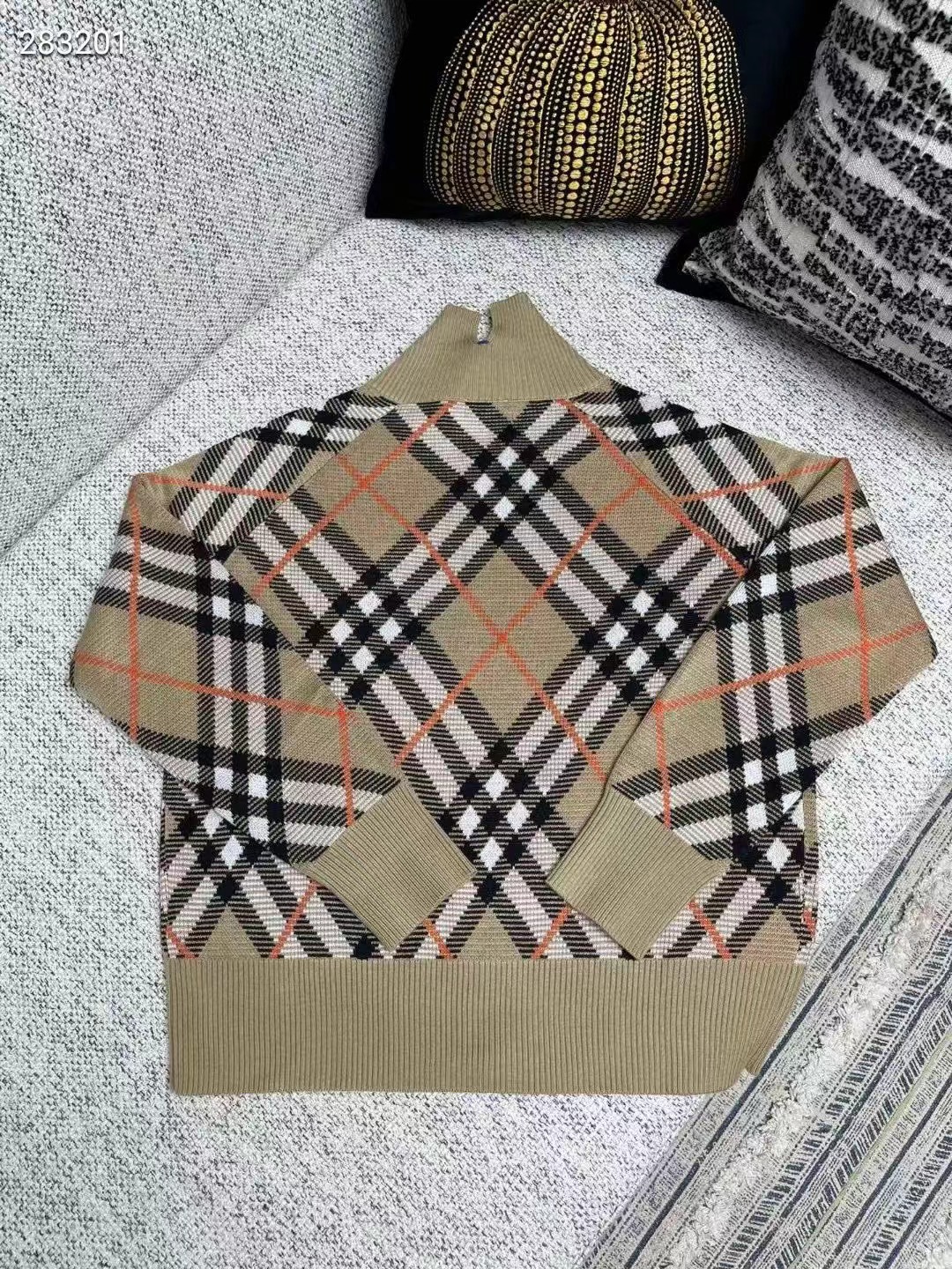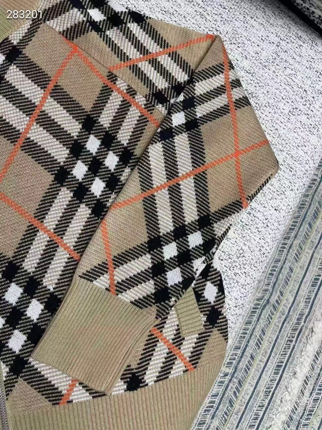 裝飾針織 Burberry 格紋。呈現休閑版型,
