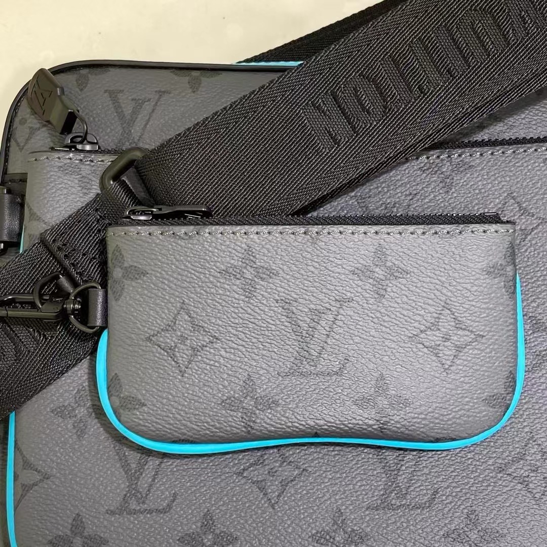 本款 Trio 郵差包以 Monogram Eclipse Reverse