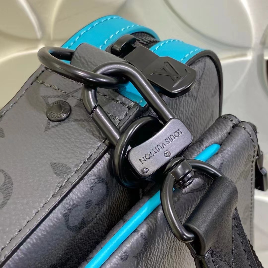 與主袋共同豐富功能設計。可調節並拆卸的織物肩帶點綴路易威登標識,