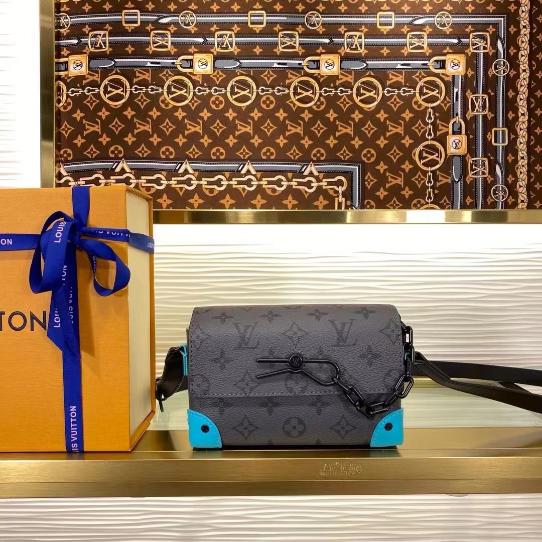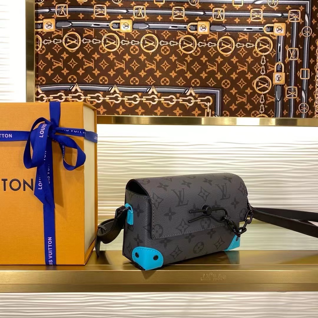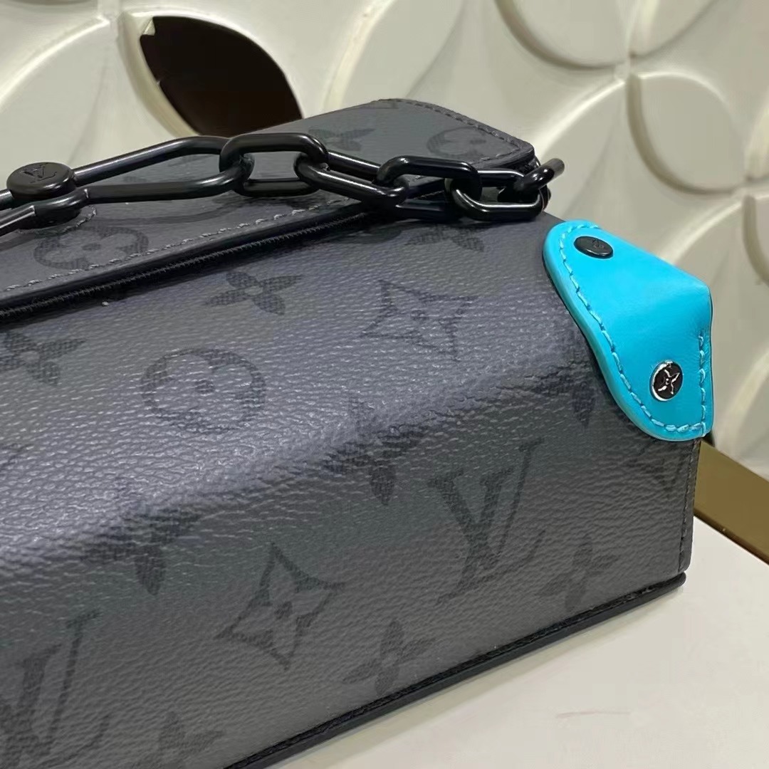 本款 Steamer 迷你手袋融合 Monogram Eclipse Reverse 帆布和牛皮革飾邊,