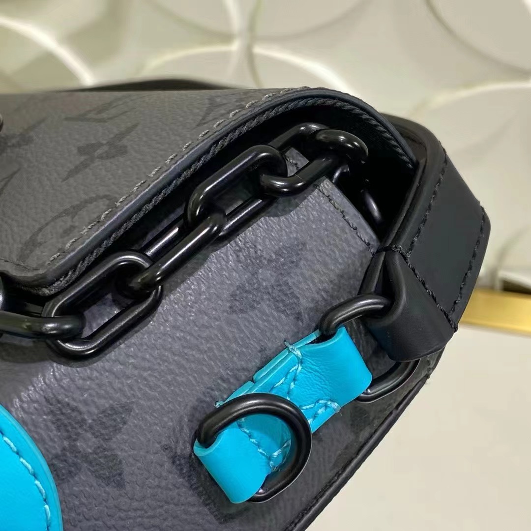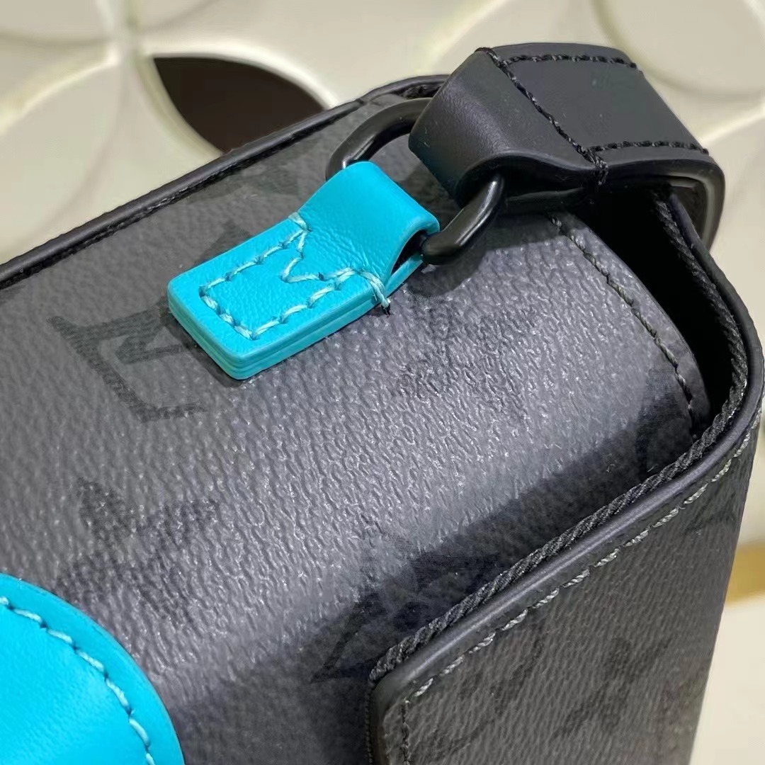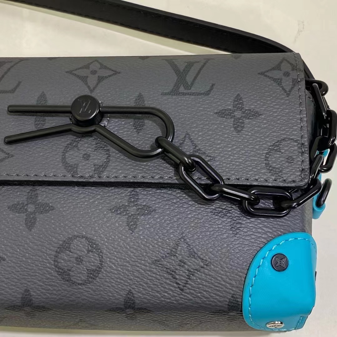 本款 Steamer 迷你手袋融合 Monogram Eclipse Reverse 帆布和牛皮革飾邊,
