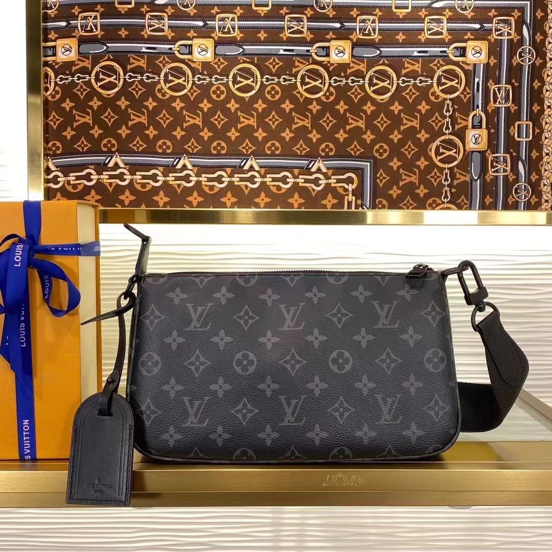 本款 Pochette Accessoire XL 手袋取材 Monogram Eclipse 塗層帆布,