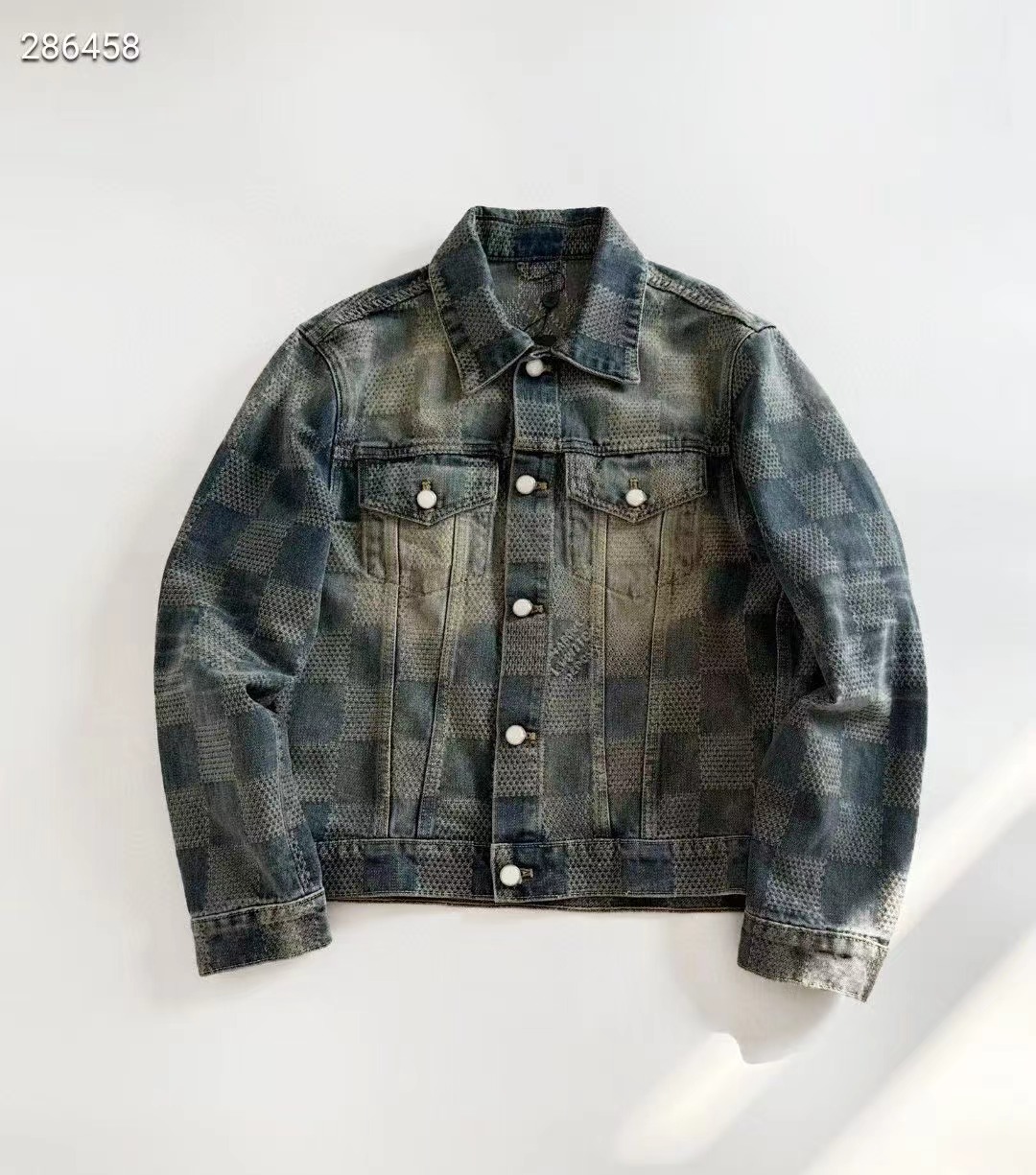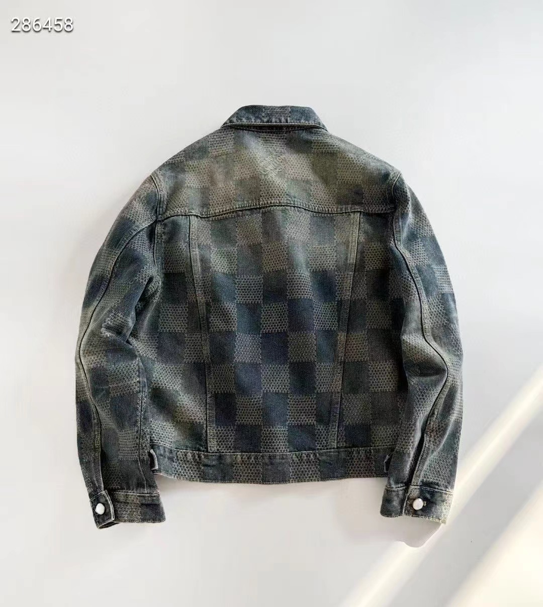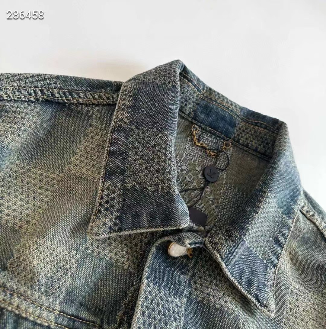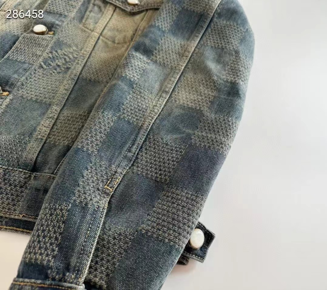 本款牛仔夾克選用水洗丹甯面料,爲 3D Damier 圖案