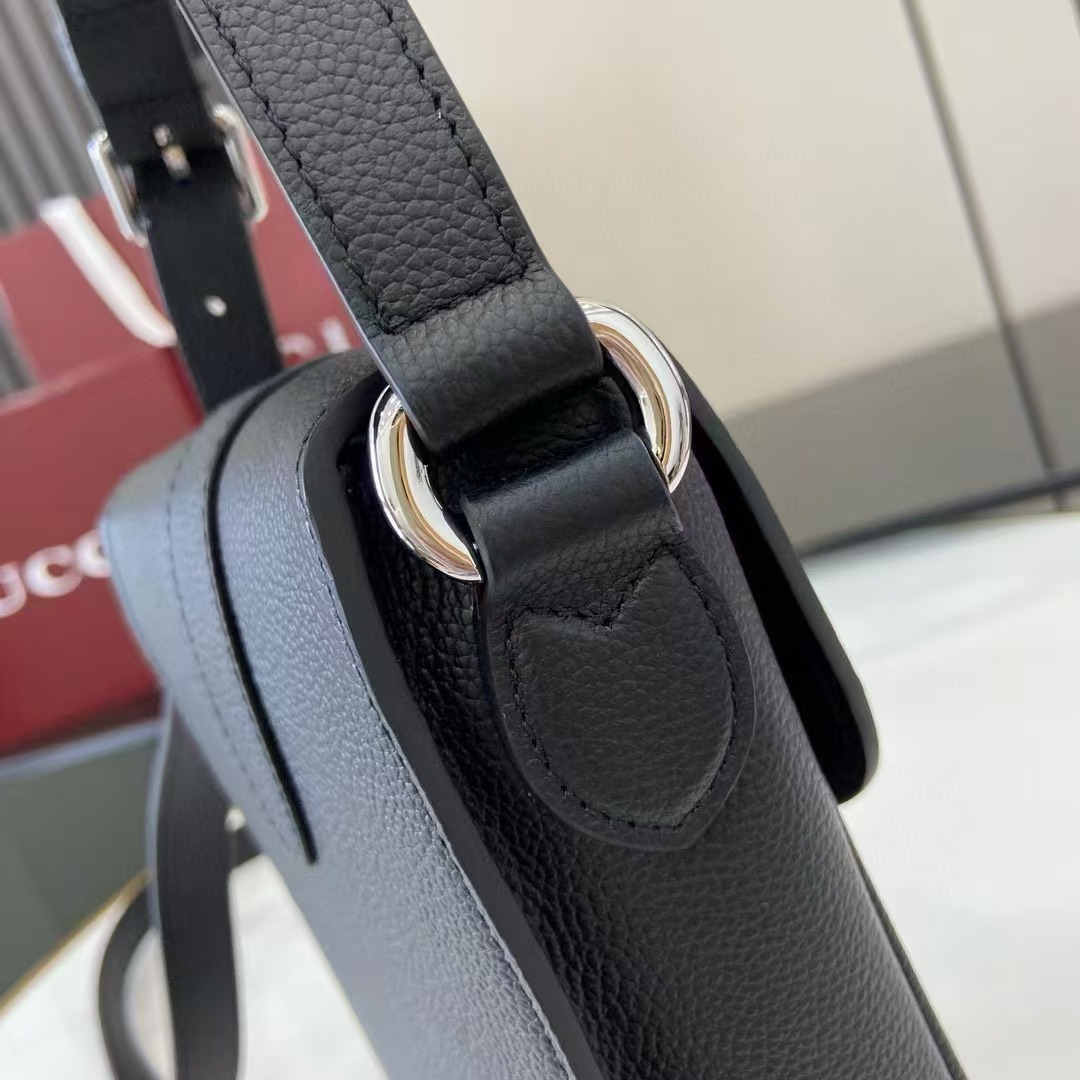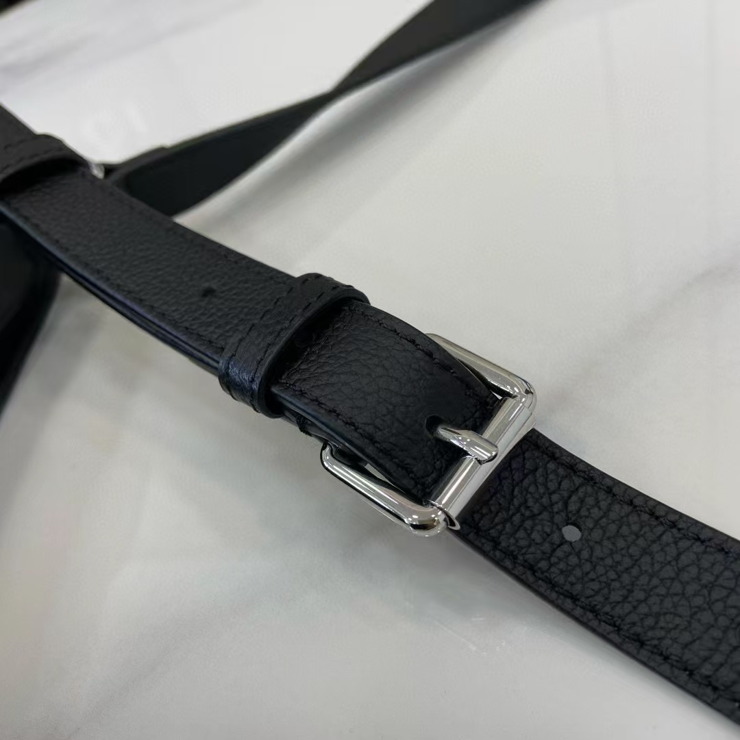 。這款日常斜挎包采用柔軟的粒面黑色皮革匠造而成,