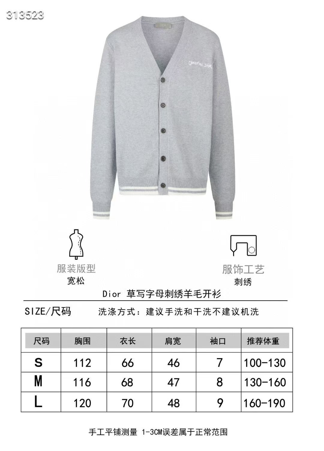 Dior 草寫字母刺繡羊毛開衫
