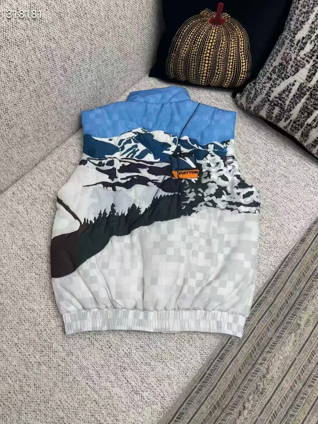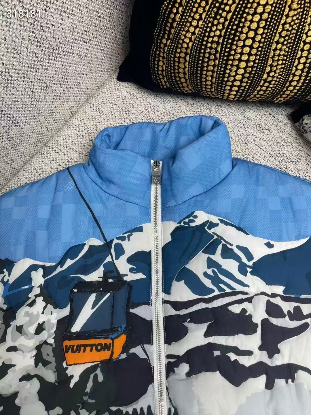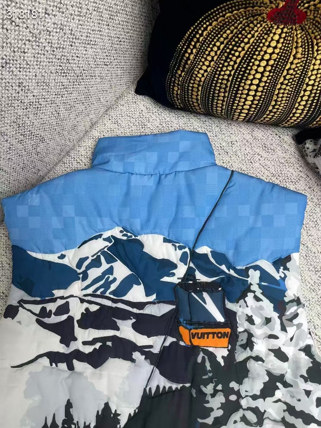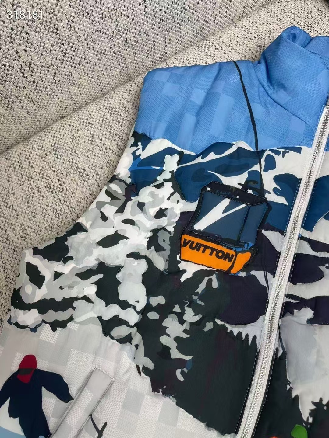 全幅 Damier Skiers 印花以浪漫山景搭配 Damier 圖案背景,