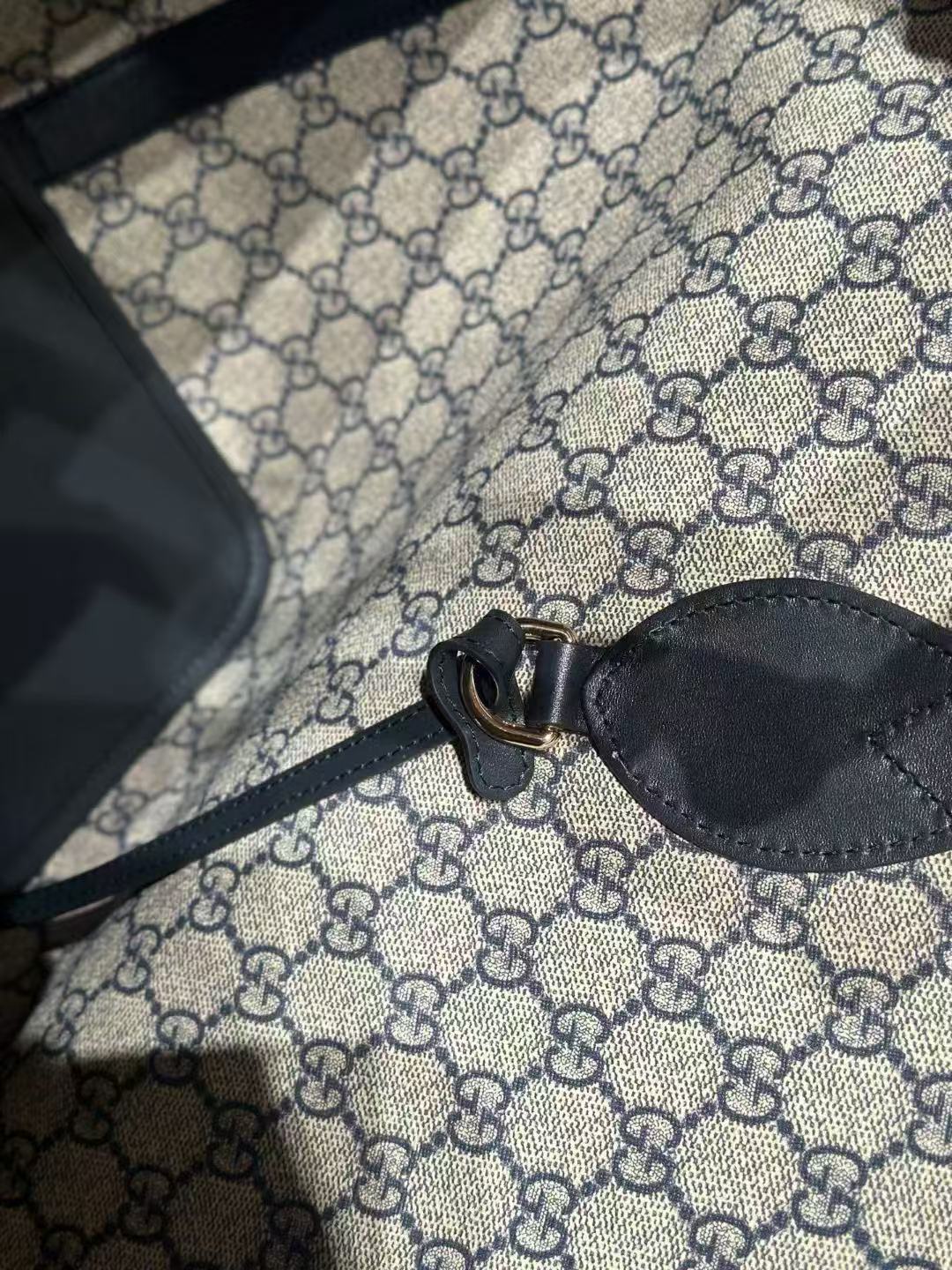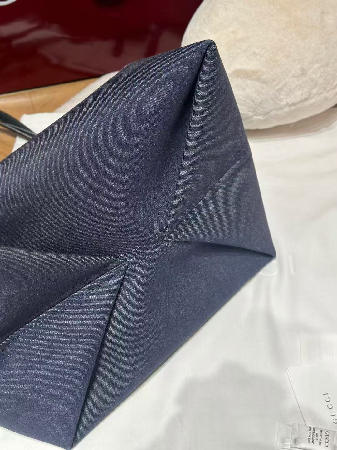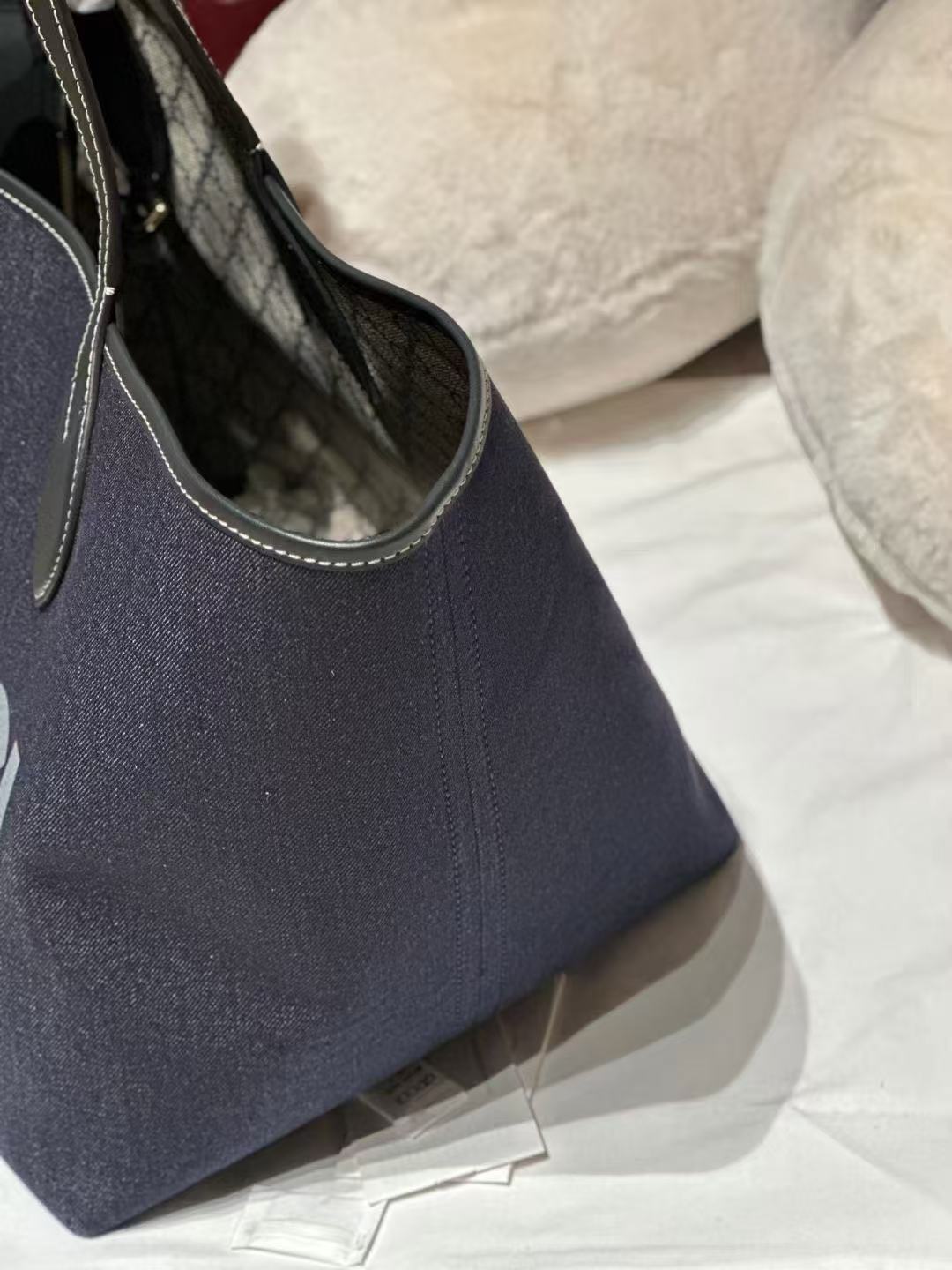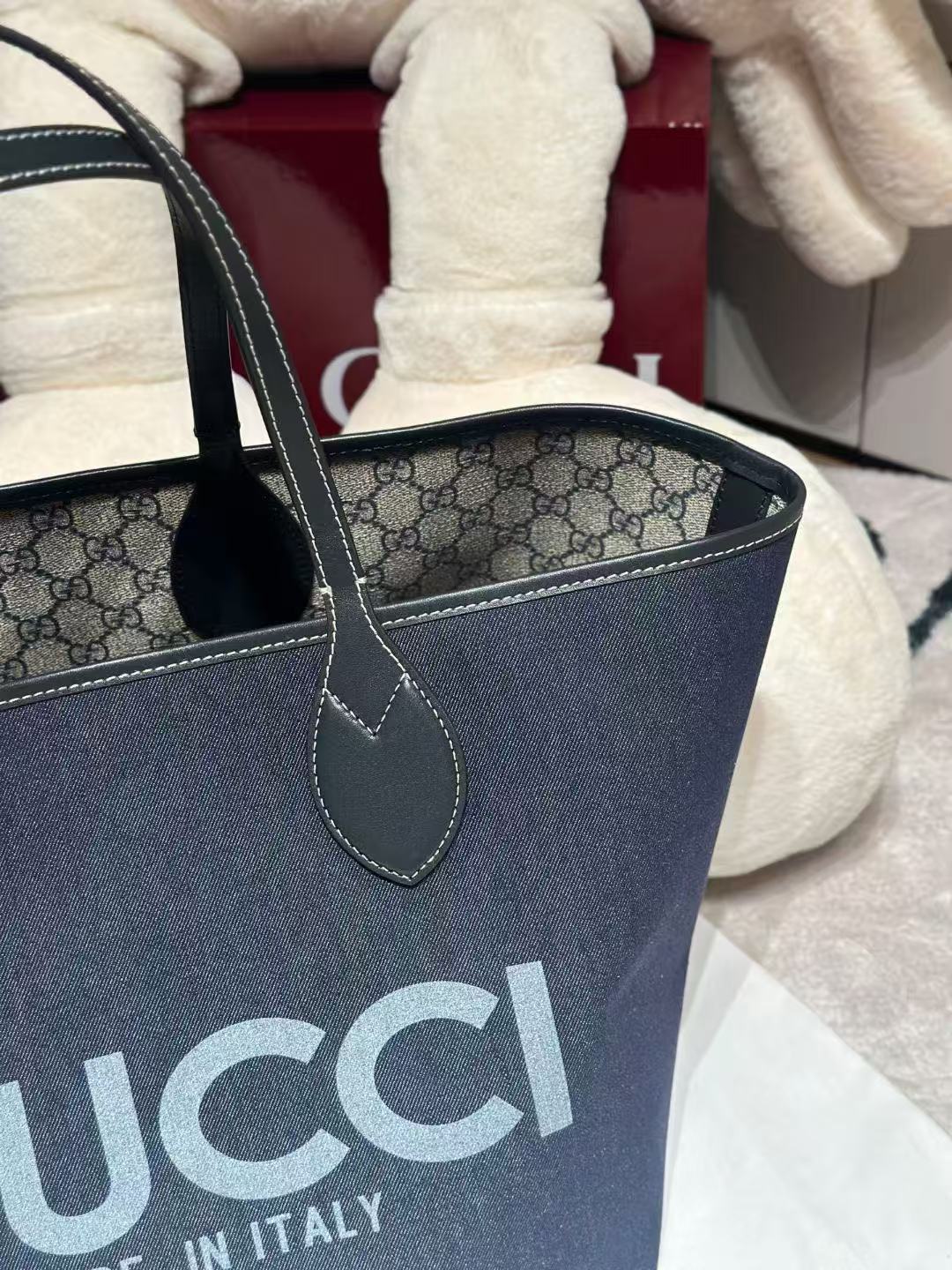 一面是深藍色牛仔布,另一面是米色和藍色GG Supreme帆布