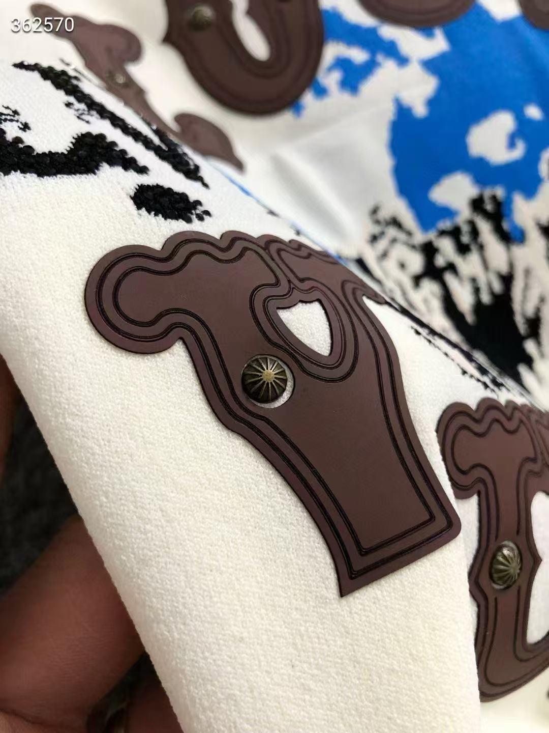 2025春夏金屬鉚釘融合頂級提花線繡伊力特圓領針織短袖,