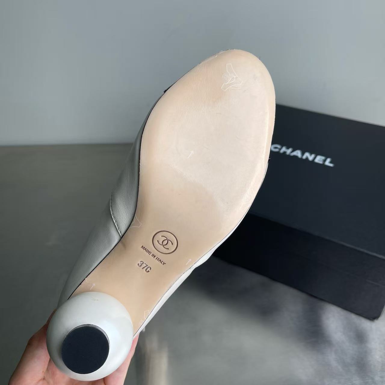 獨特小香珍珠logo 大圓跟 純羊皮