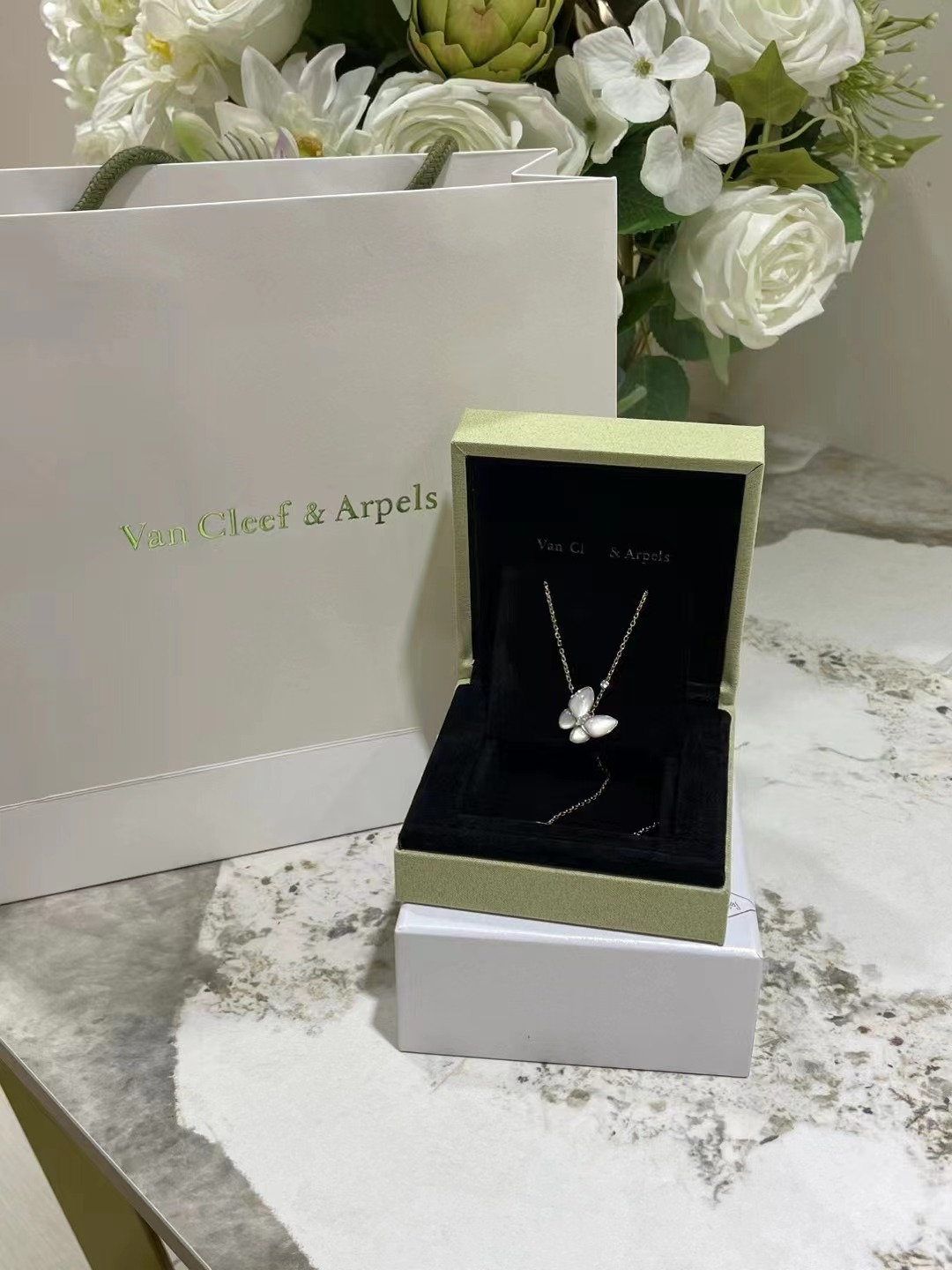 梵克雅寶Two Butterfly白貝母蝴蝶🦋吊墜項鏈