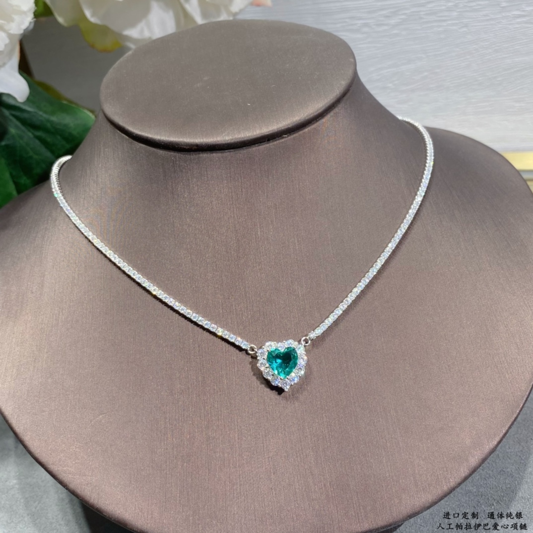 彩寶:925200人工帕拉伊巴愛心項鏈,帕拉伊巴,一種有著電光霓虹般美麗的寶石,這幾年也慢慢被全世界所知曉,因其獨特的美麗,以實力躋身貴寶行列的半寶之星,具有攝魂的澄澈度…明耀的霓虹電光藍仿若被閃電一擊必中,通透明淨的馬大夫藍猶如一汪凝固的湖水,誰說非天生麗質或出身名門不能閃耀於世,帕拉伊巴就是最好的詮釋。