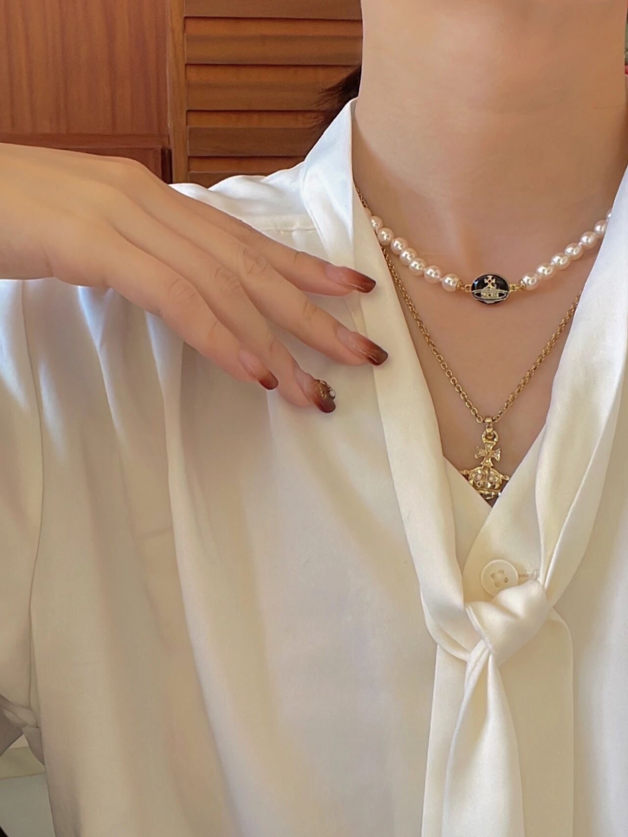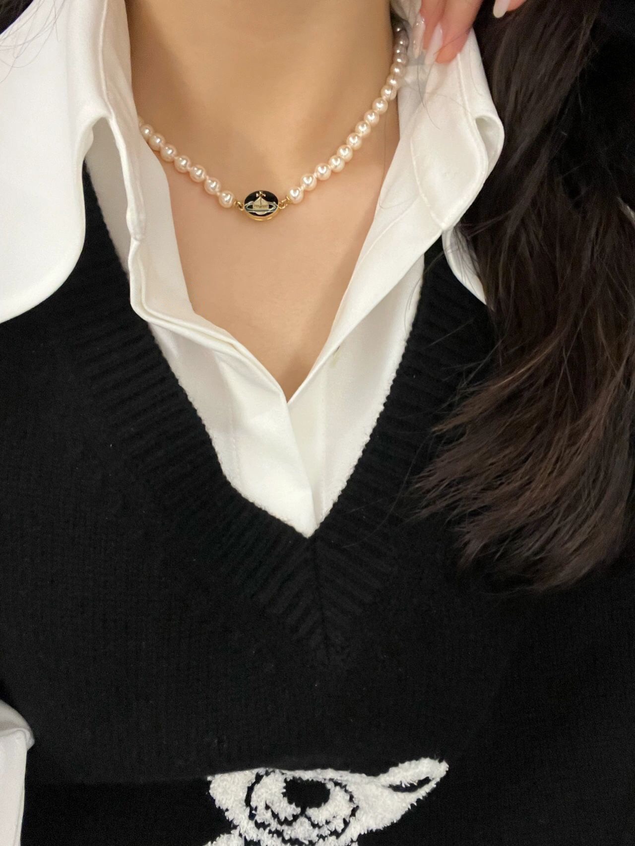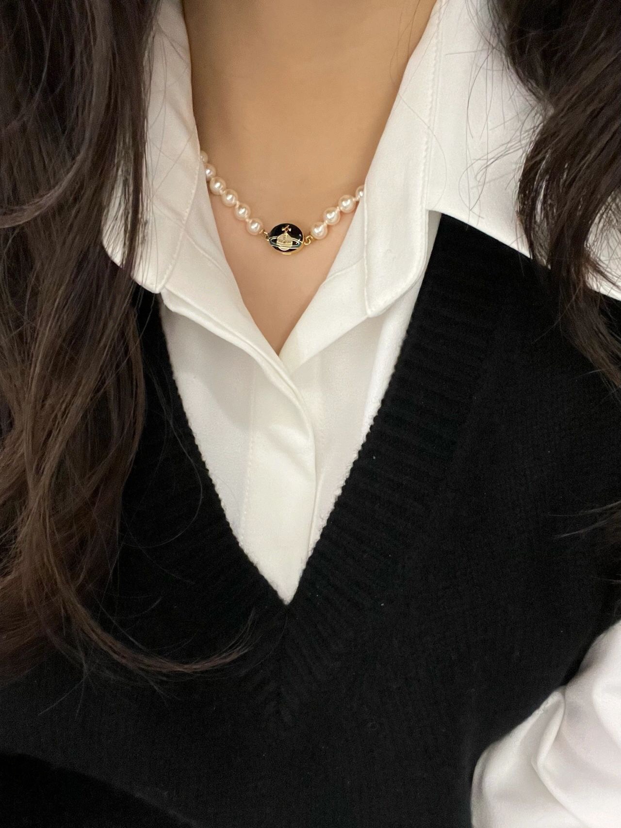 金黑項鏈【VivienneWestwood】Lisa同款一定要入!太絕美了寶寶,什麼是快樂星球,來,這就是快樂星球!絕美限定搪瓷琺瑯珍珠項鏈!重磅推薦,一定要入,閉眼入!磁扣設計,雙面佩戴,太讓人心動了超級建議入兩條,可以疊戴還可以兩條連接當長鏈佩戴太絕了純粹王冠球是經典的象徵,閃耀土星環勾勒未來波光流轉間,開啟一場與未來的嶄新際遇!我們採用特定施華洛珍珠,而非市面上隨隨便便用個塑膠珠子就做出來的!拿到手完完全全可以感受到它的質感,手感,光澤感超nice土星搭配黑色琺瑯增添不少冷豔時髦的俏麗模樣,使得朋克同時又有點小少女,自帶一群時尚粉!真的敲好看,可鹽可甜,可純可欲!一眼便鍾情,絕對是“實用+高級”界的杠把子,絕對的yyds,絕對的寶藏永不過時的珍珠項鏈!