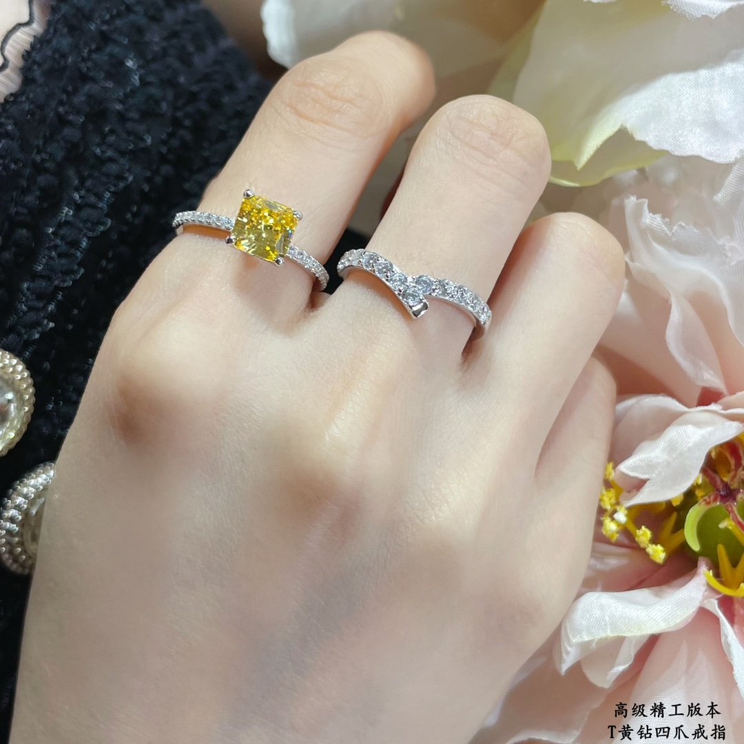925180。碼數:5678。蒂芙尼黃鑽四爪戒指,925純銀 風靡歐洲 太空納米技術 進口仿真鑽完美替代品。閃耀奢華款!
