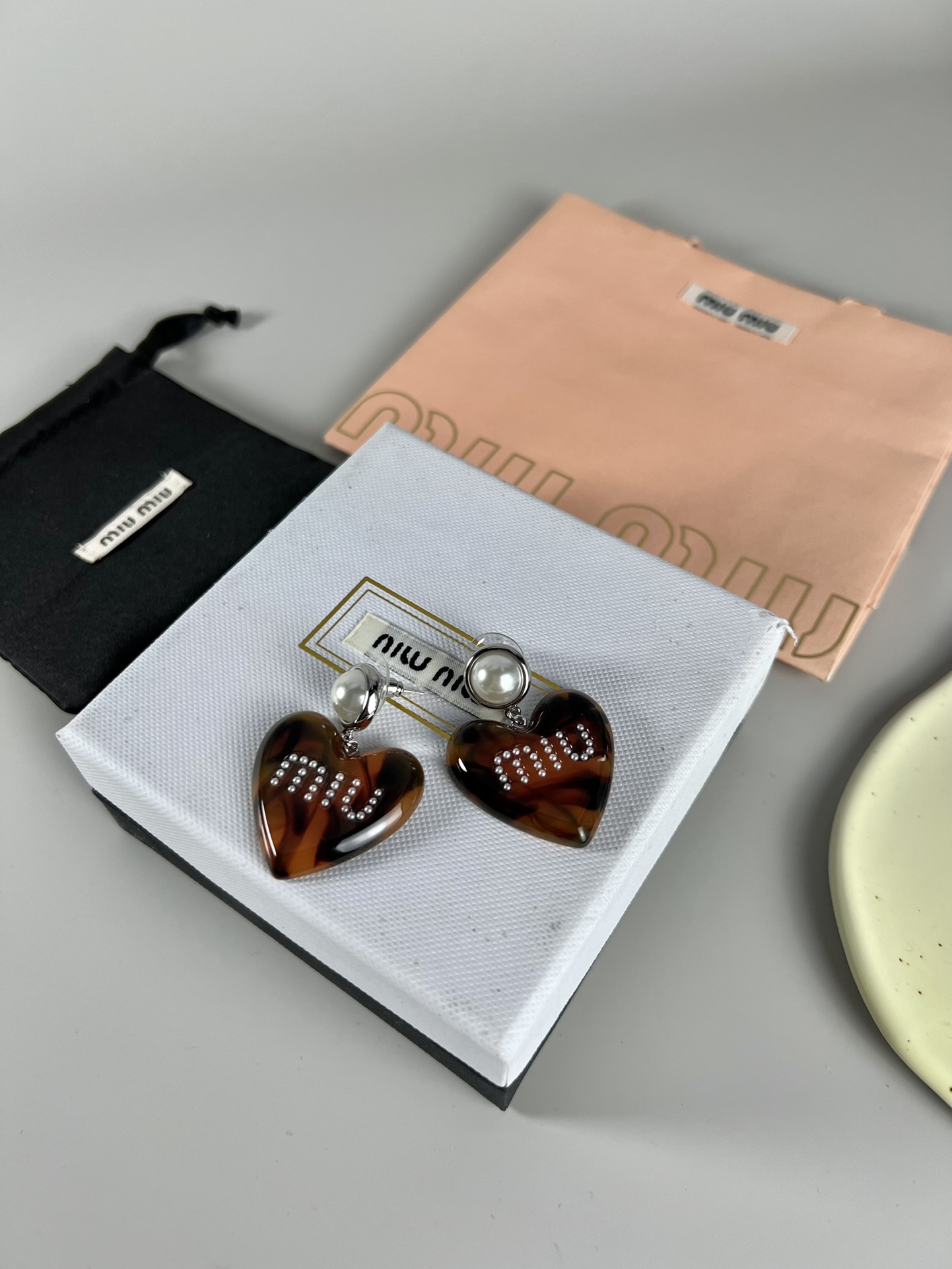 MiuMiu 亞克力 愛心耳釘,愛心上面鑲嵌小珍珠,非常的俏皮可愛