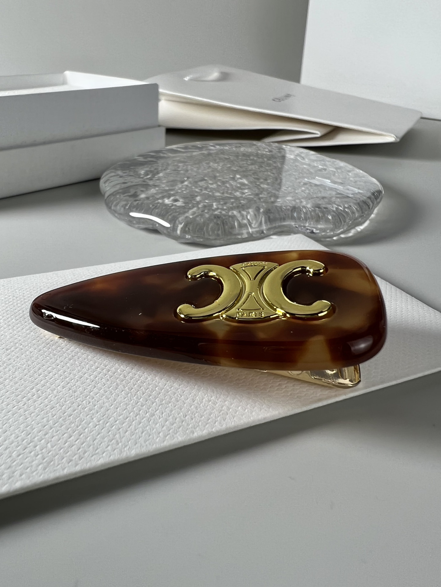 celine髮夾,賽林家經典logo琥珀色髮夾,溫婉大氣款,隨意一夾,慵懶又可愛