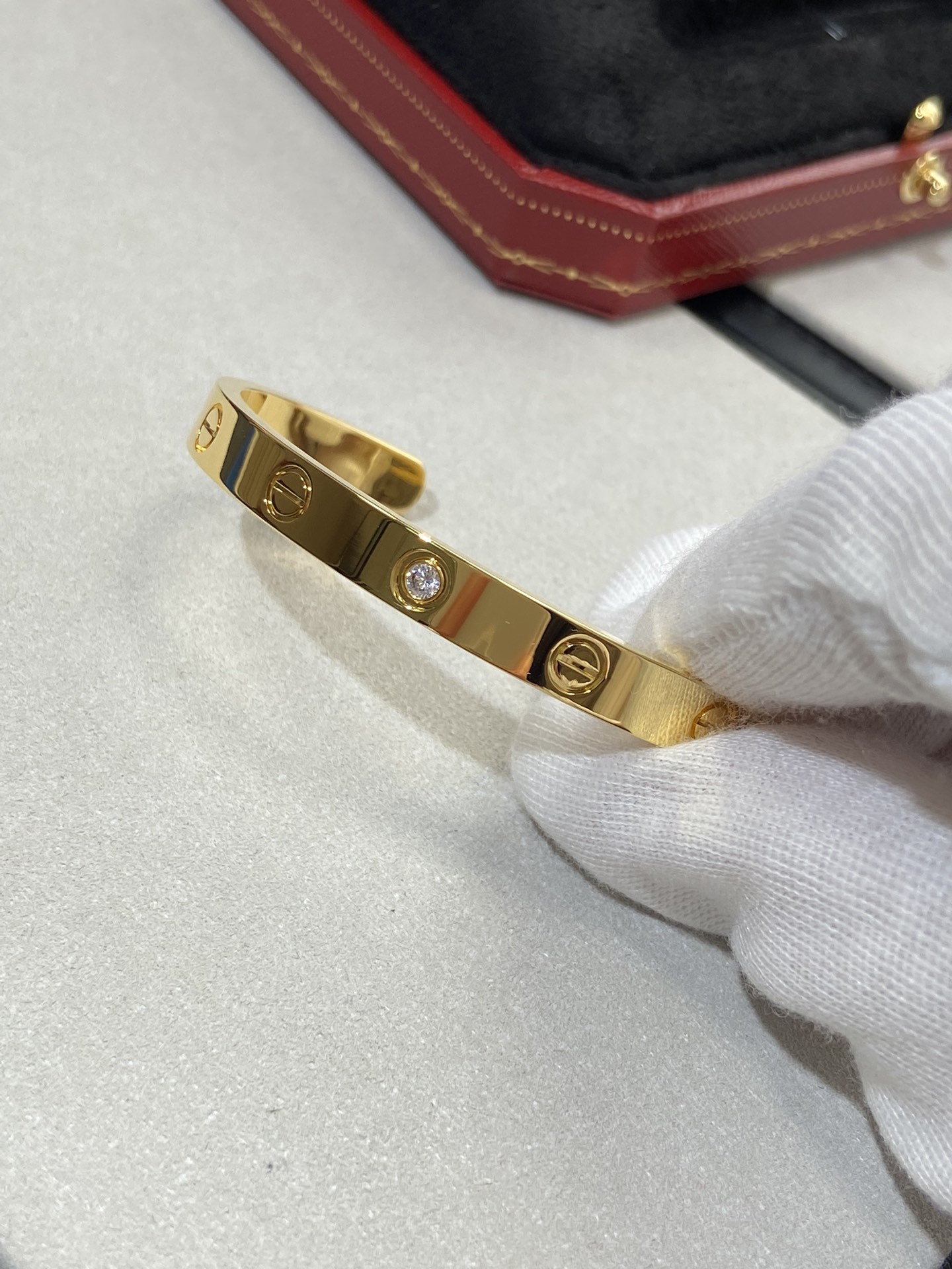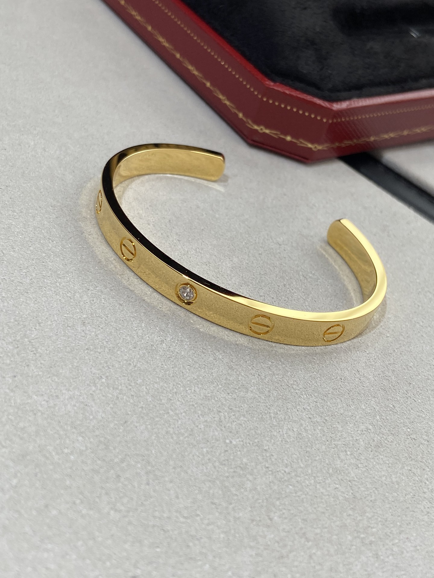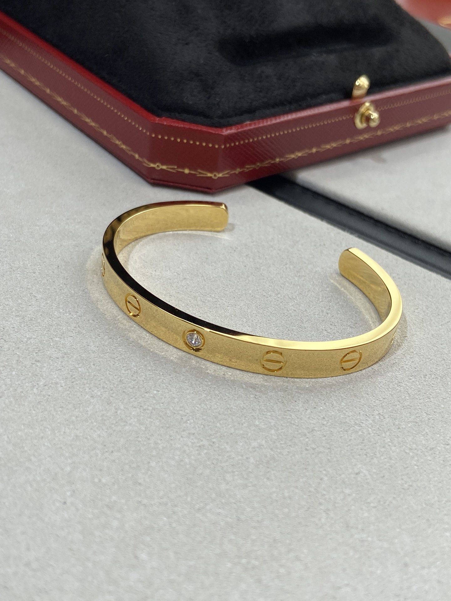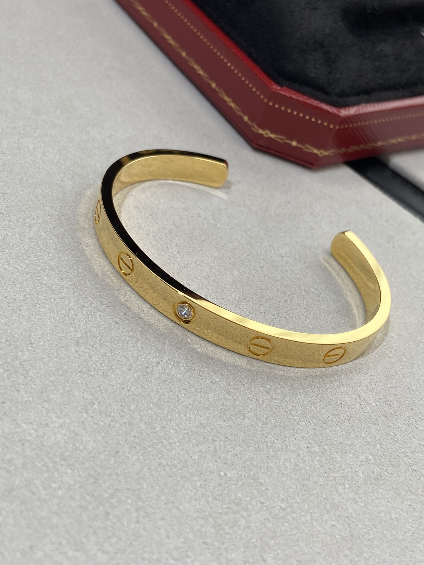黃金單鑽款寬版,一樣電鍍了18k金厚金,這個白金的產品色澤也是需要注意,否則好像戴了一塊不銹鋼,一不小心就low了。我們的手鐲五軸精雕,立體度堪比真金,質感都是反復對比過,大家放心入。