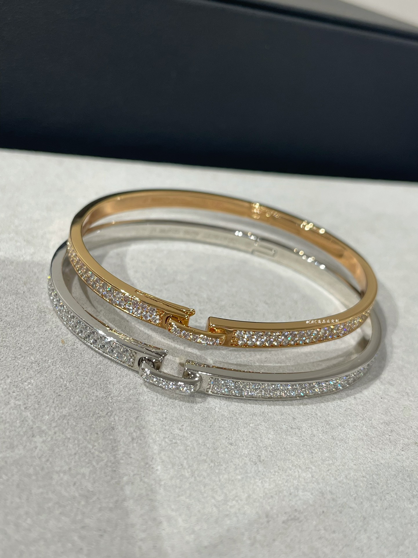 尚*巴黎liens誓·緣系列手鐲,超級熱銷款圖拍滿鑽款兩色,整個手鐲都是CNC精雕出貨,這款疊戴單戴都很好看,看實拍裏裏外外拋光電鍍都很到位,鑽位均為手鑲,我們的電鍍色跟原版一致,每個細節都經得起推敲