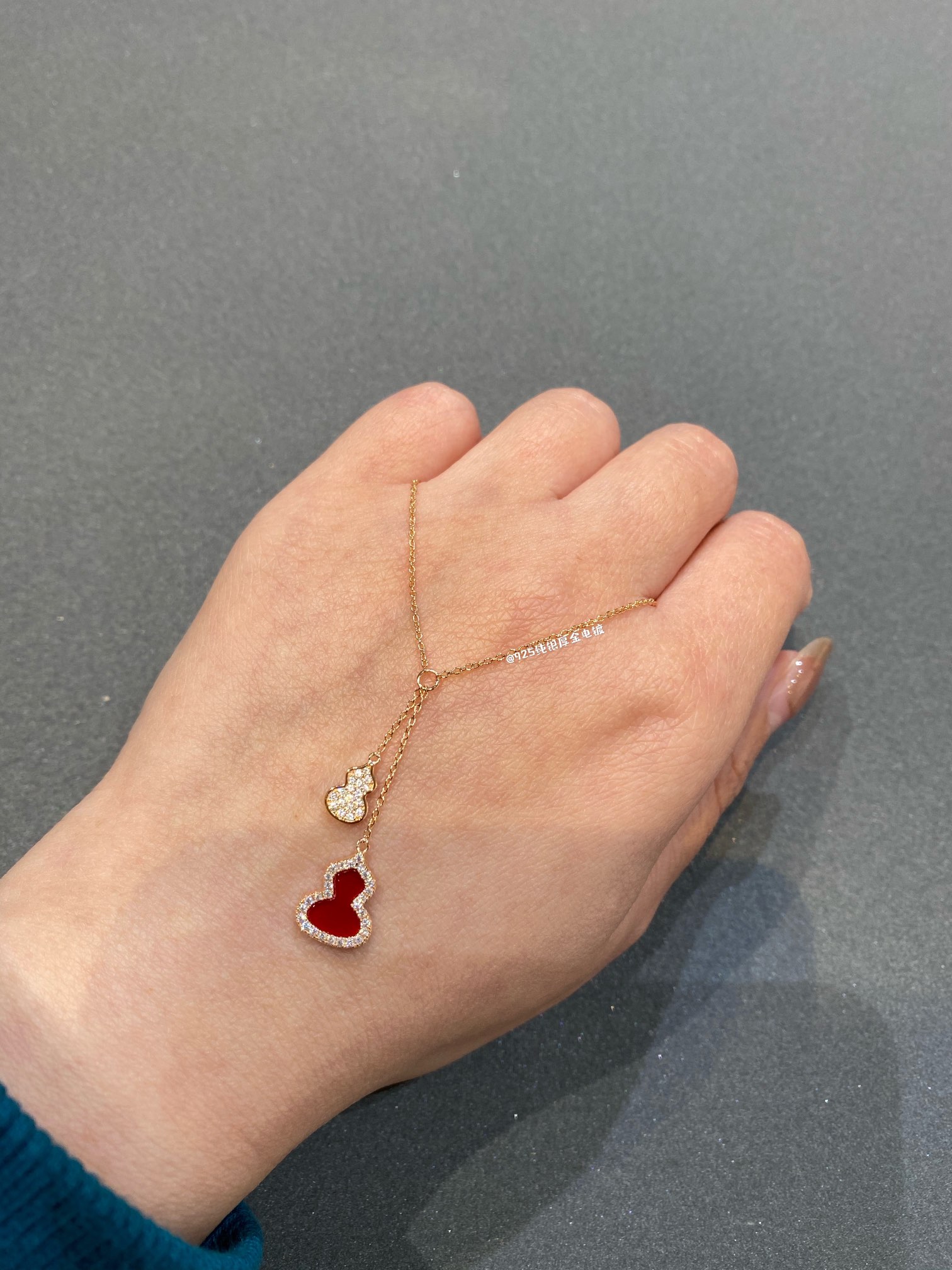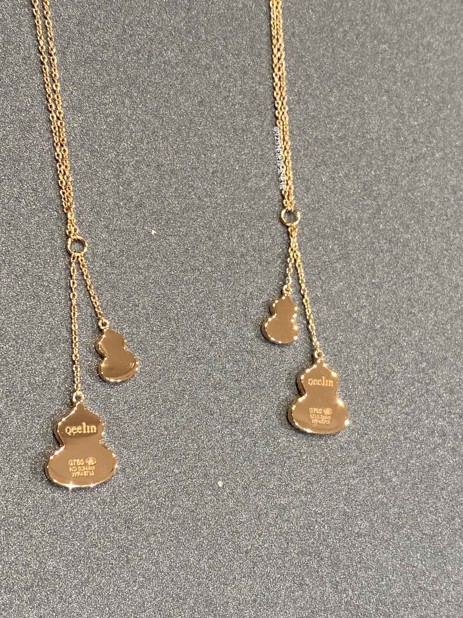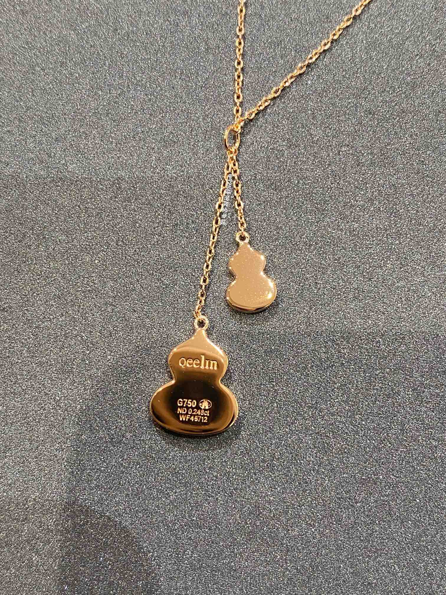 新款雙葫蘆項鏈,轉運珠寶,葫蘆在中國傳統文化中象徵正能量,吸財納福哦!佩戴葫蘆寓意給自己和家人帶來好運~玉髓和鑽石的結合,閃耀精緻!採用珠寶級別玉髓,一對一配拖車石,肉眼無縫,手鑲不掉石~鋼印字印齊