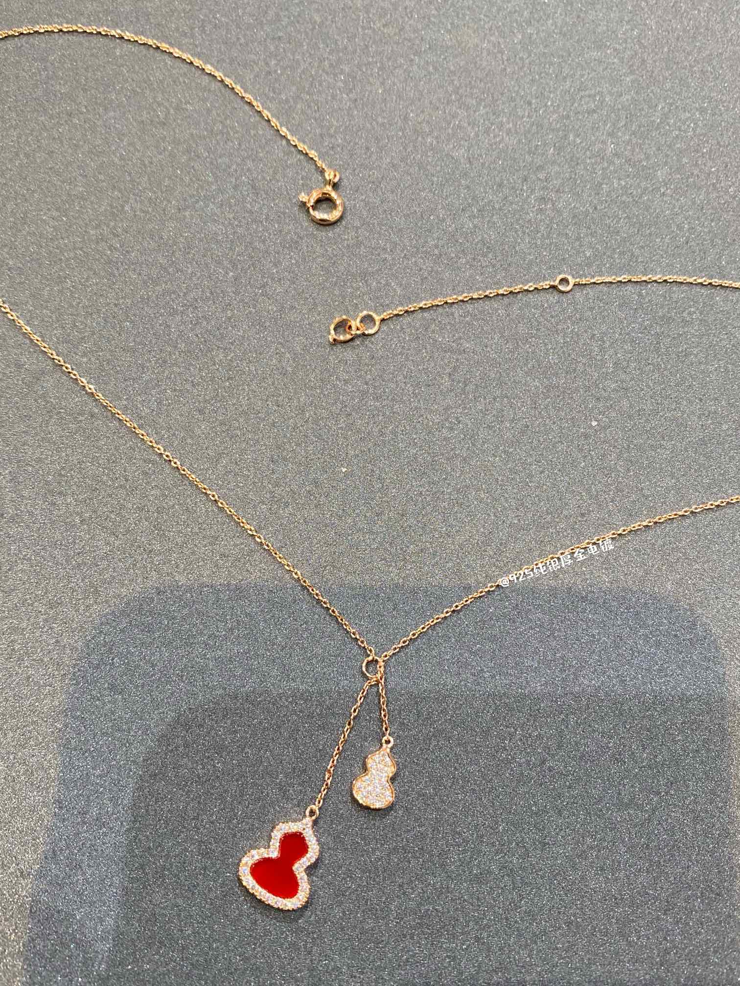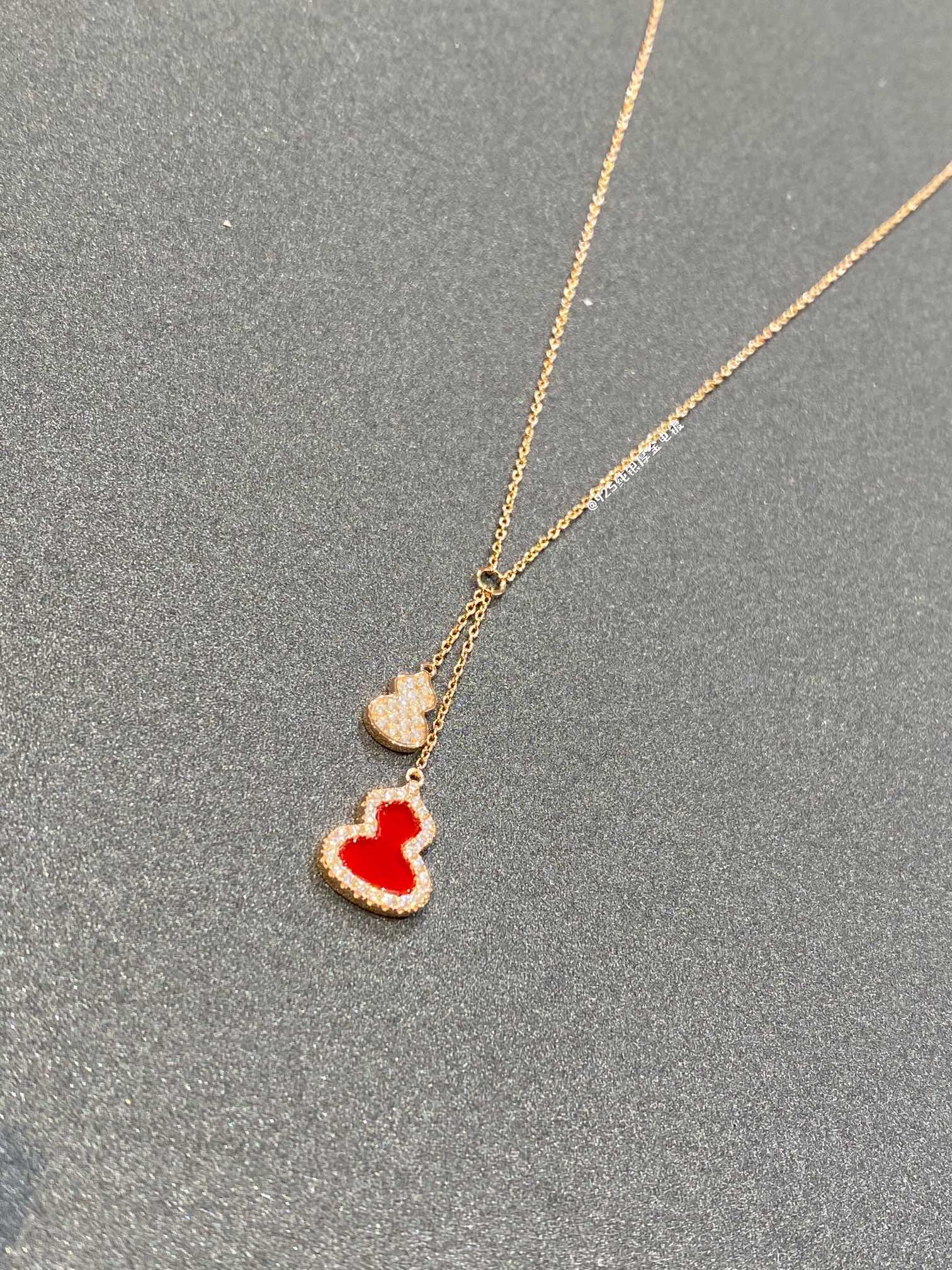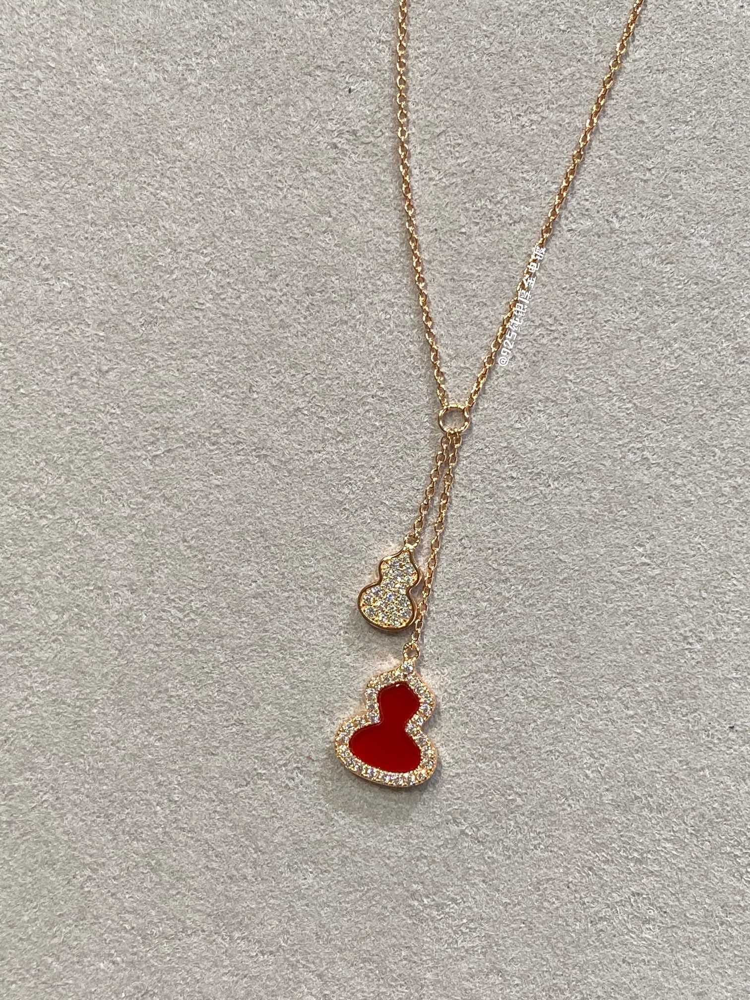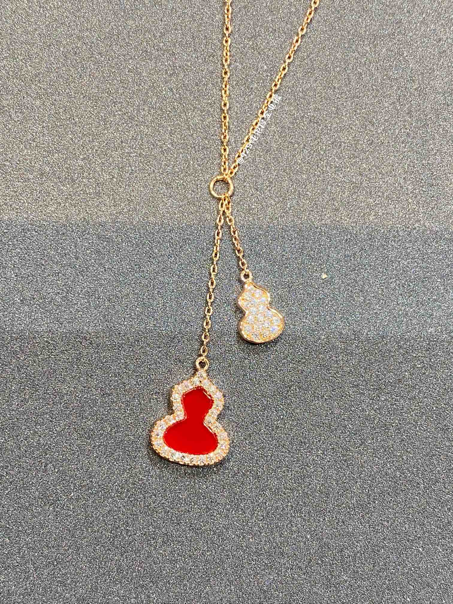 新款雙葫蘆項鏈,轉運珠寶,葫蘆在中國傳統文化中象徵正能量,吸財納福哦!佩戴葫蘆寓意給自己和家人帶來好運~玉髓和鑽石的結合,閃耀精緻!採用珠寶級別玉髓,一對一配拖車石,肉眼無縫,手鑲不掉石~鋼印字印齊
