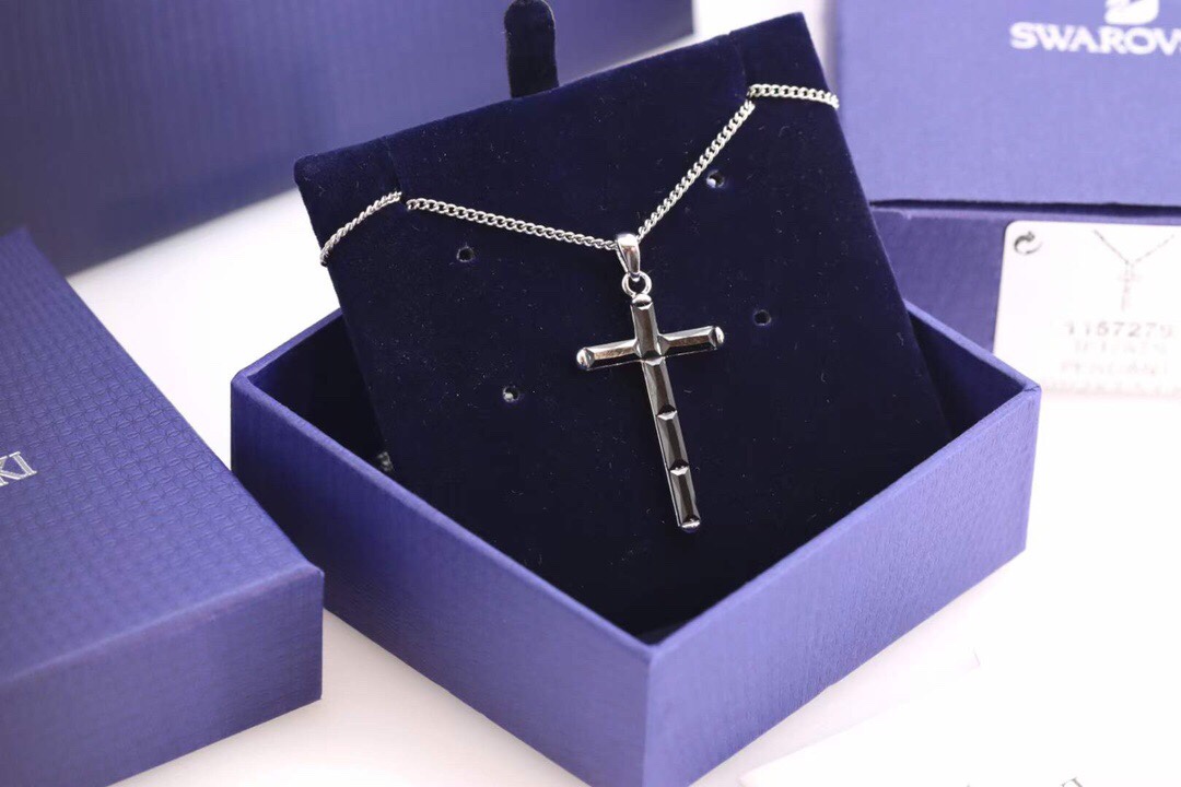 swarovski 男士黑色十字架 鎖骨項鏈
