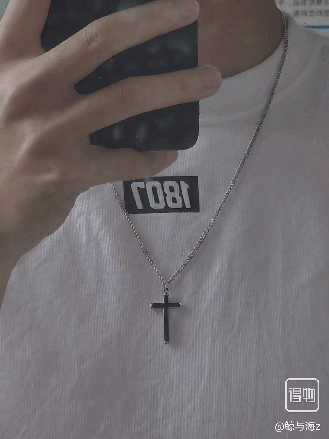swarovski 男士黑色十字架 鎖骨項鏈 這款十字架造型、搭配灰色的長方形切割仿水晶,可為裝扮增添清爽點綴。可作為情侶款、兄弟款、 長度50cm。