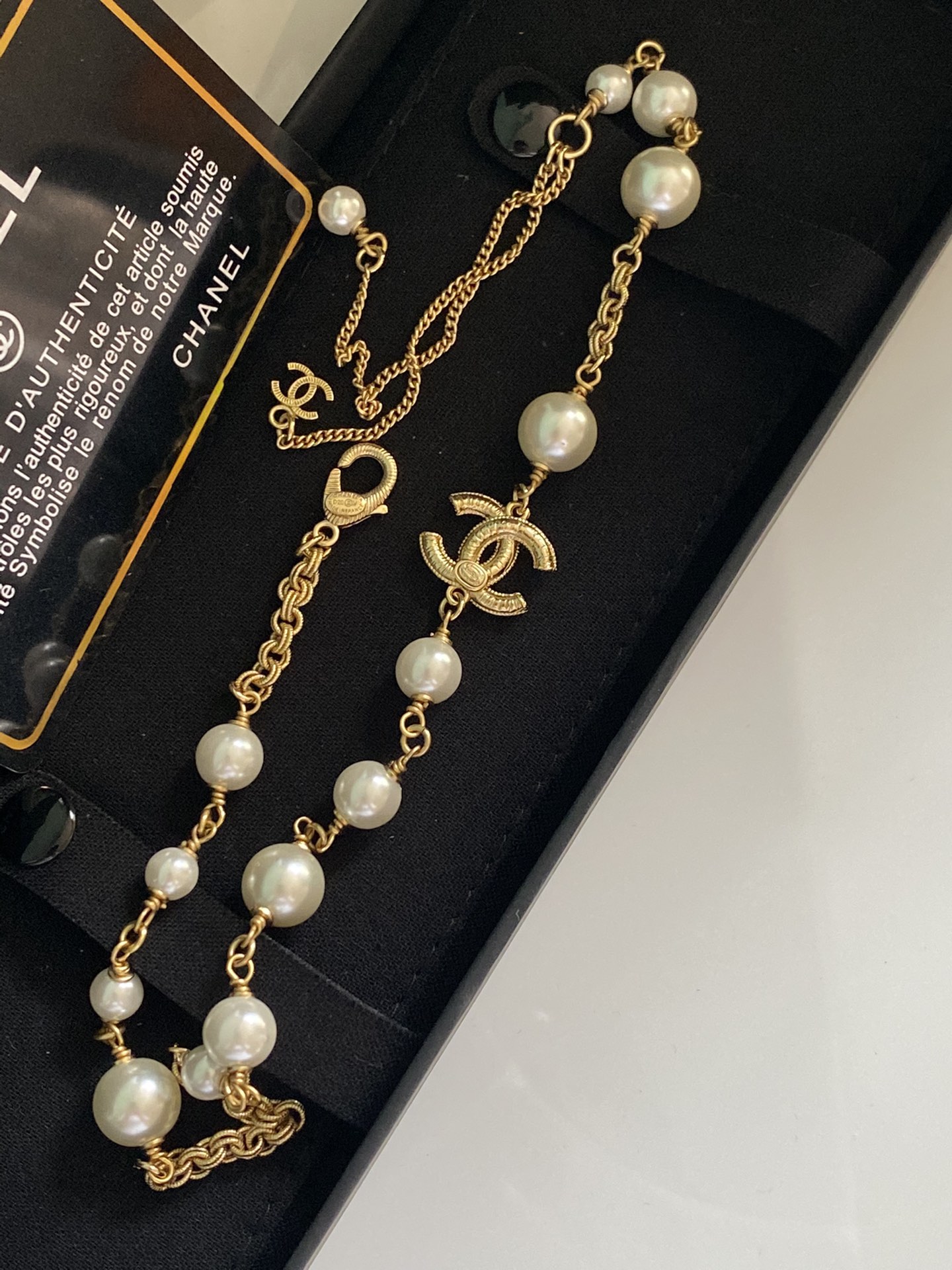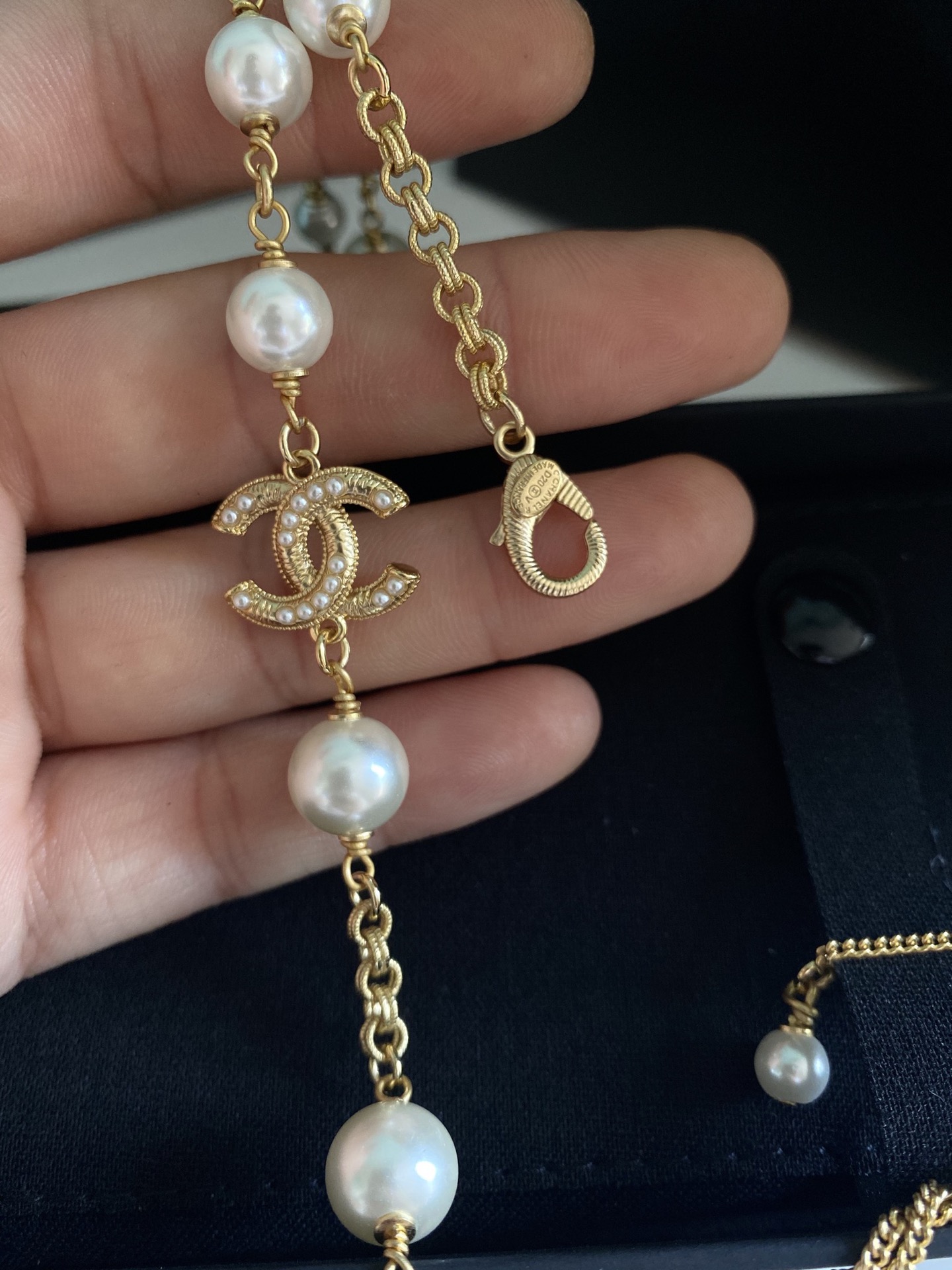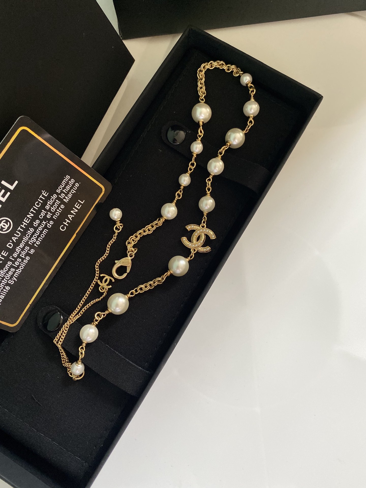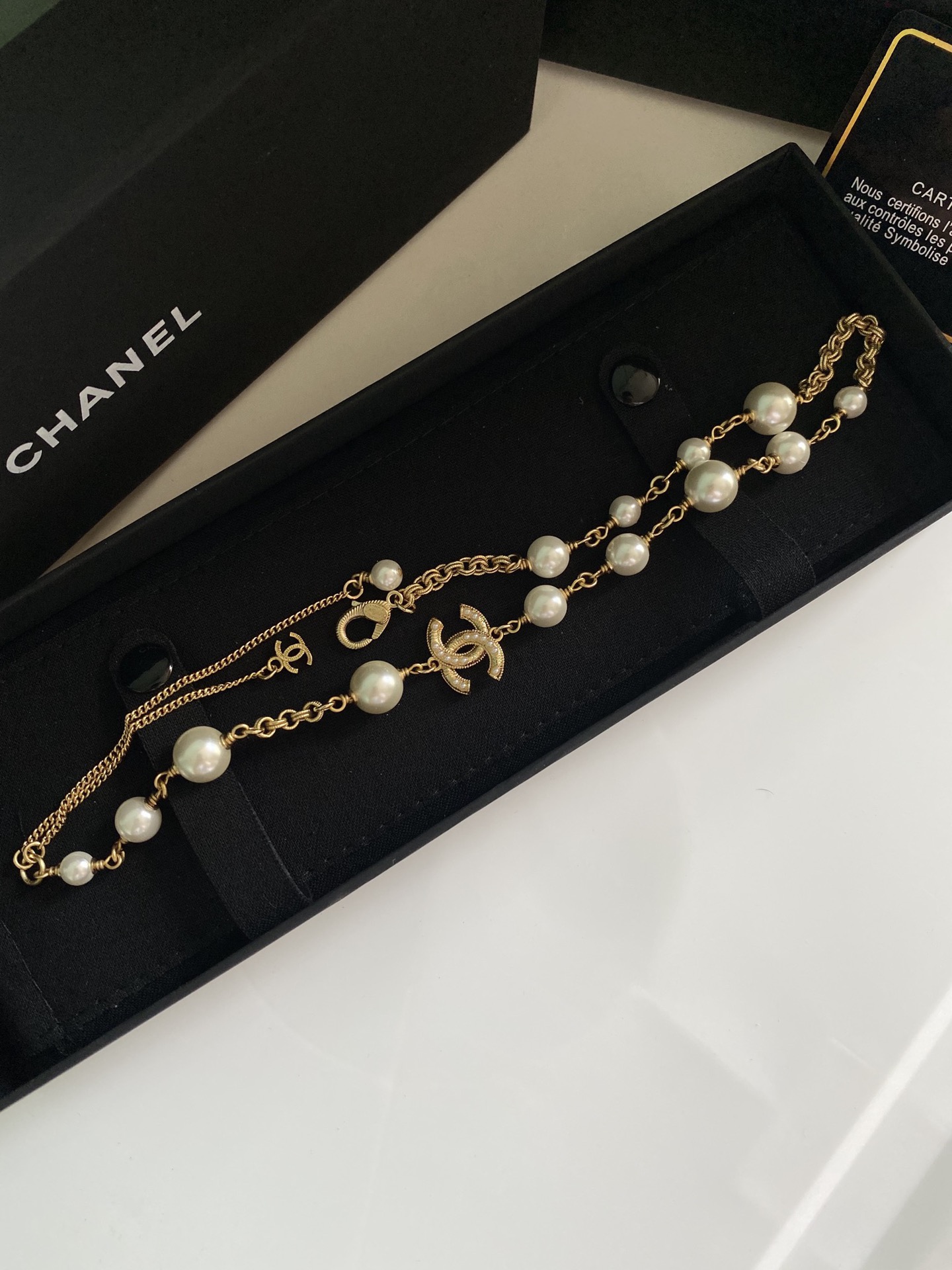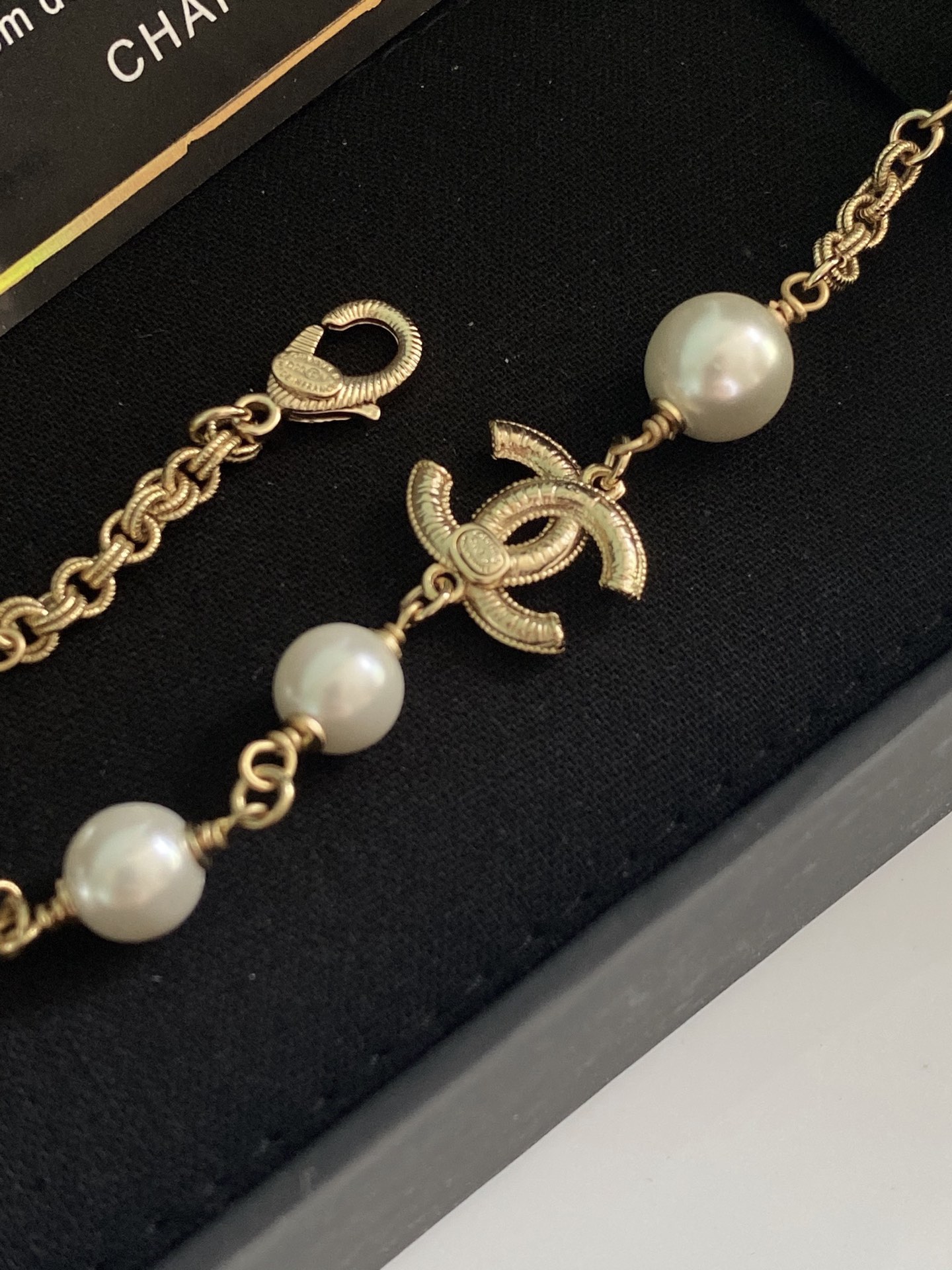 實物細節如圖 Ch*nel 手鏈項鏈2用款 雙C+珍珠 超級複雜精緻 zp品質 超級百搭時尚 媲美zp 天氣越來越熱 鎖骨胳膊露出來 這款真的超級美 做項鏈名媛淑女範 做手鏈雙層時尚