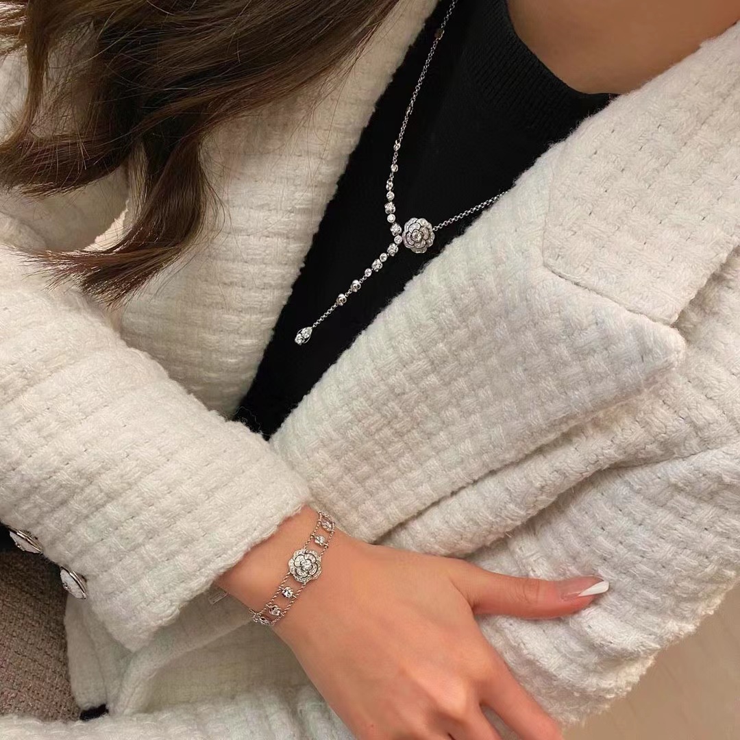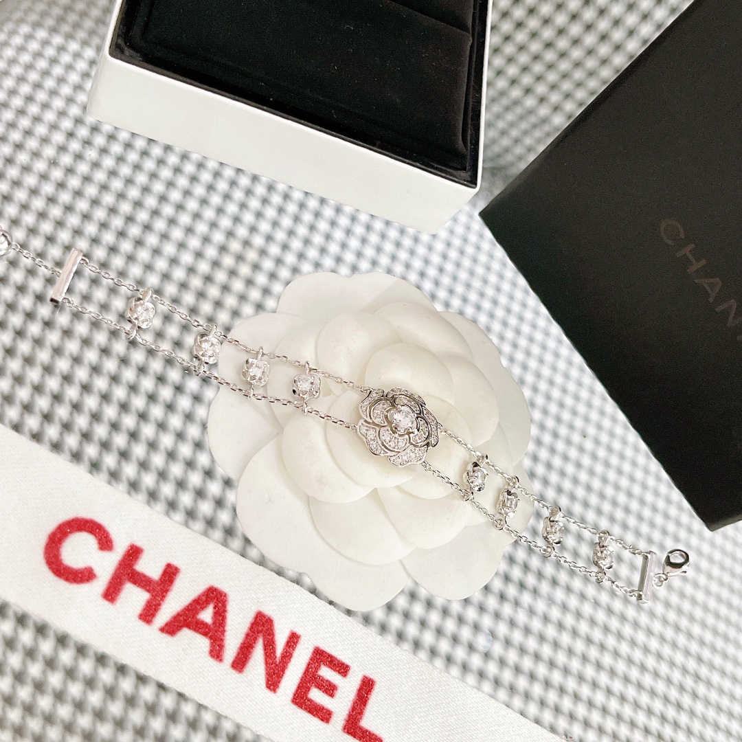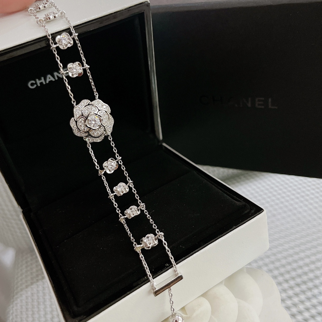B578 小香家今年的爆款【CAMéLIA 手鏈】山茶花不只是一朵花,它更是靈感之源。極富曲線美感的山茶花,呈現百變風格。手工鑲嵌鑽石,非常奢華的一款項鏈,採用進口 V金材質電鍍厚金,保色程度更久。手鏈