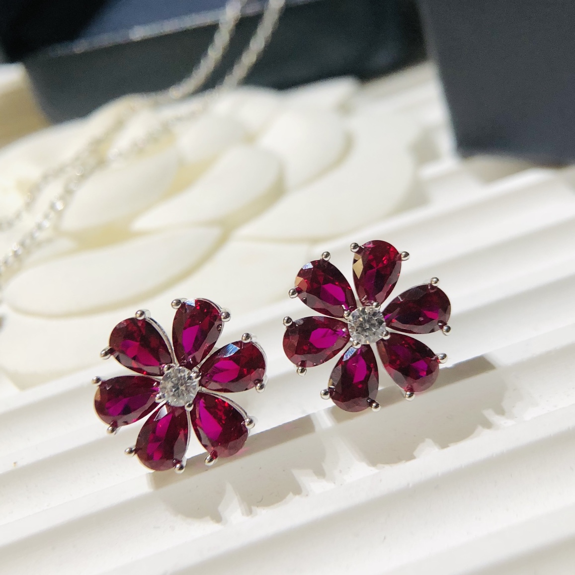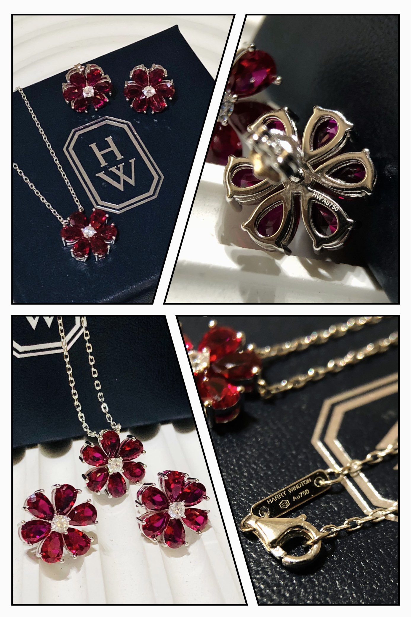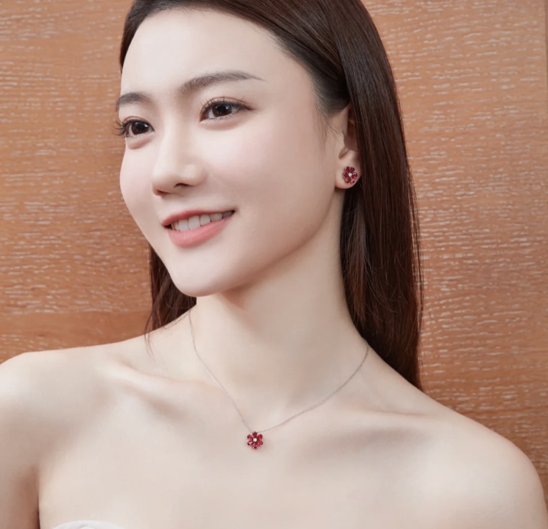 C397 Hw 海瑞溫斯頓 23C新款 紅寶石 花朵項鏈 耳釘 套裝 精選德國進口s925純銀材質電鍍厚金 不褪色不過敏 精工打造原版一比一定制 超精工 blingbling 項鏈 耳釘