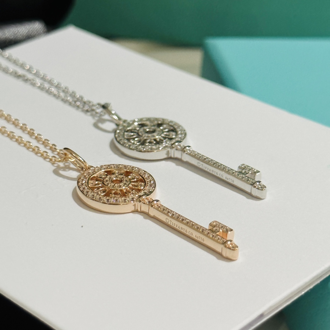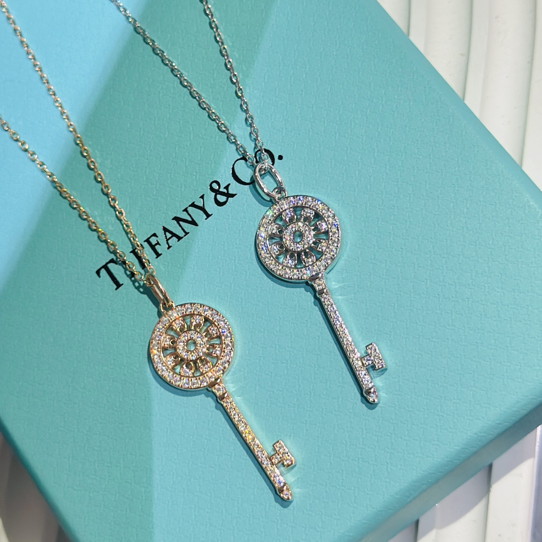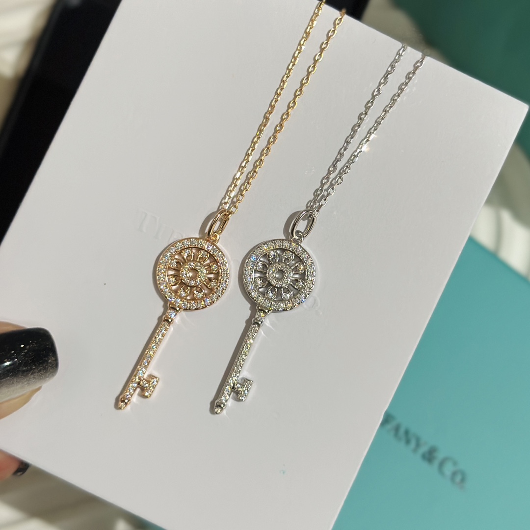 C406 開啟幸福之門的 tiff 蒂芙尼 鑰匙經典 太陽花 小號 鑰匙項鏈 高端 925純銀鍍金版,精工版! 重工鑰匙,細節到位。ZP一致方形孔位,最大限度釋放鑽的火彩,正面花型位置配非平面哦,ZP一致下陷設計,立體感十足。細節看品質!送人,自留絕對滿分45cm 鎖骨鏈 純銀項鏈