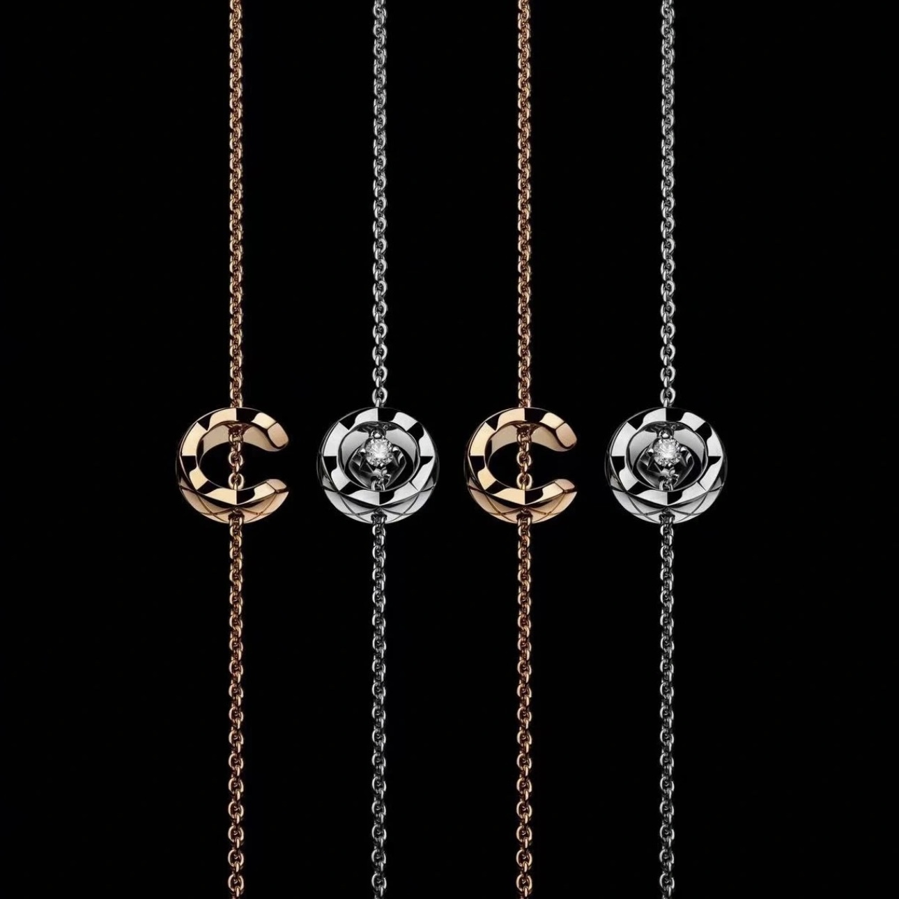 A0046 小香家 Coco Crush新款 菱格 圓圈 光面 手鏈 延續了第一代Coco Crush的設計感。通體採用925銀電鍍1.0咪金 白金 玫瑰金兩色齊 單鑽跟半兩款 純銀手鏈