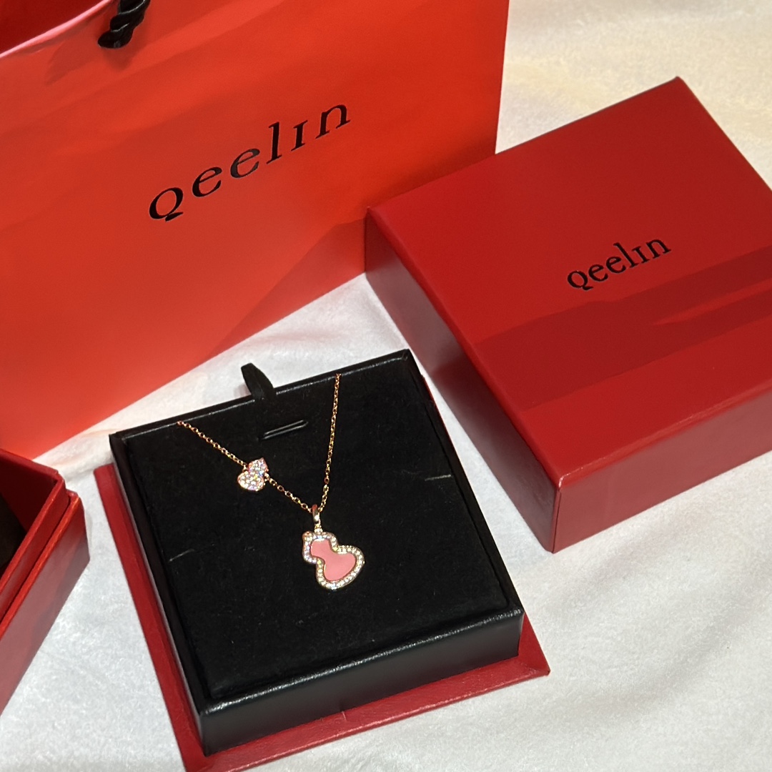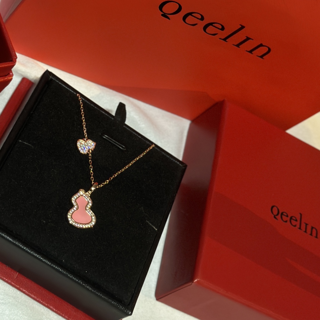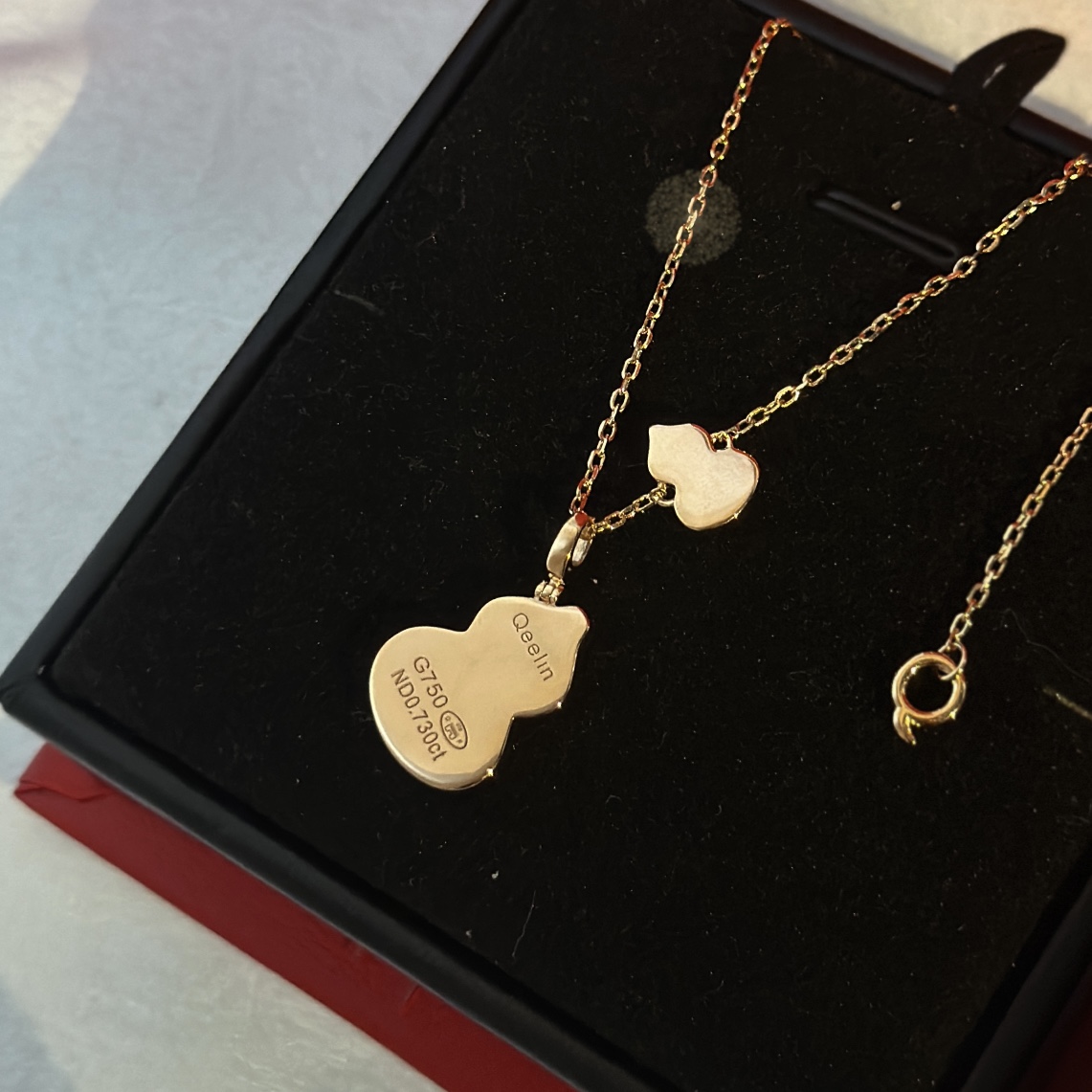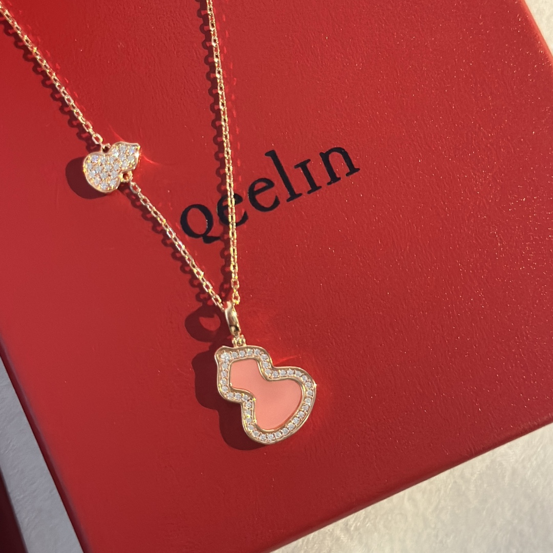C099 qeelin麒麟 高端珠寶 蛋白粉陶瓷 大小葫蘆 項鏈 【代購級別】 女神同款 葫蘆寓意有福祿[]非常吸睛的小耳釘,精緻的點綴 高端定制925銀鍍厚金, 質感一級棒 封底版本 玫瑰金 純銀項鏈
