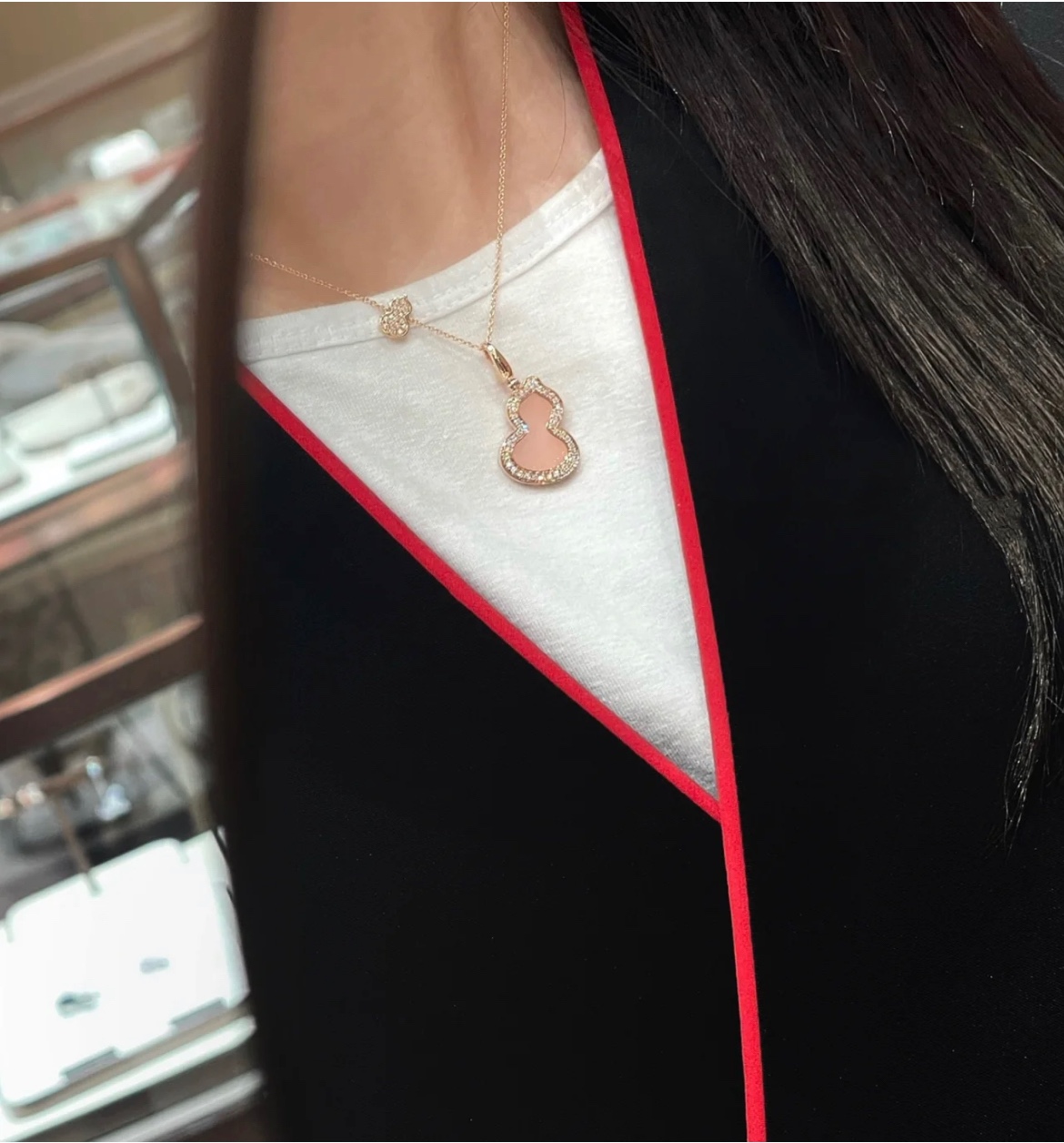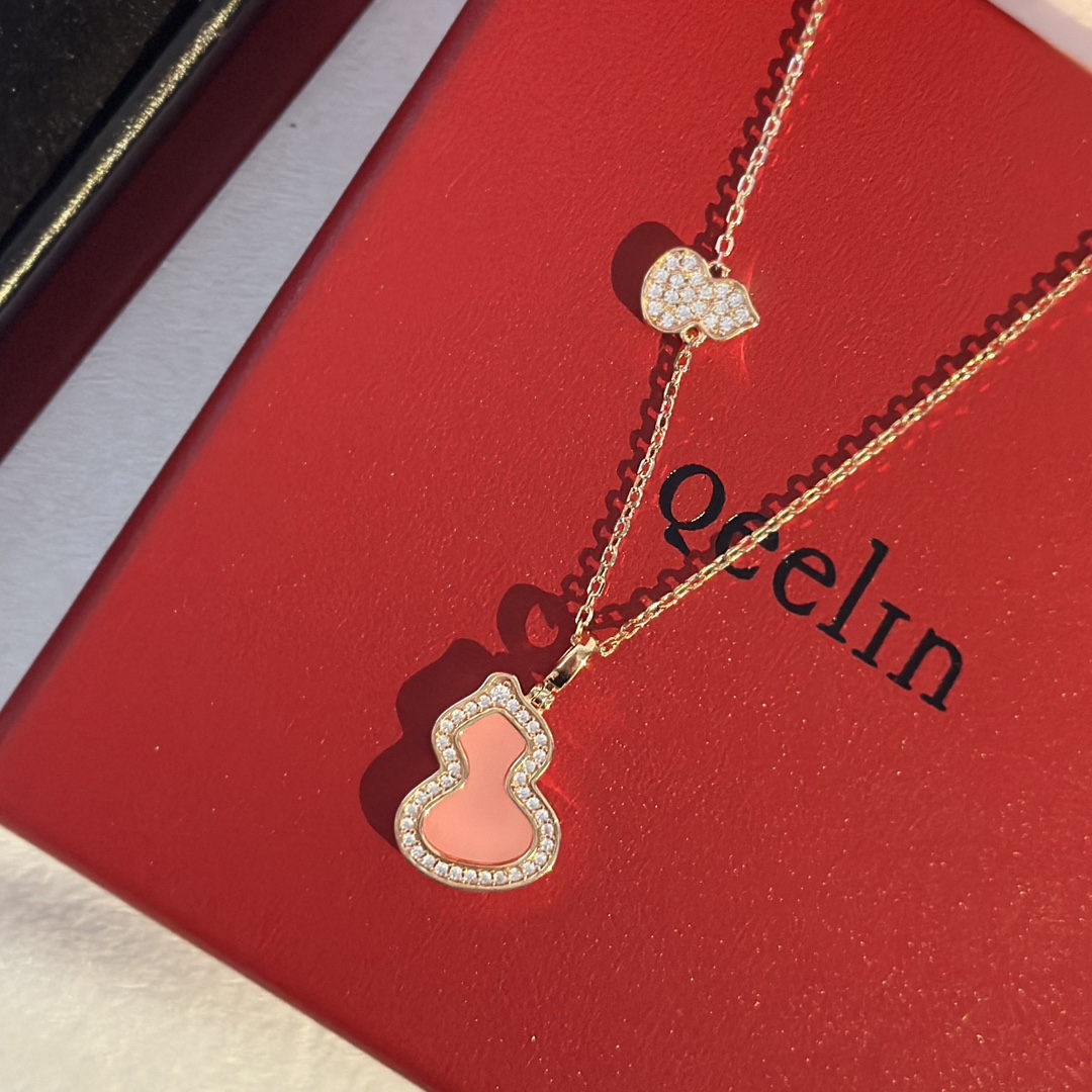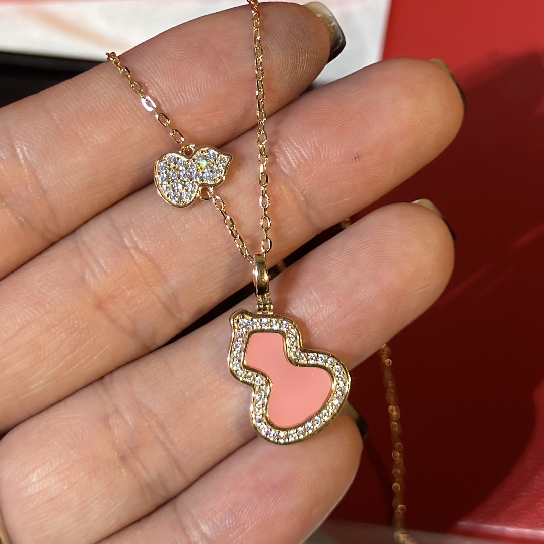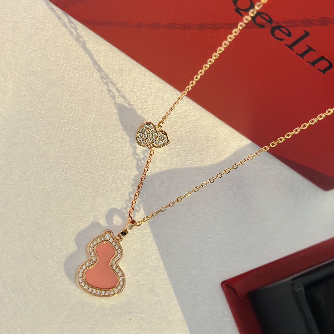 C099 qeelin麒麟 高端珠寶 蛋白粉陶瓷 大小葫蘆 項鏈 【代購級別】 女神同款 葫蘆寓意有福祿[]非常吸睛的小耳釘,精緻的點綴 高端定制925銀鍍厚金, 質感一級棒 封底版本 玫瑰金 純銀項鏈